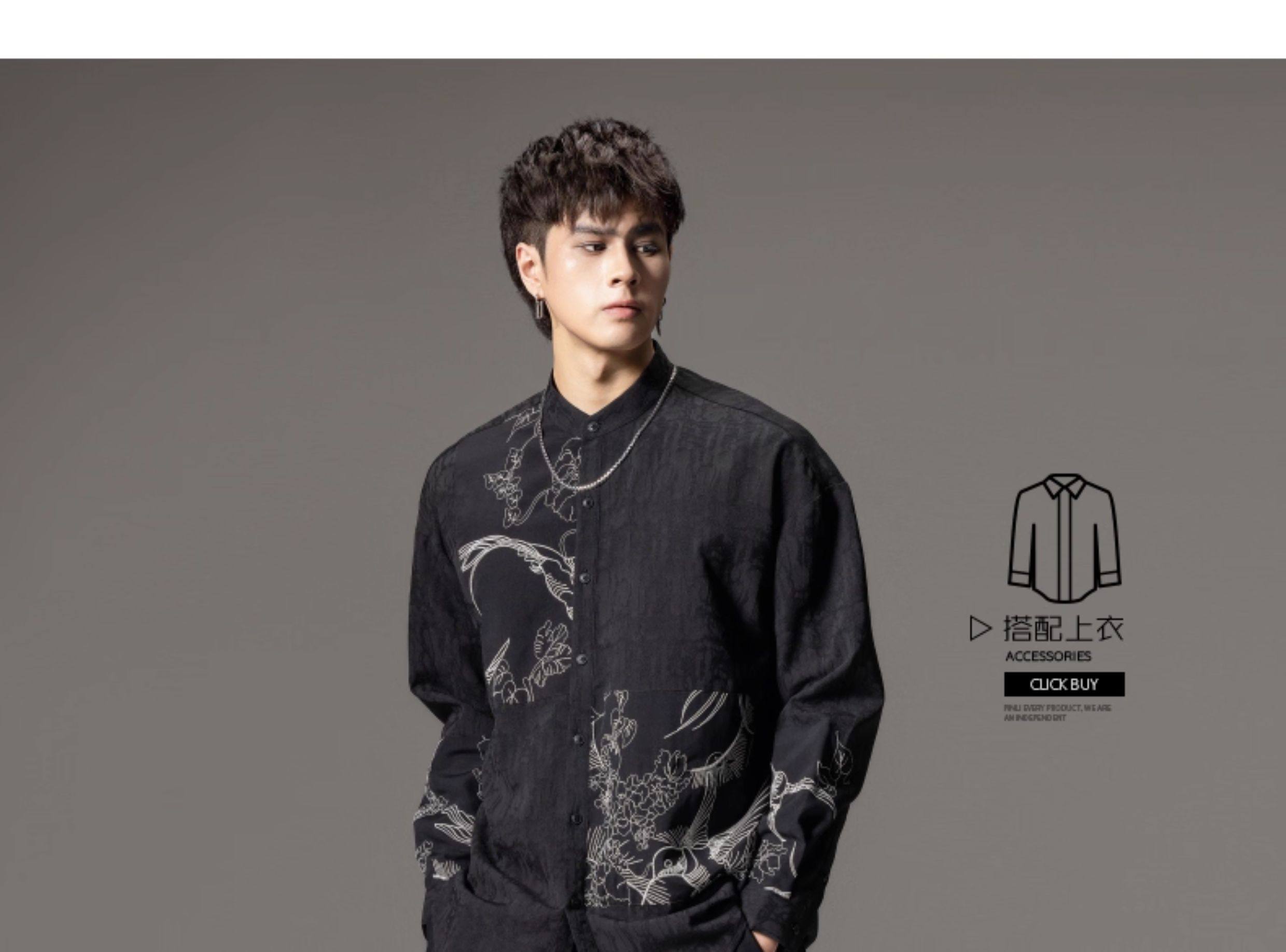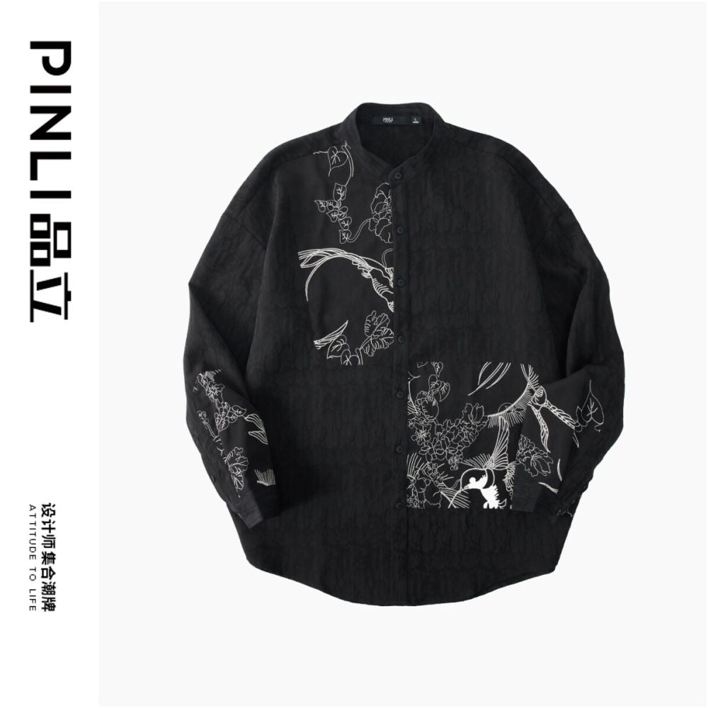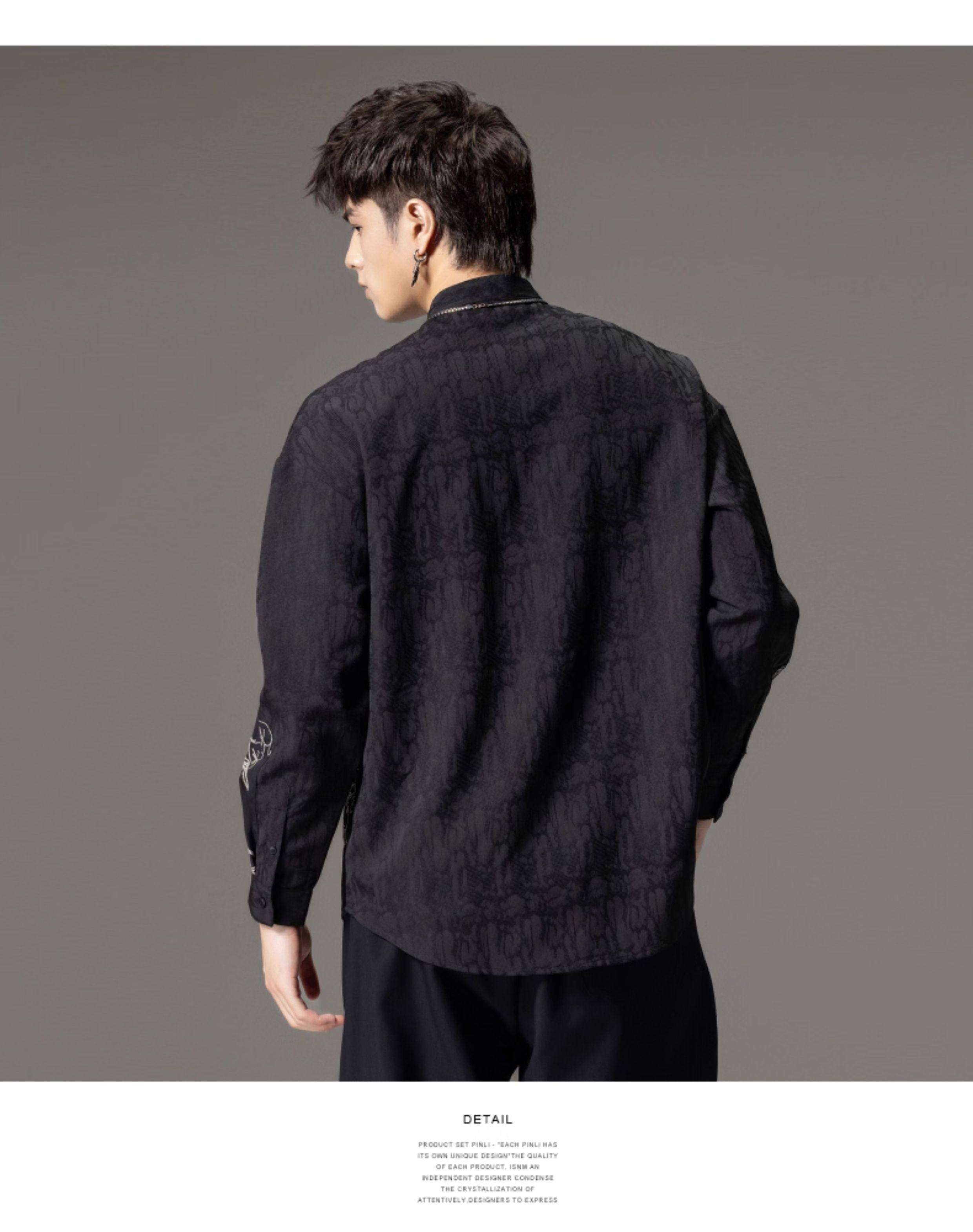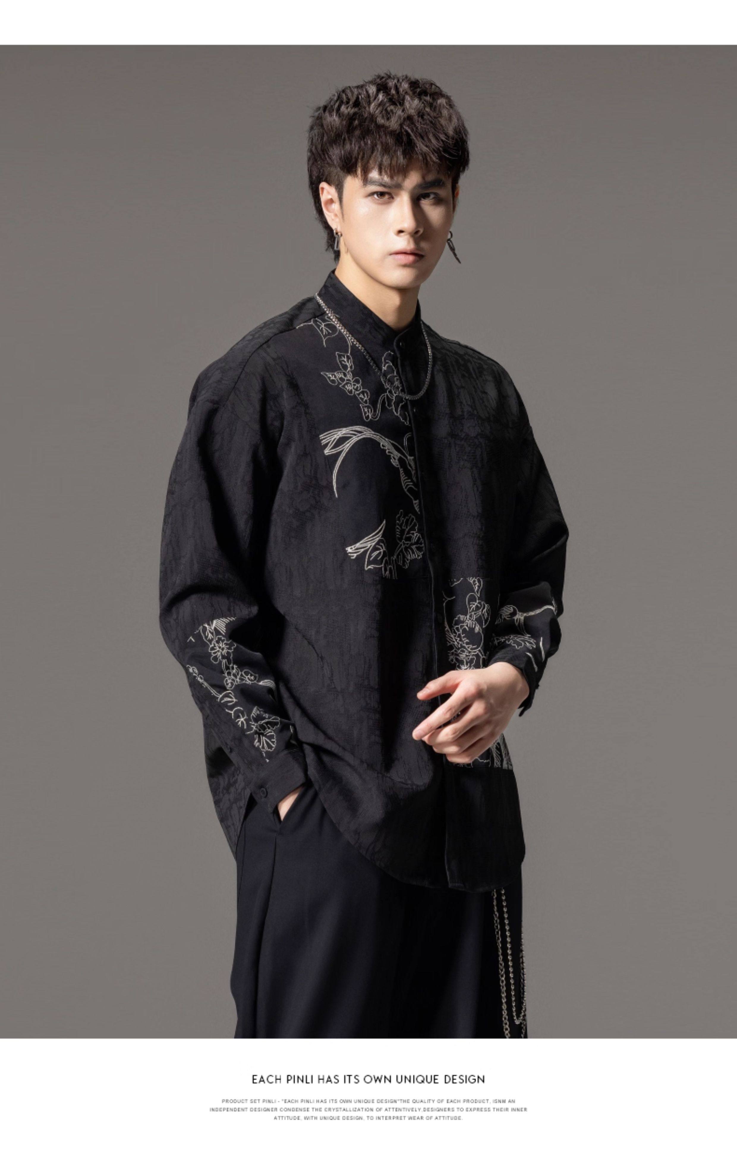 ASAYAHomme1520 – Midnight Crane Ink-Wash Shirt 🖋️🖤