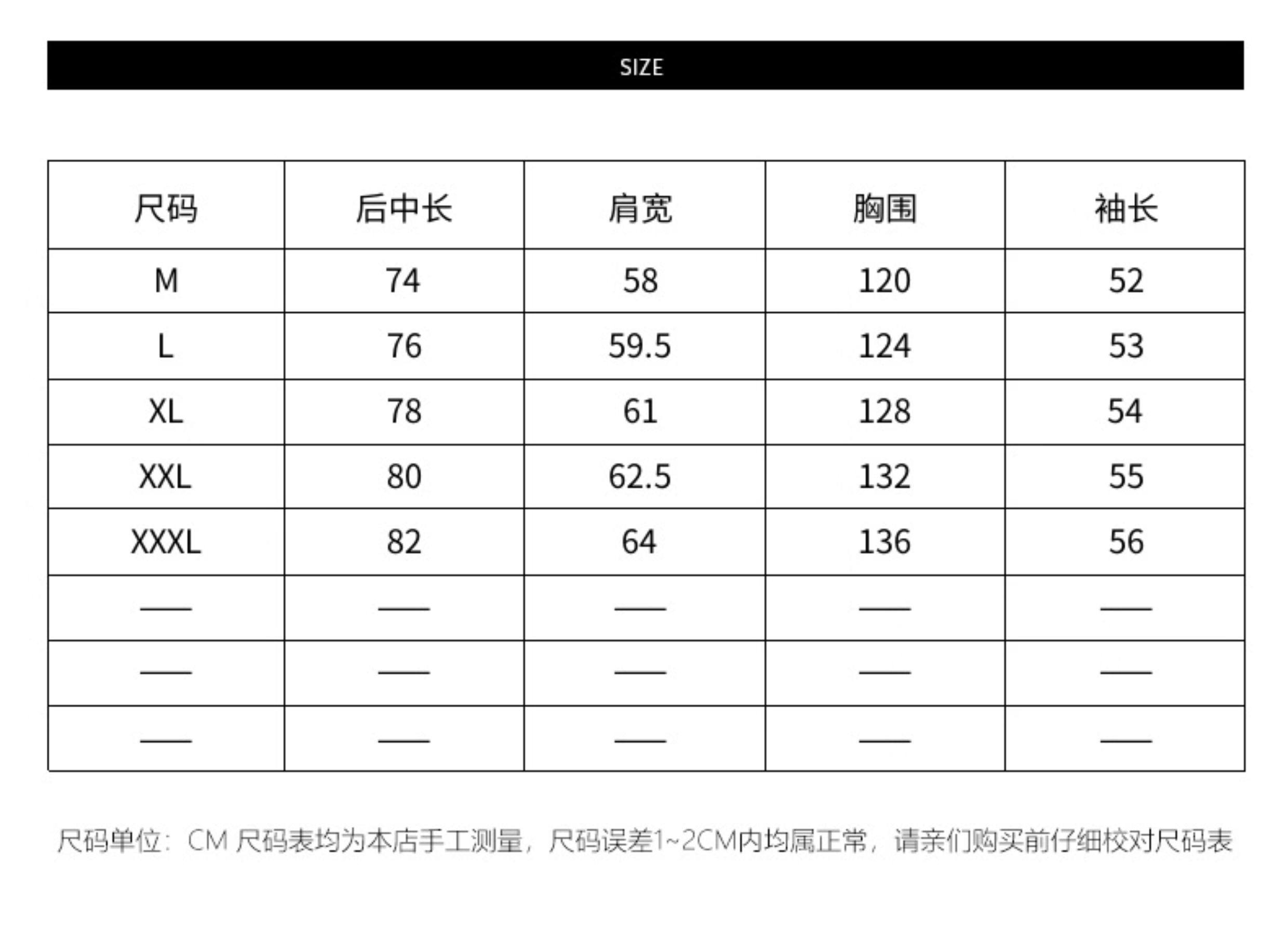 size M170,L175,XL180,XXL185,XXXL190
