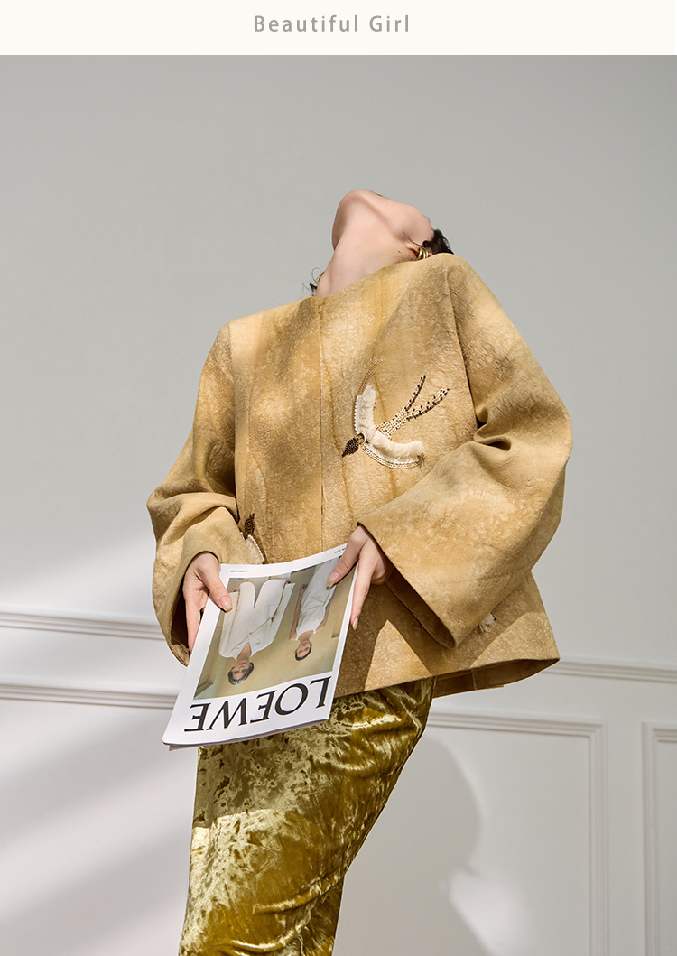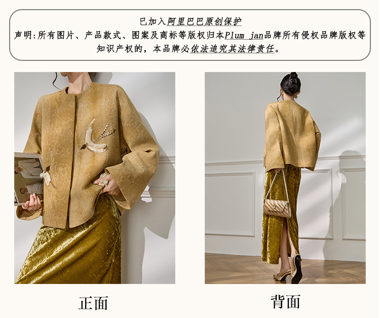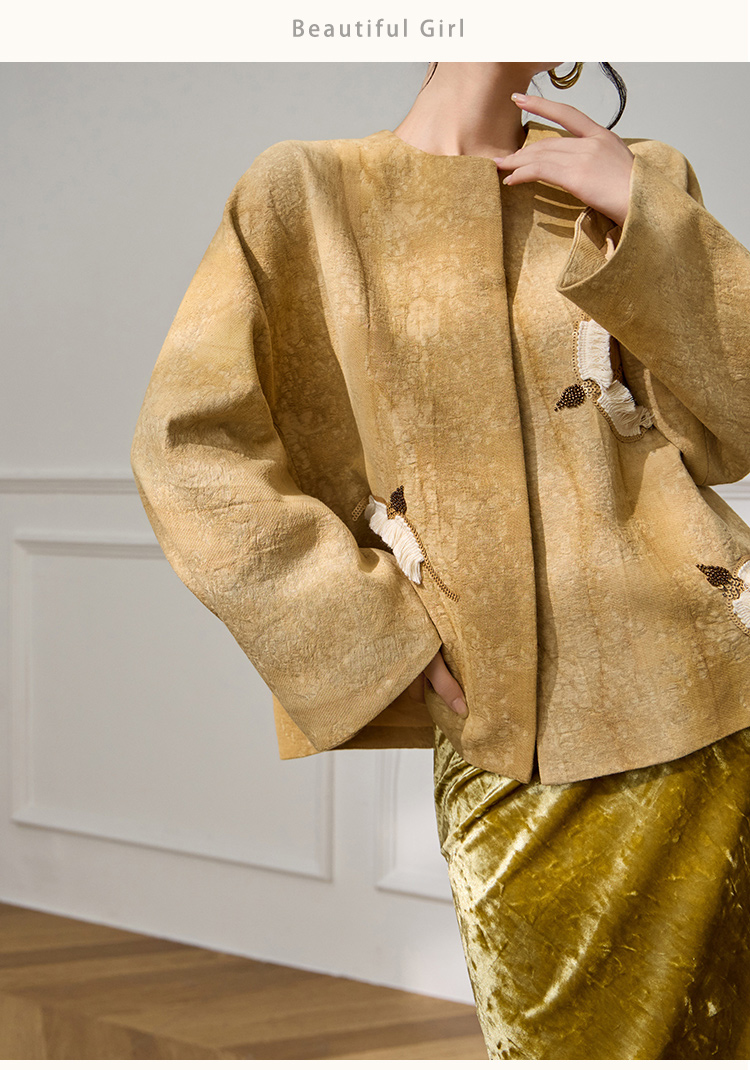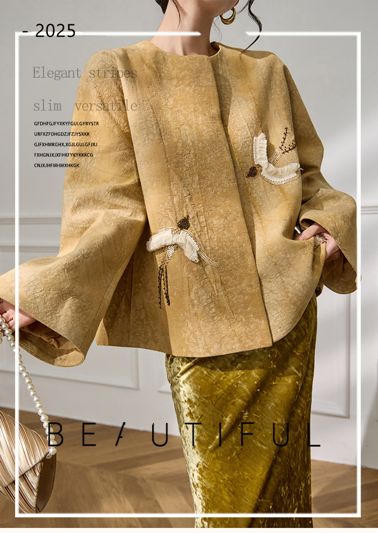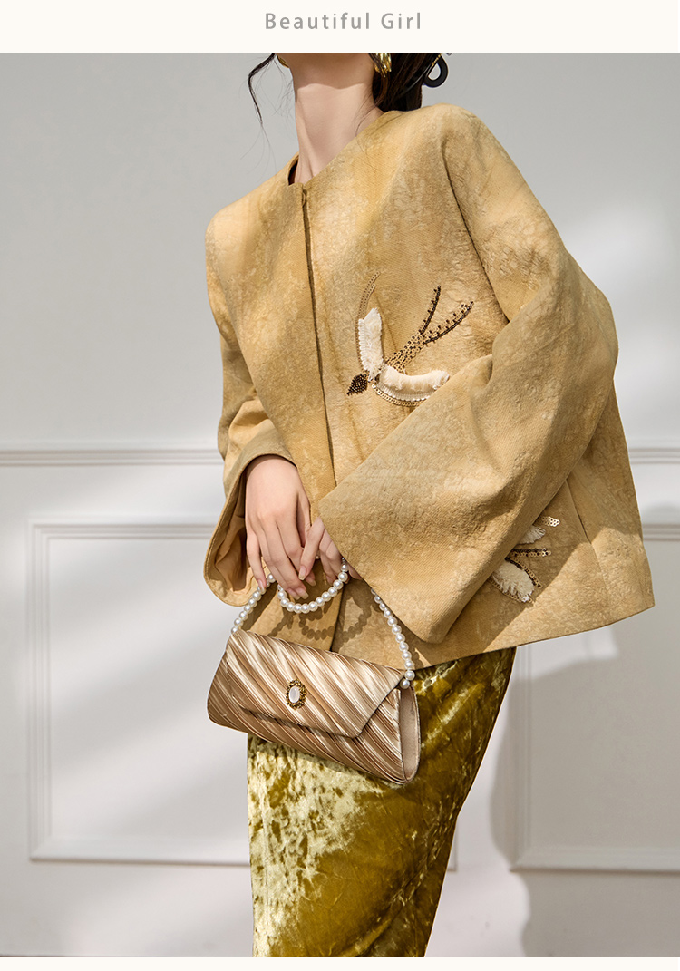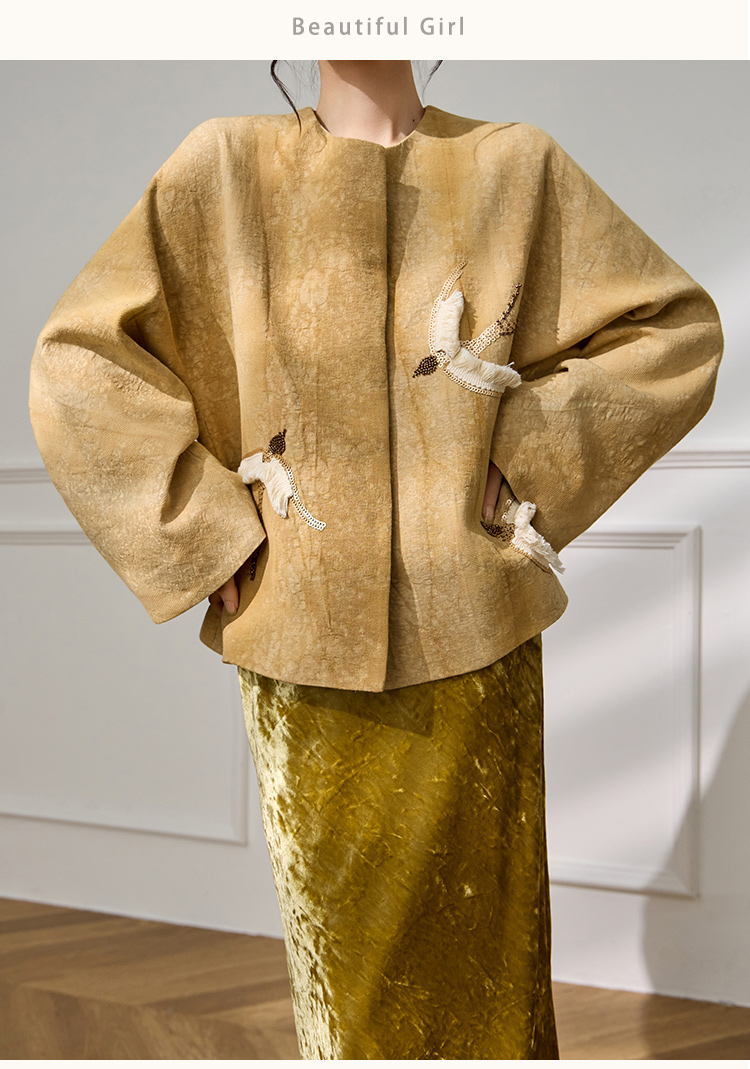 ASAYA4986 – Golden Crane Jacquard Jacket 🕊️✨