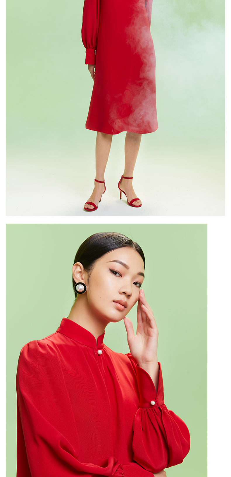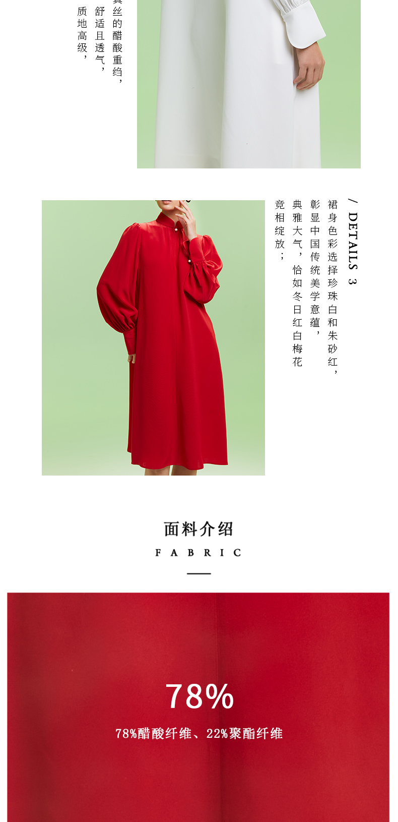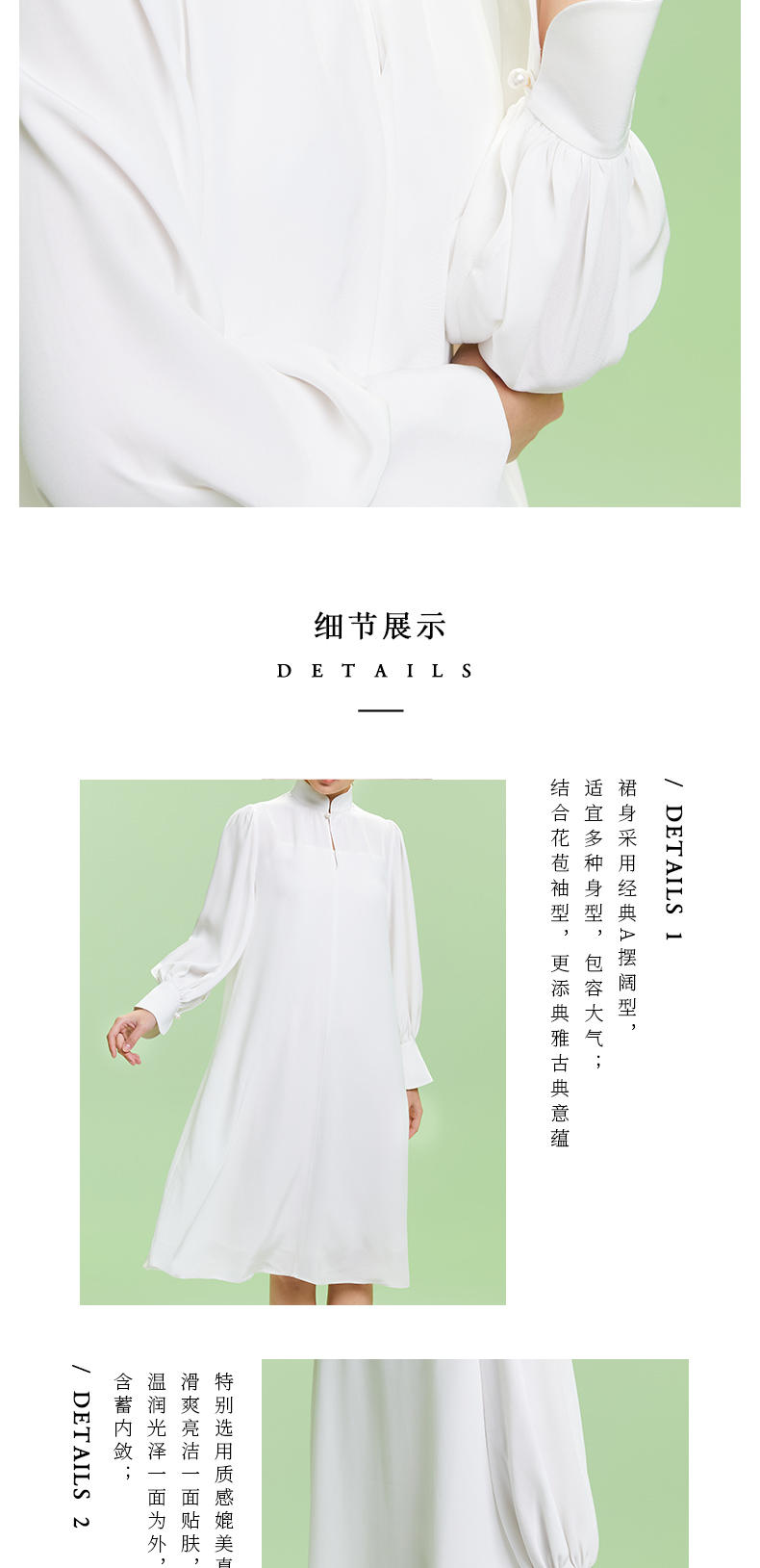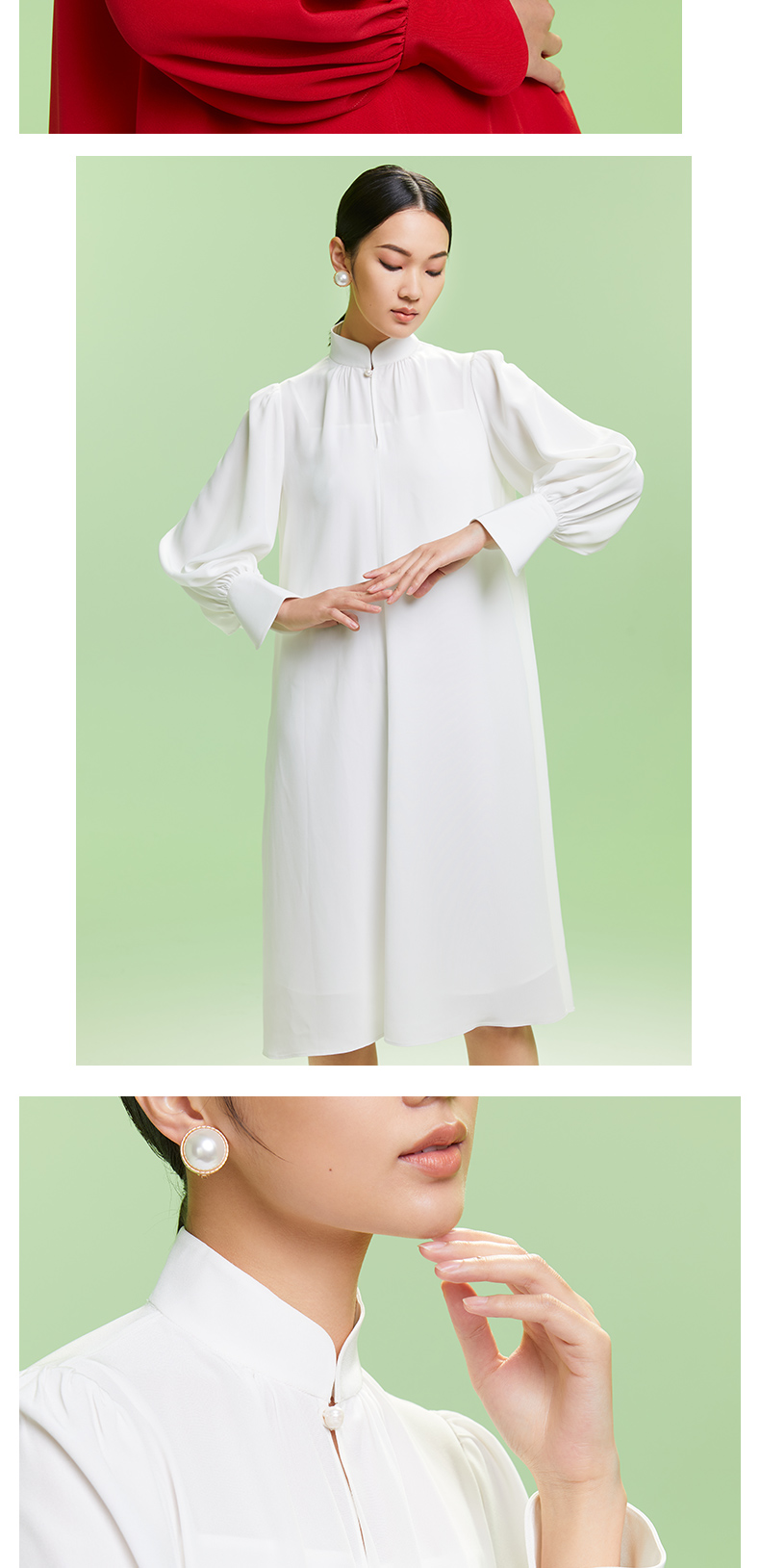 ASAYA1642 Poetry Rites Spring and Autumn New Chinese Style Cheongsam Collar Improved Flower Bud Sleeves Slimming and Heavy Weight Acetic Acid Style Dress Medium length Skirt for Women