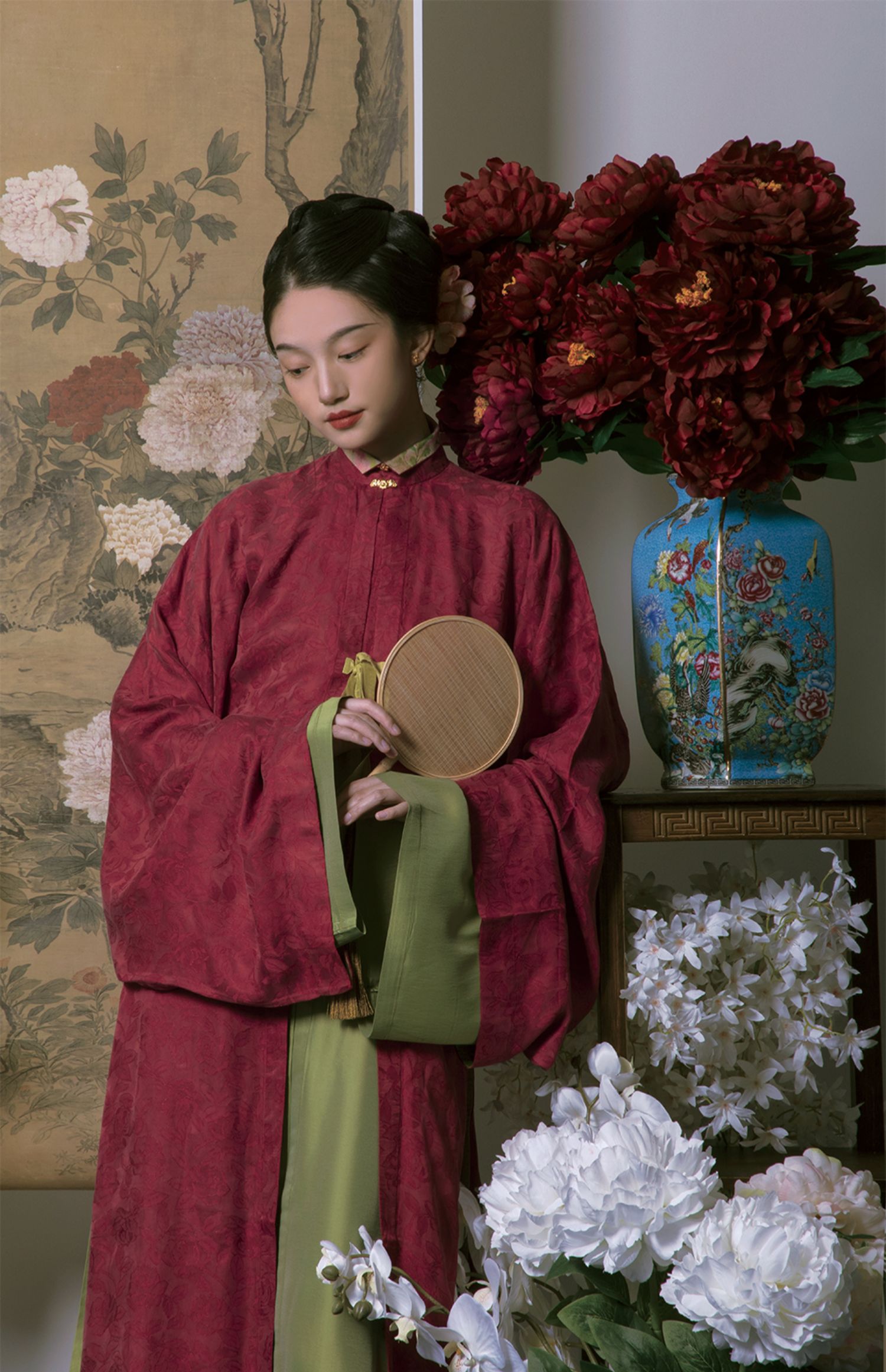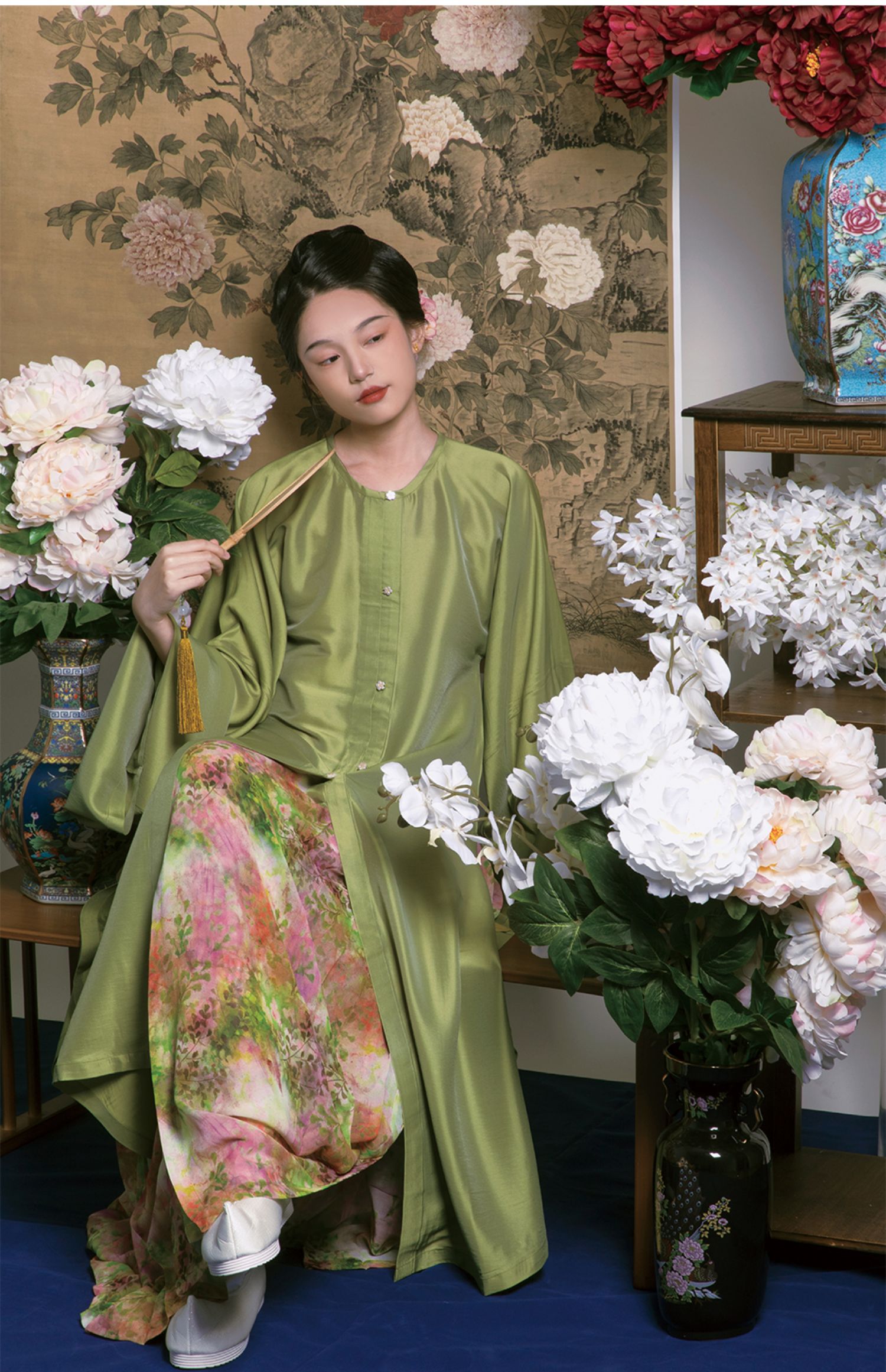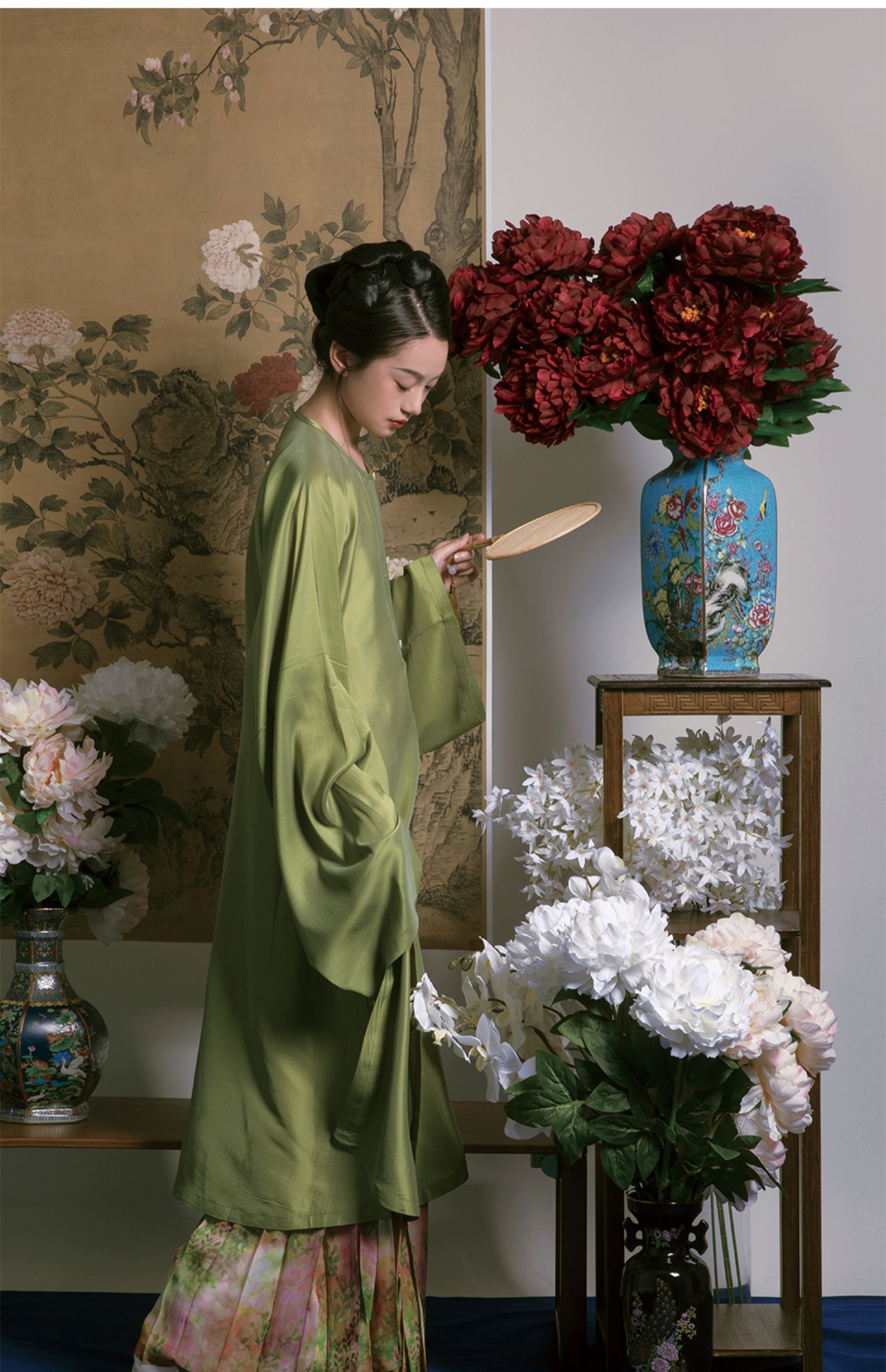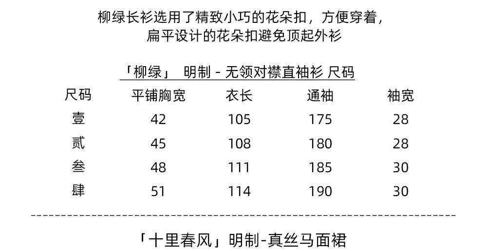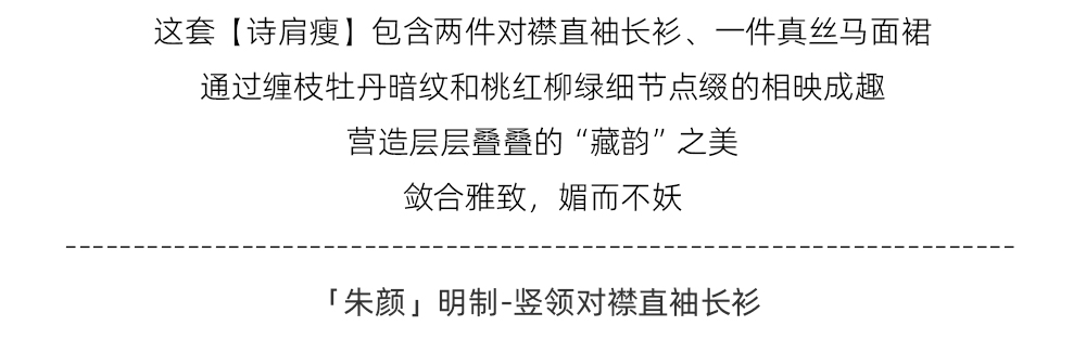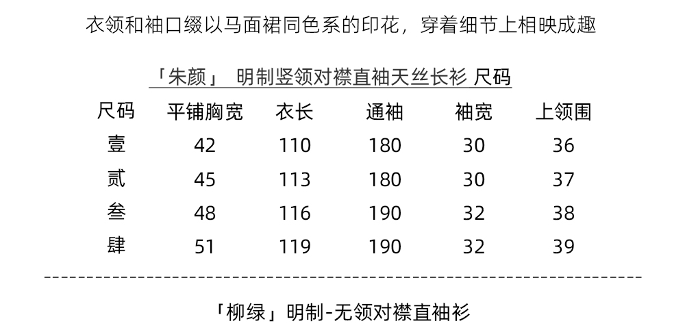 Color classification | 'Zhu Yan' Ming system - vertical collar straight sleeved long shirt, 'Liu Green' Ming system - collarless straight sleeved long shirt, 'Ten Miles Spring Breeze' Ming system - horse face skirt |