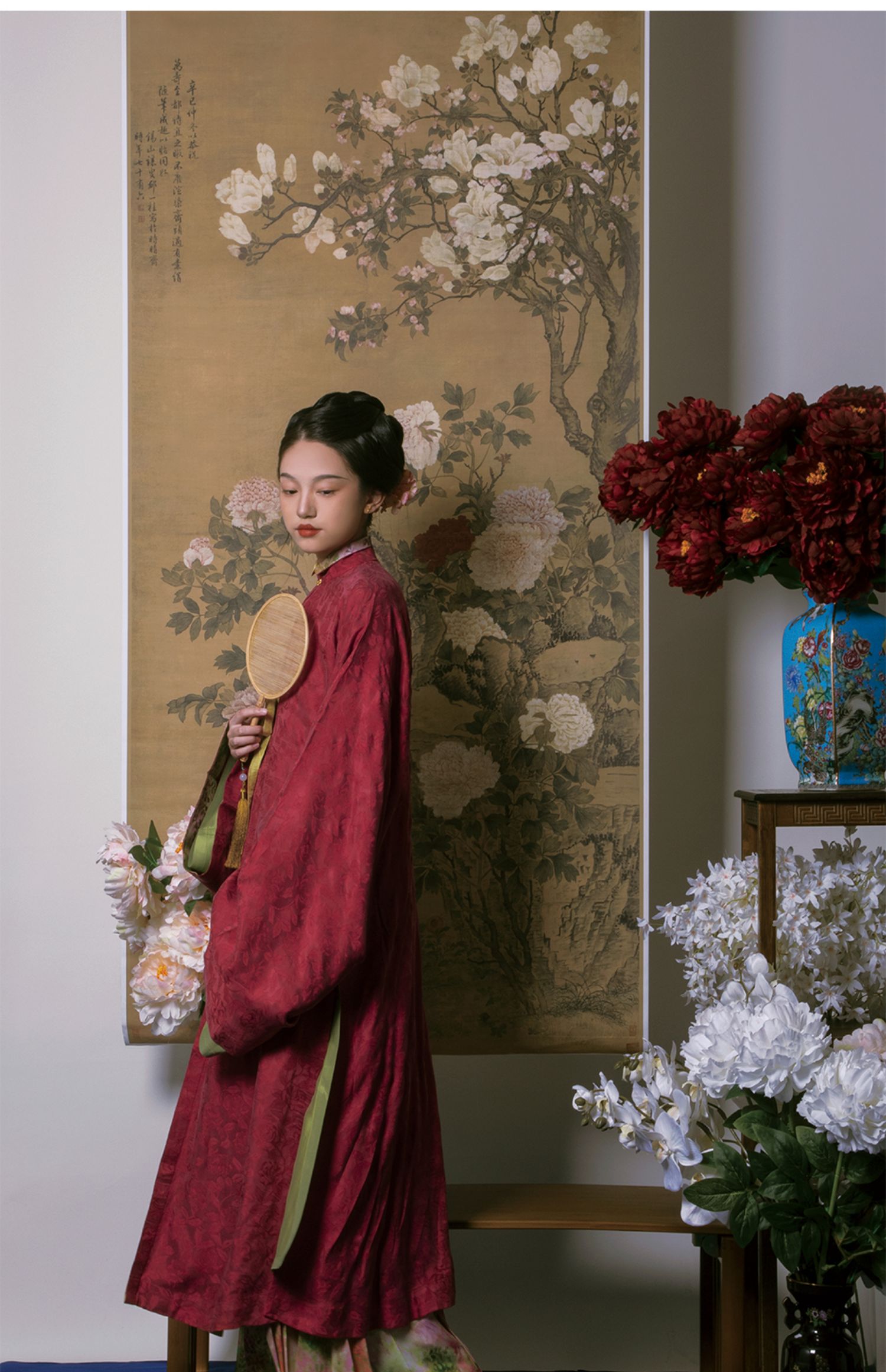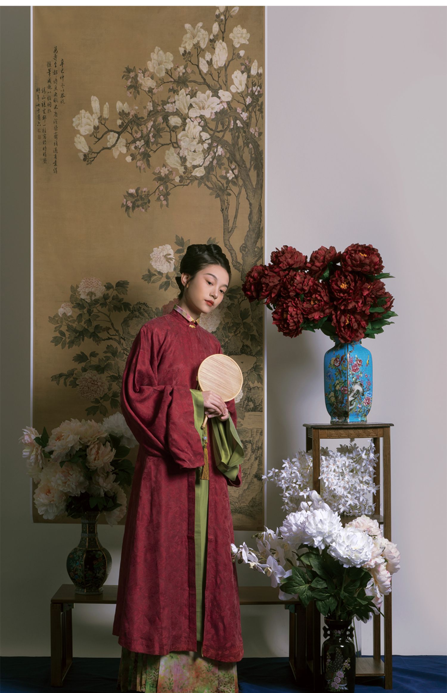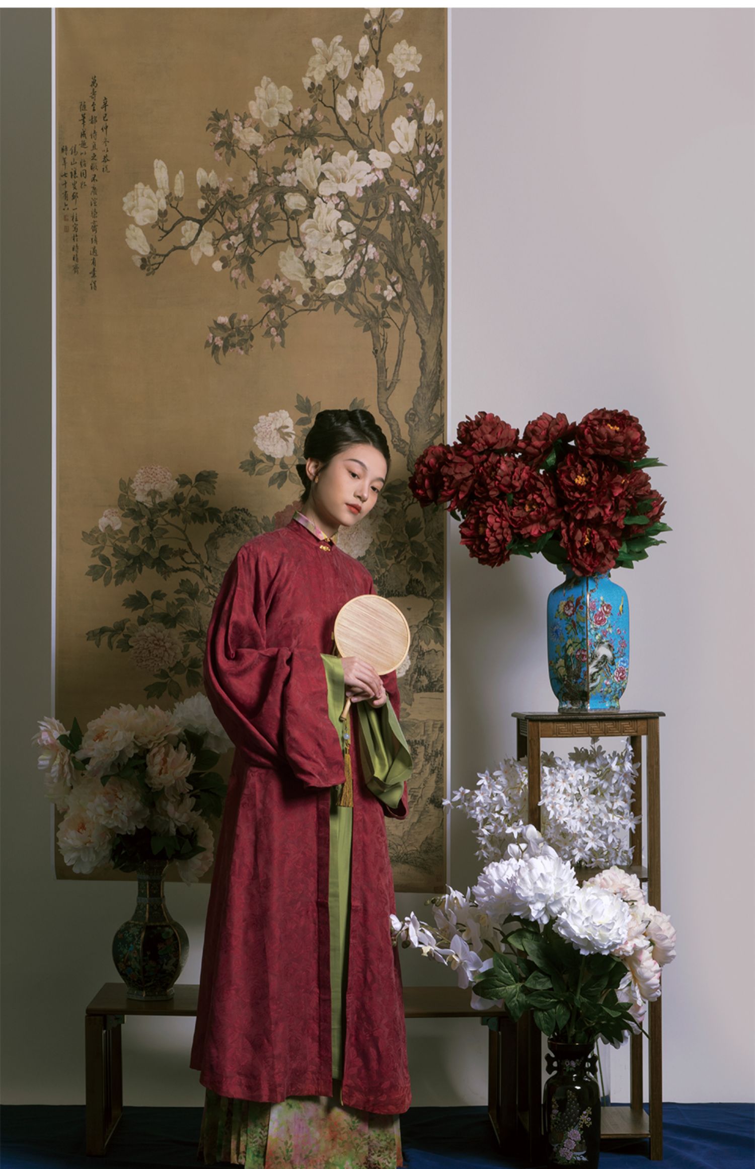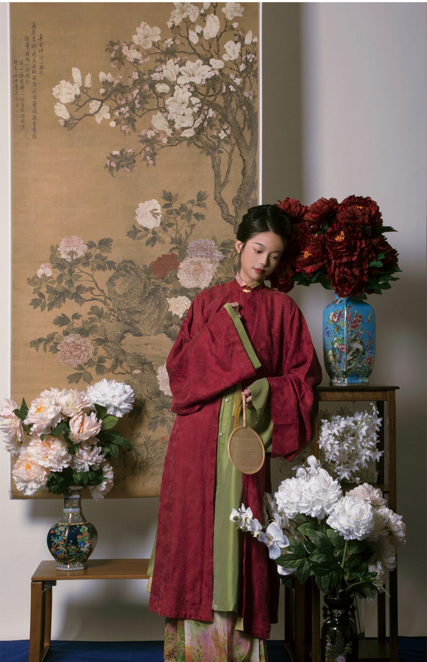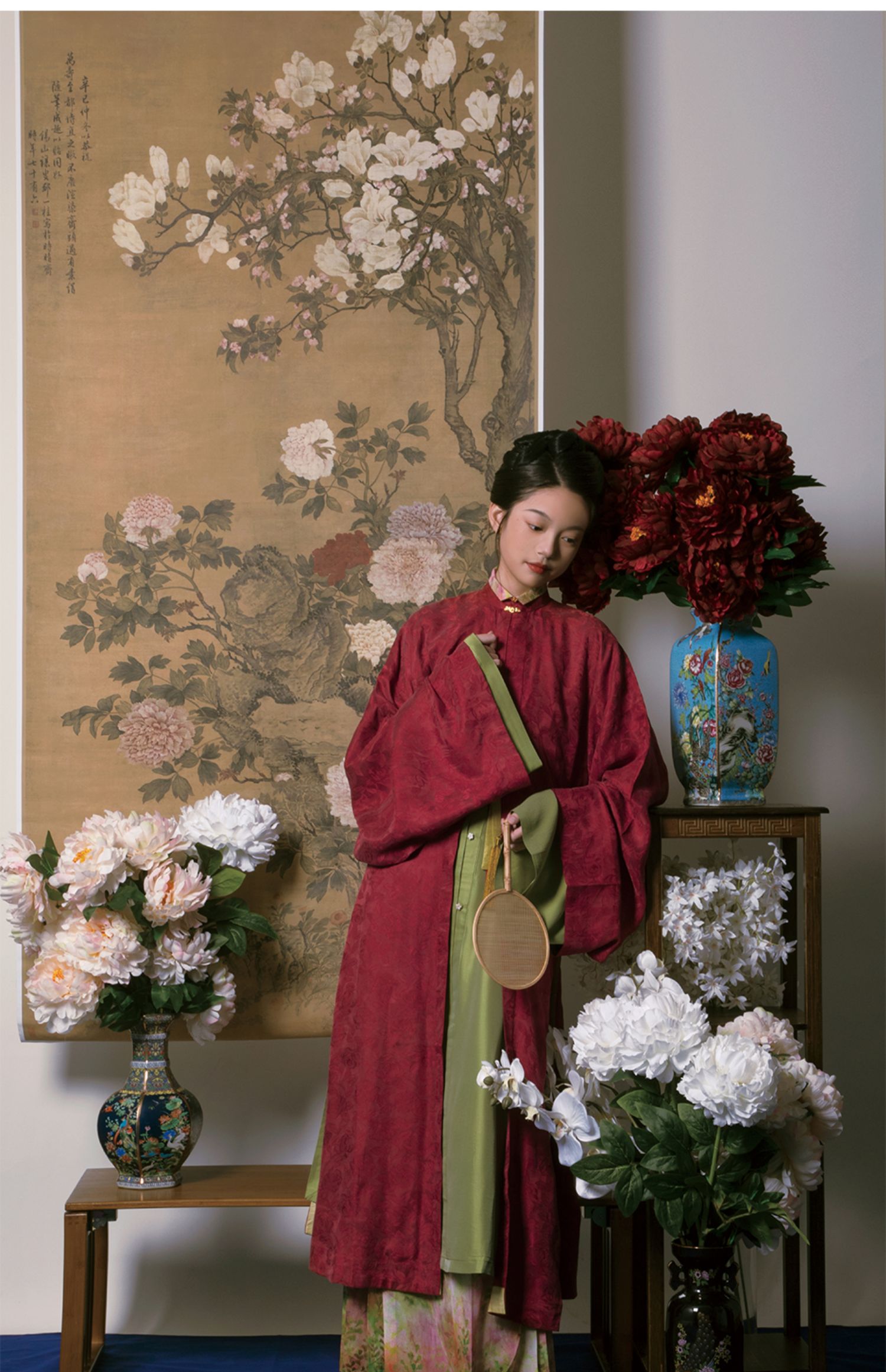 Color classification | 'Zhu Yan' Ming system - vertical collar straight sleeved long shirt, 'Liu Green' Ming system - collarless straight sleeved long shirt, 'Ten Miles Spring Breeze' Ming system - horse face skirt |