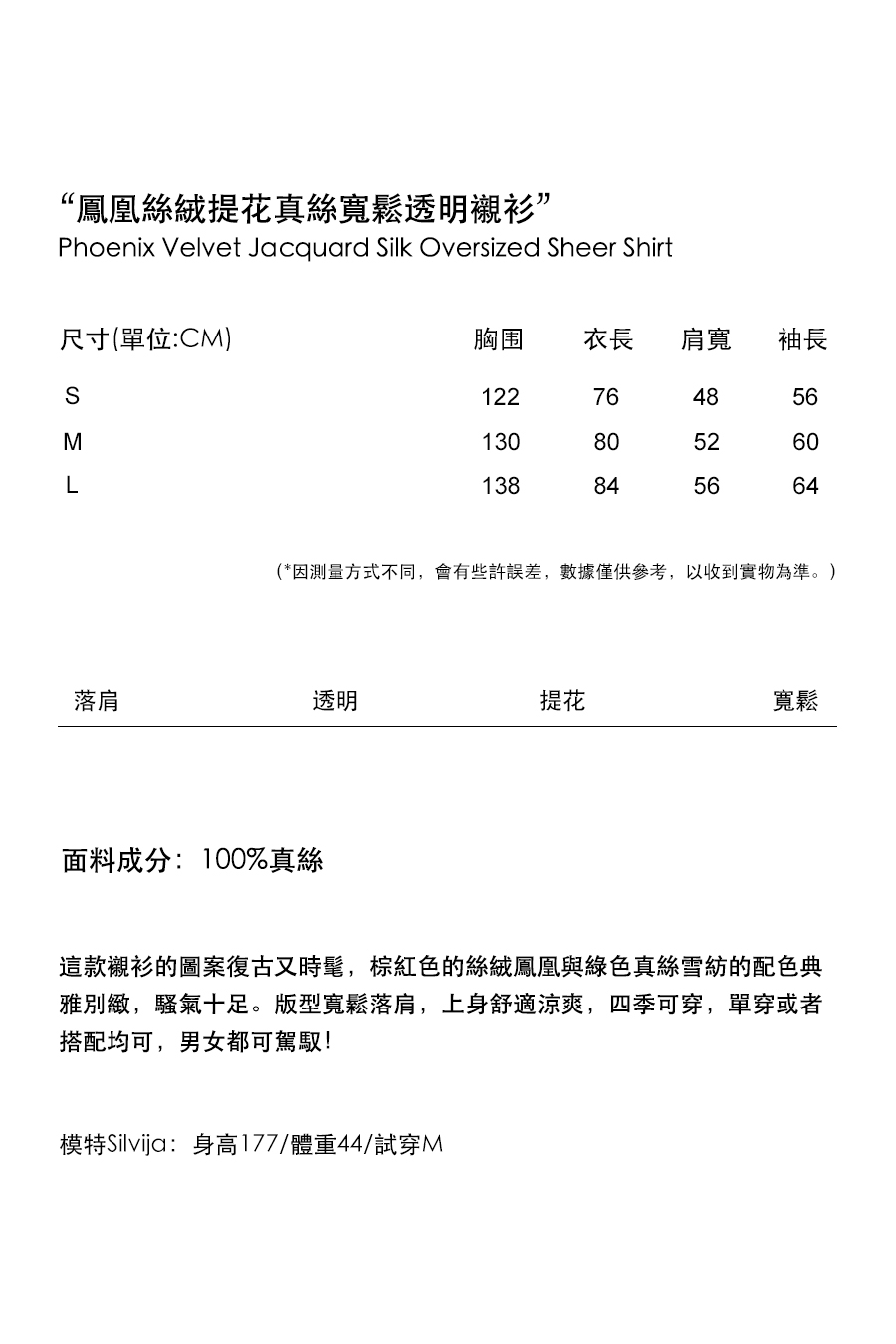 Material composition | Mulberry silk 100% |