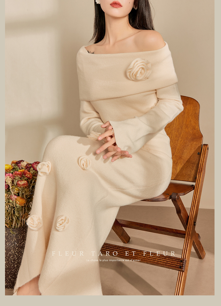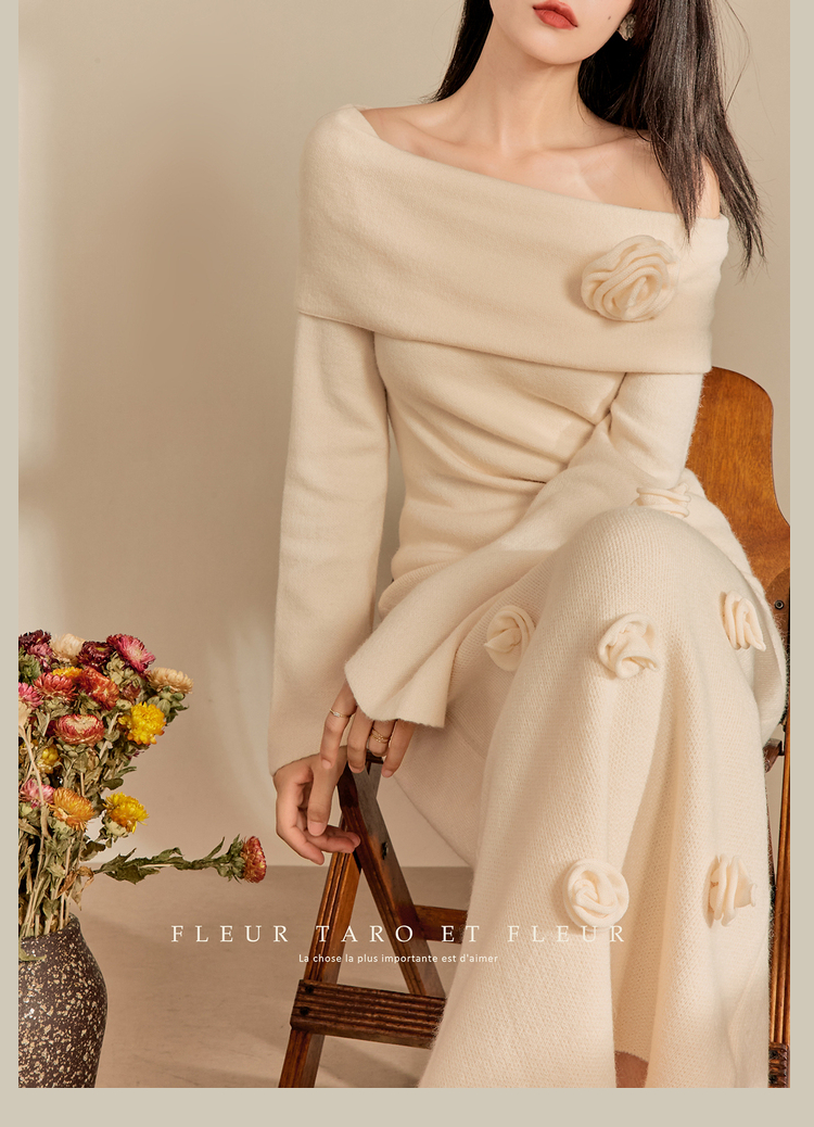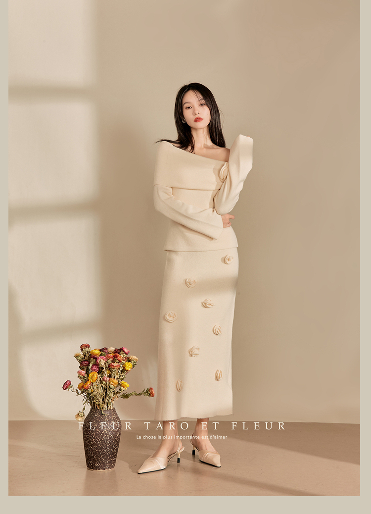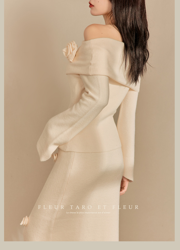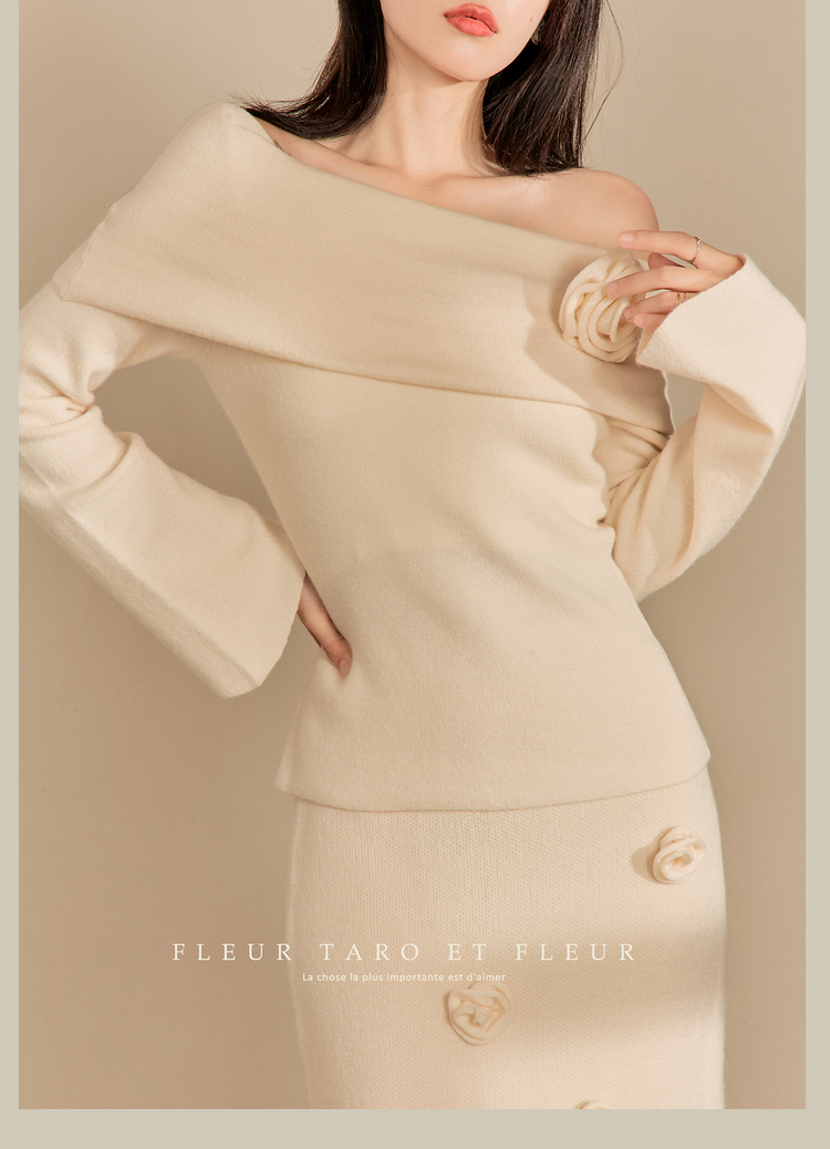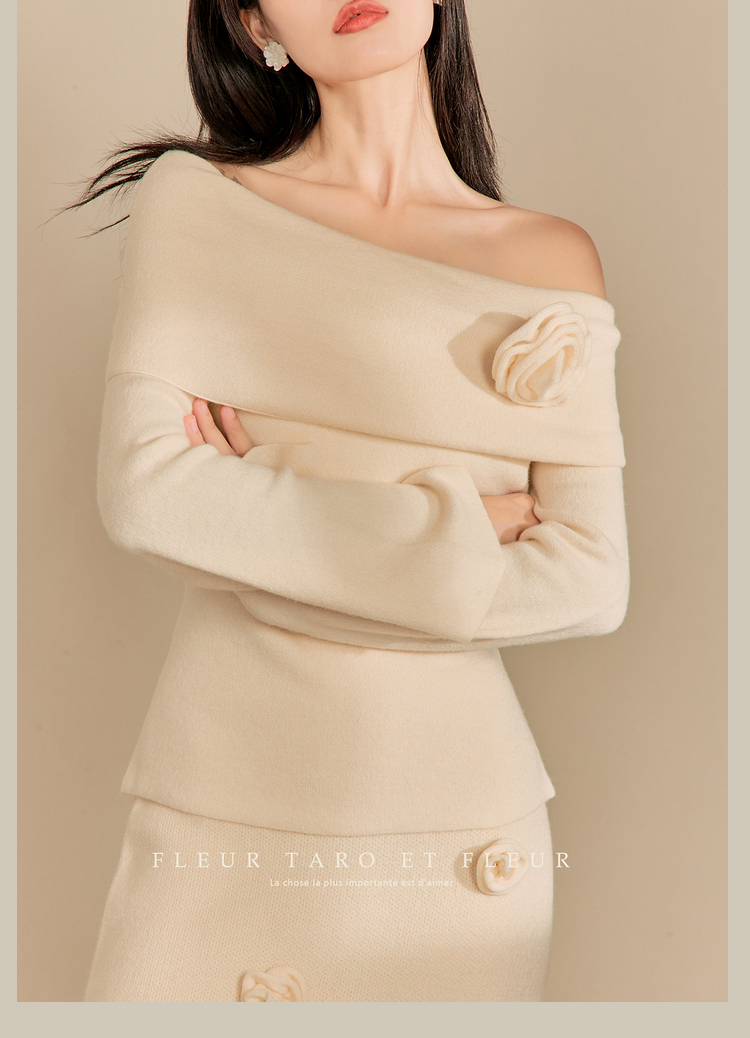 ASAYA2578 Romantic French knitted one-shoulder high-end niche top
