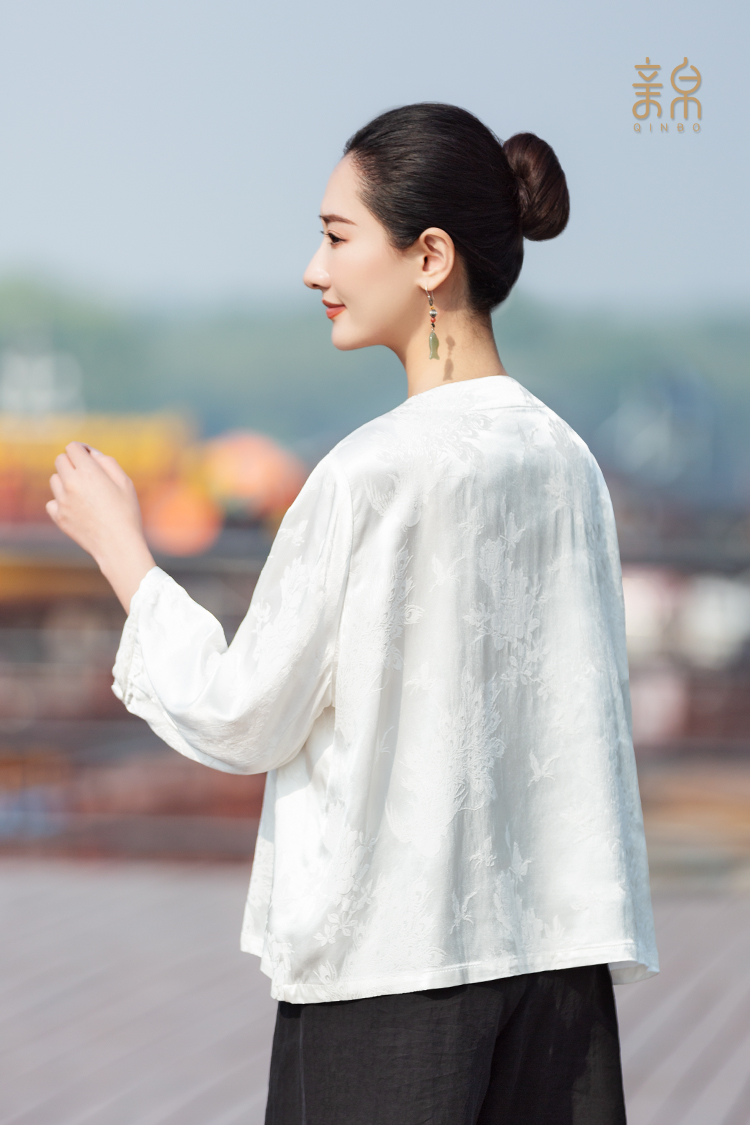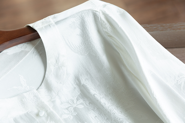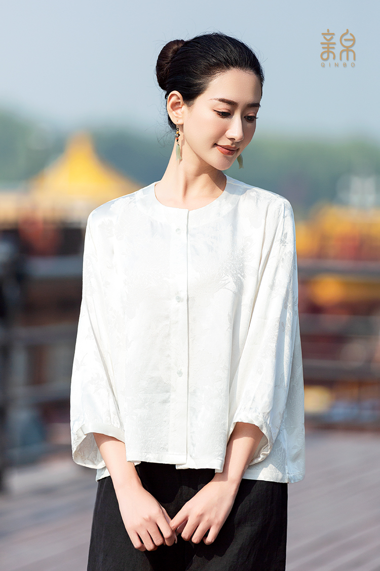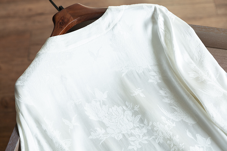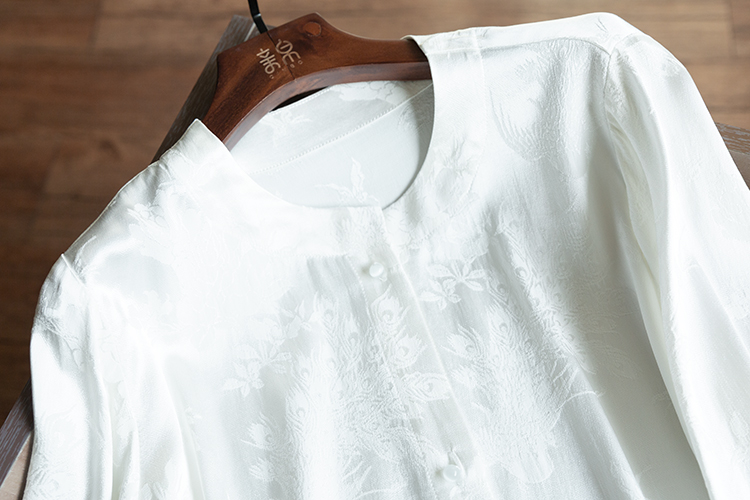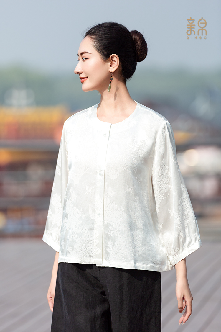 ASAYA1841 Jacquard satin light Chinese top Women's spring/summer crewneck loose quarter-sleeved shirt