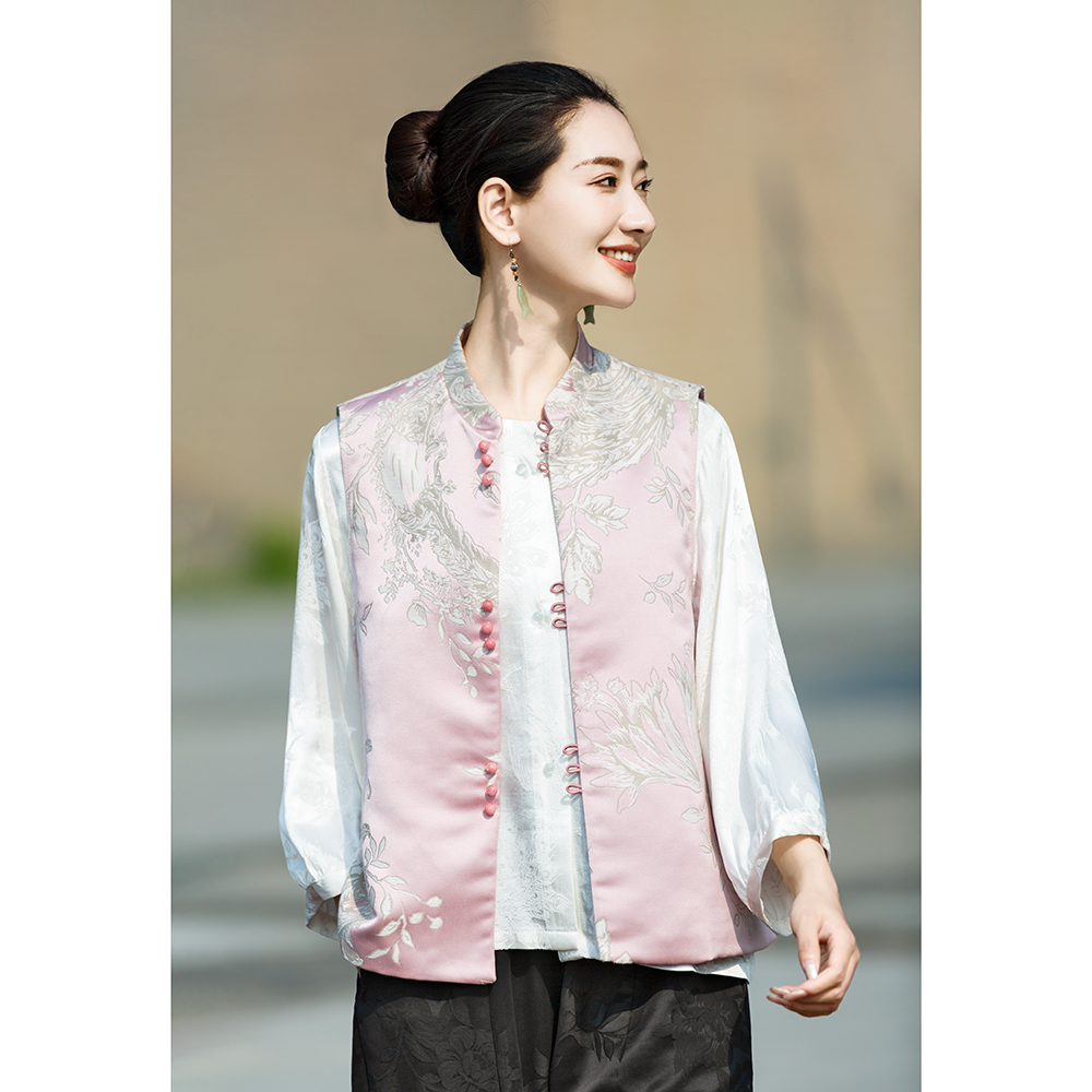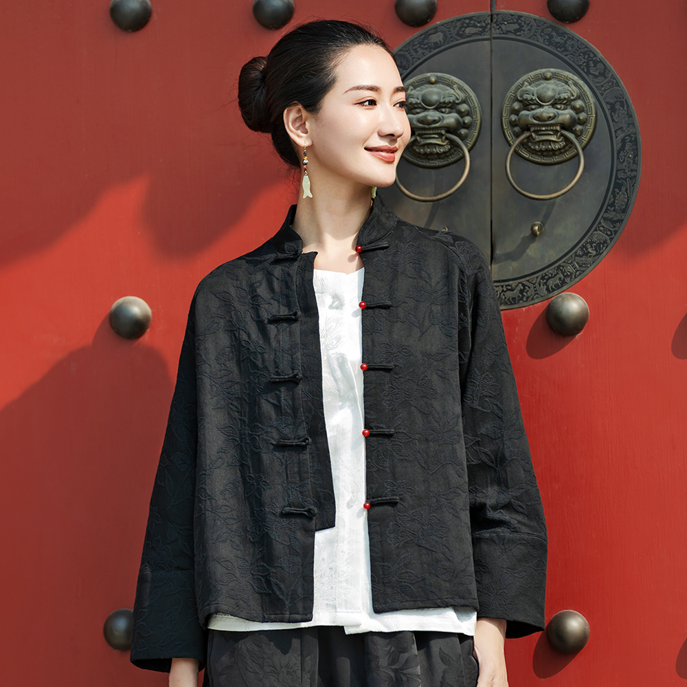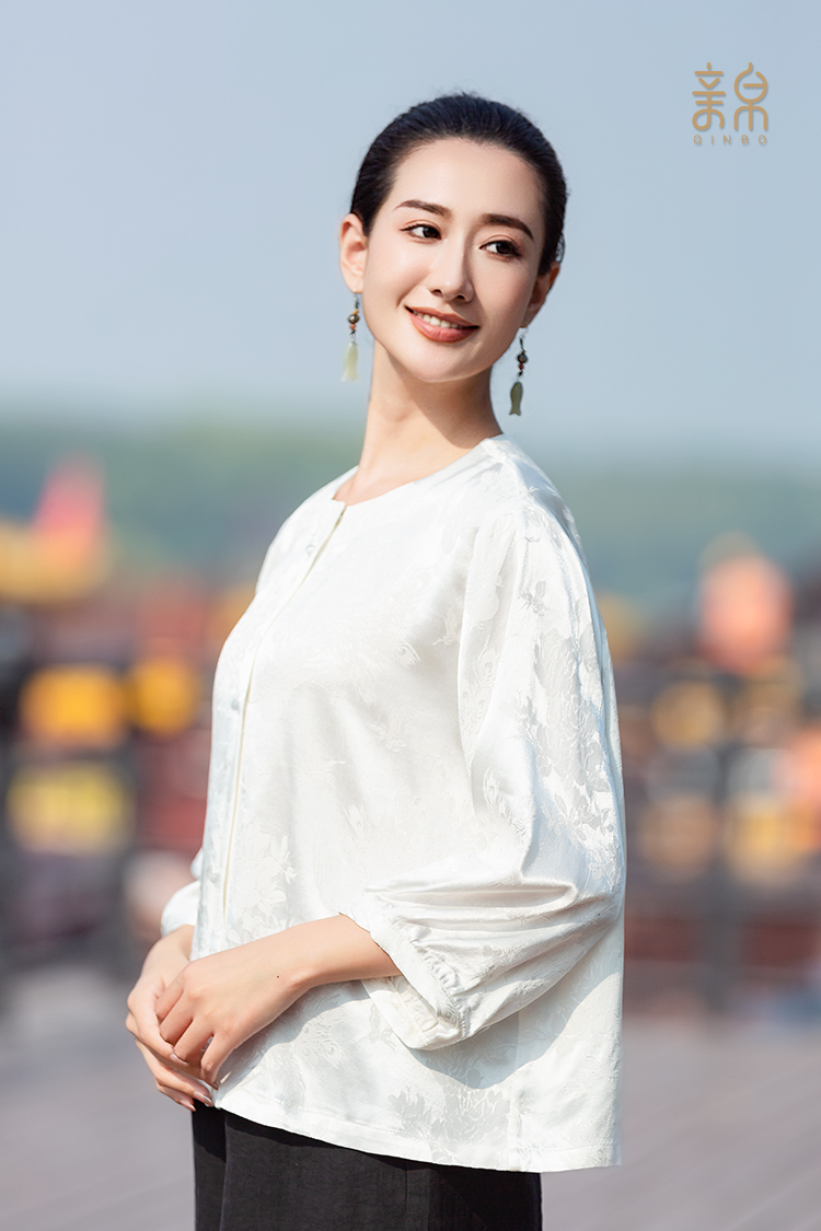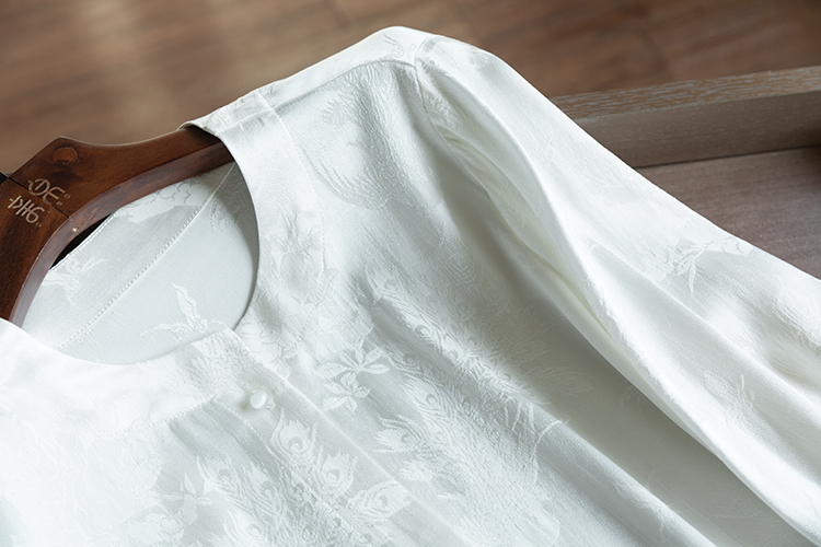 ASAYA1841 Jacquard satin light Chinese top Women's spring/summer crewneck loose quarter-sleeved shirt