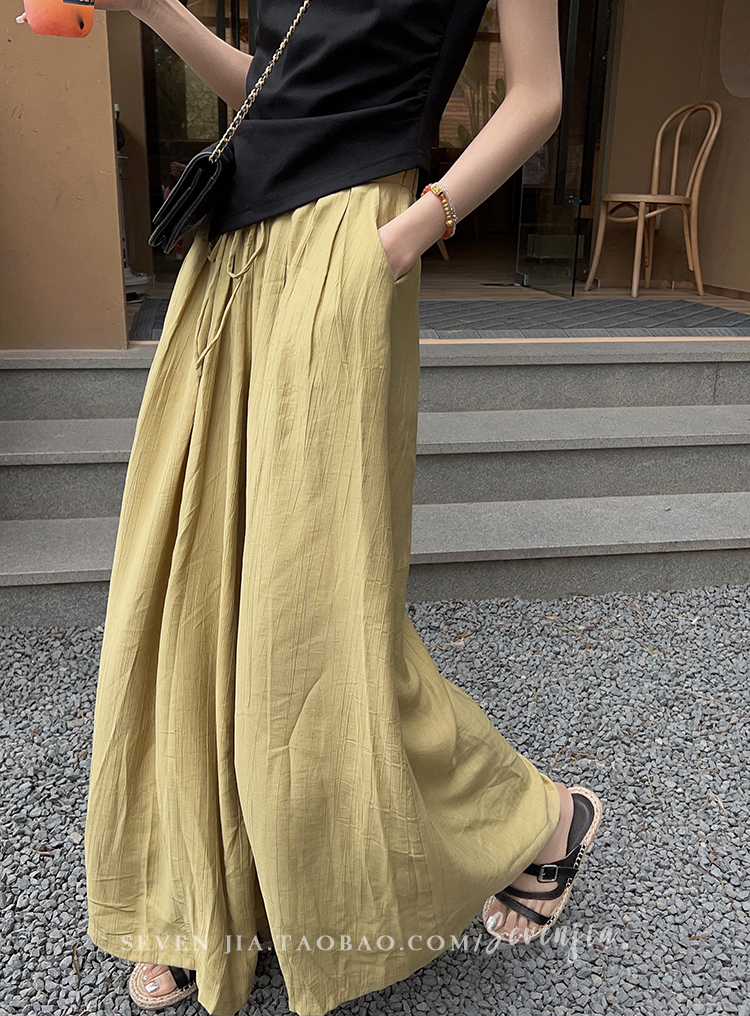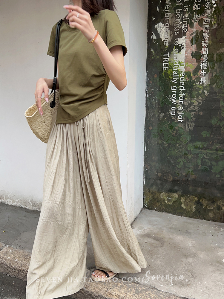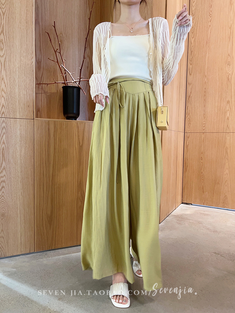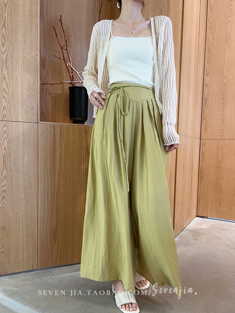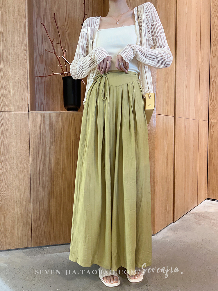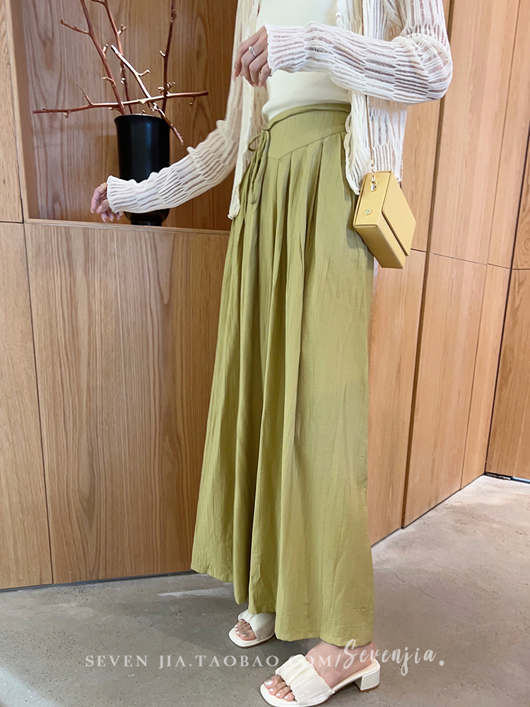 ASAYA2343 Qiqijia green high-waist pleated elastic waist tie-leg pants