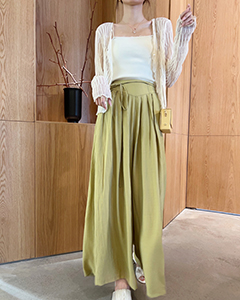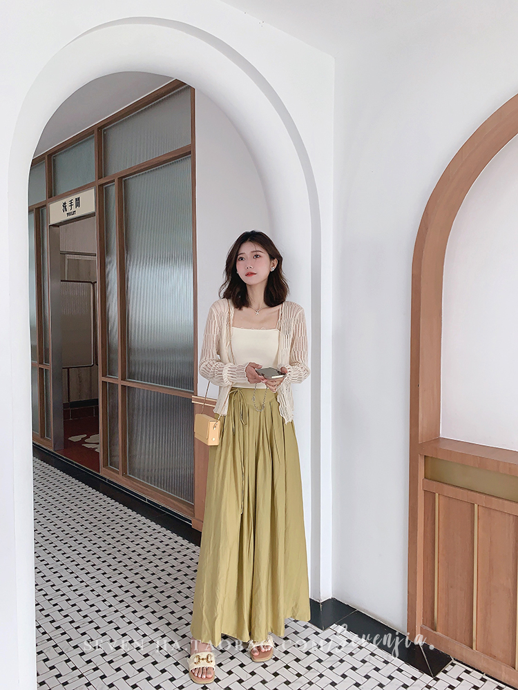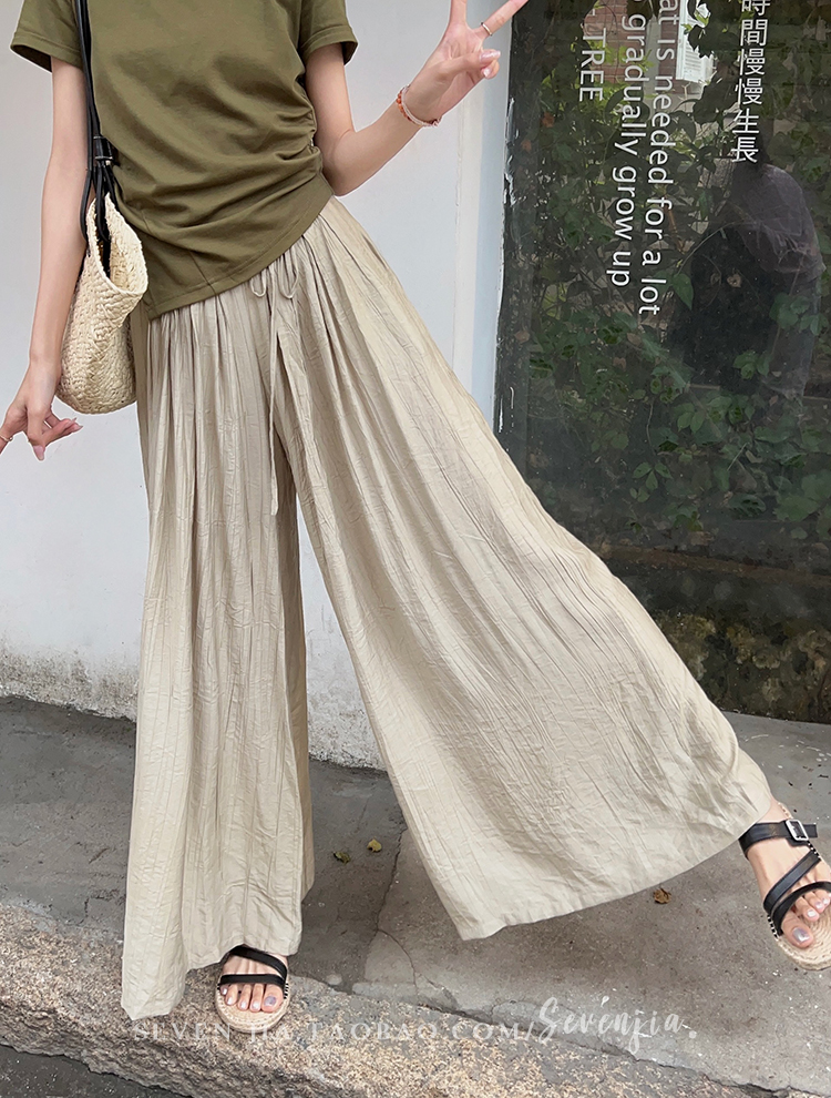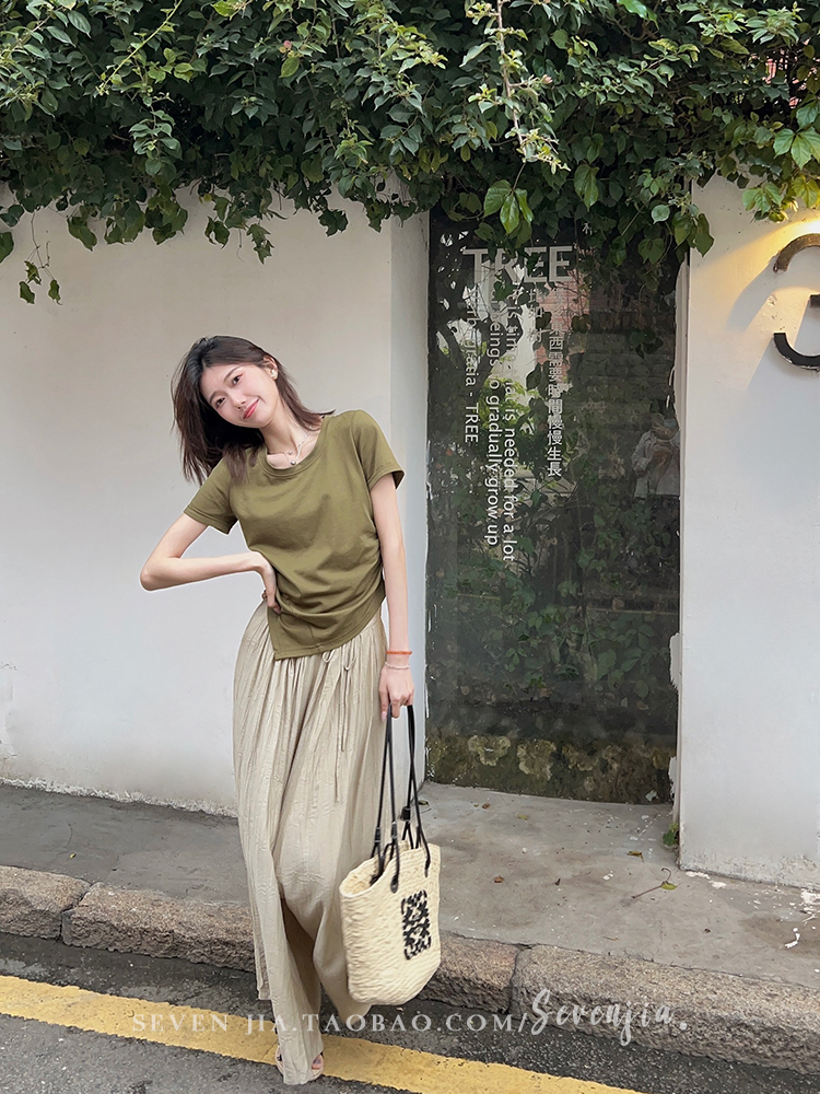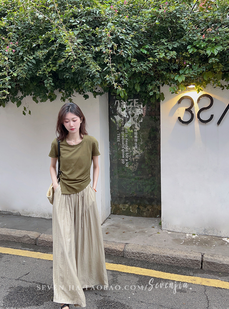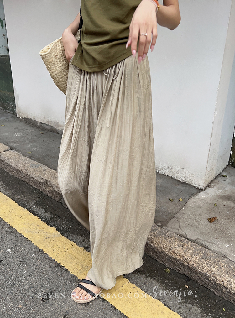 ASAYA2343 Qiqijia green high-waist pleated elastic waist tie-leg pants