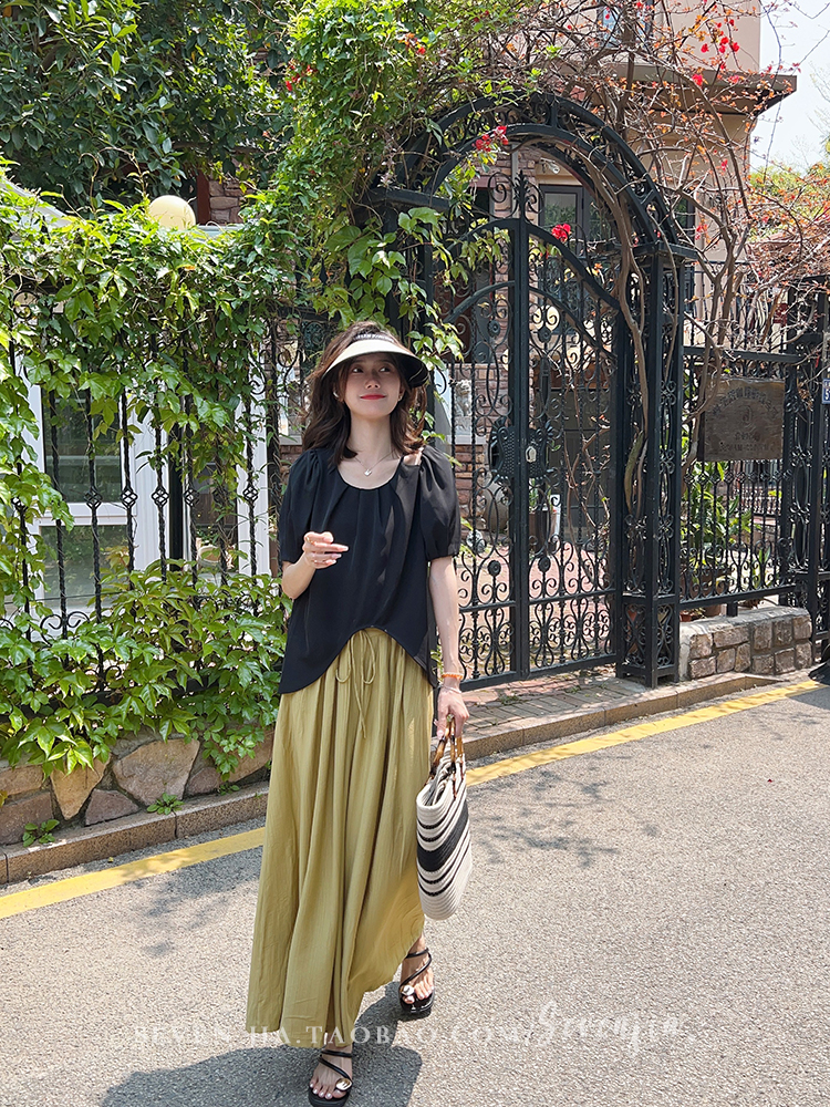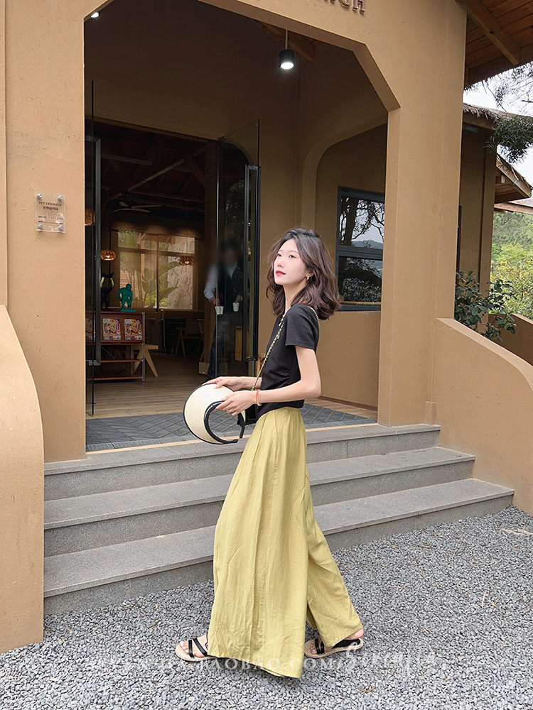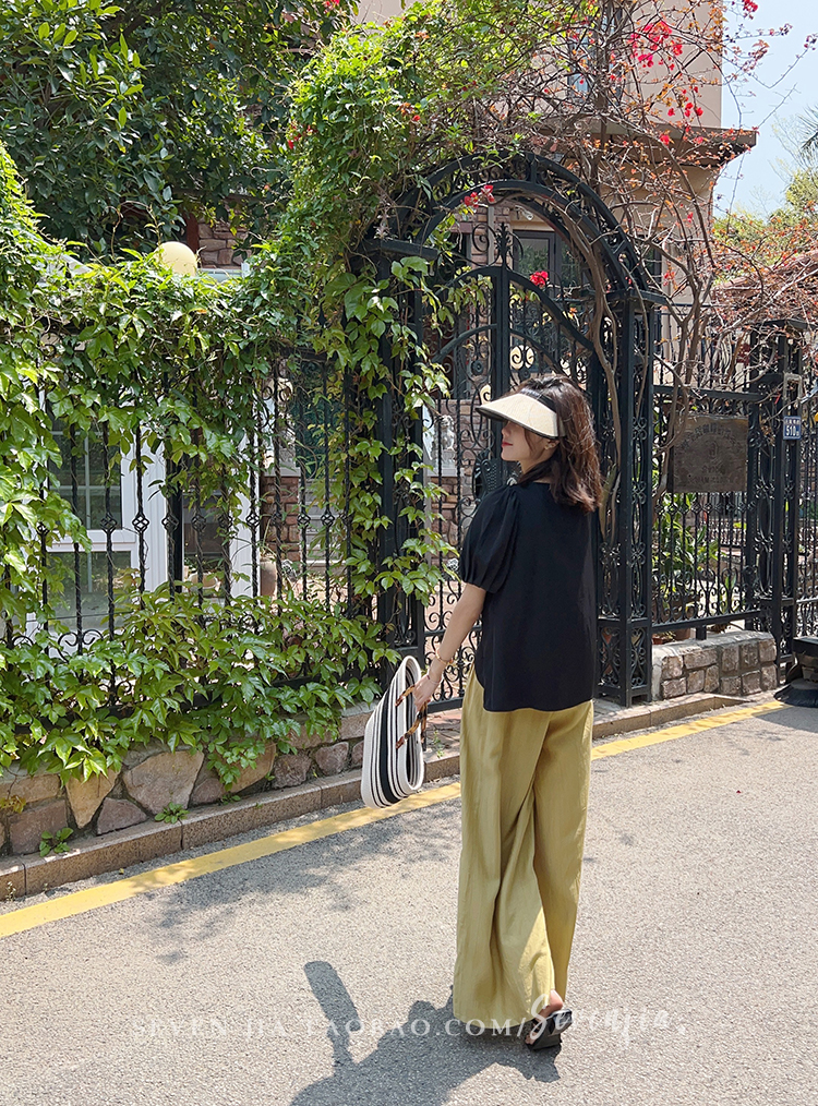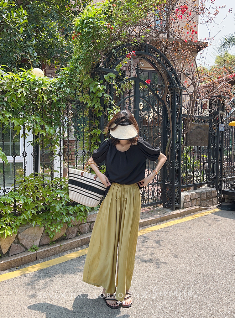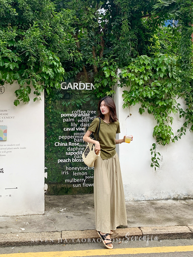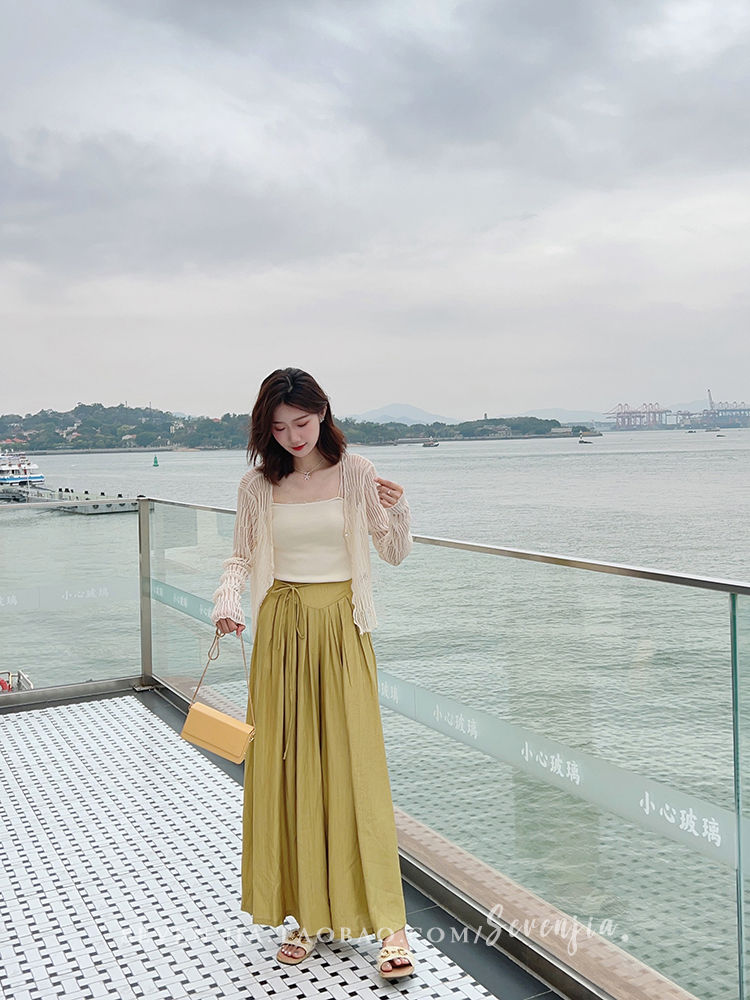 ASAYA2343 Qiqijia green high-waist pleated elastic waist tie-leg pants