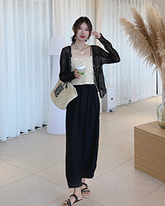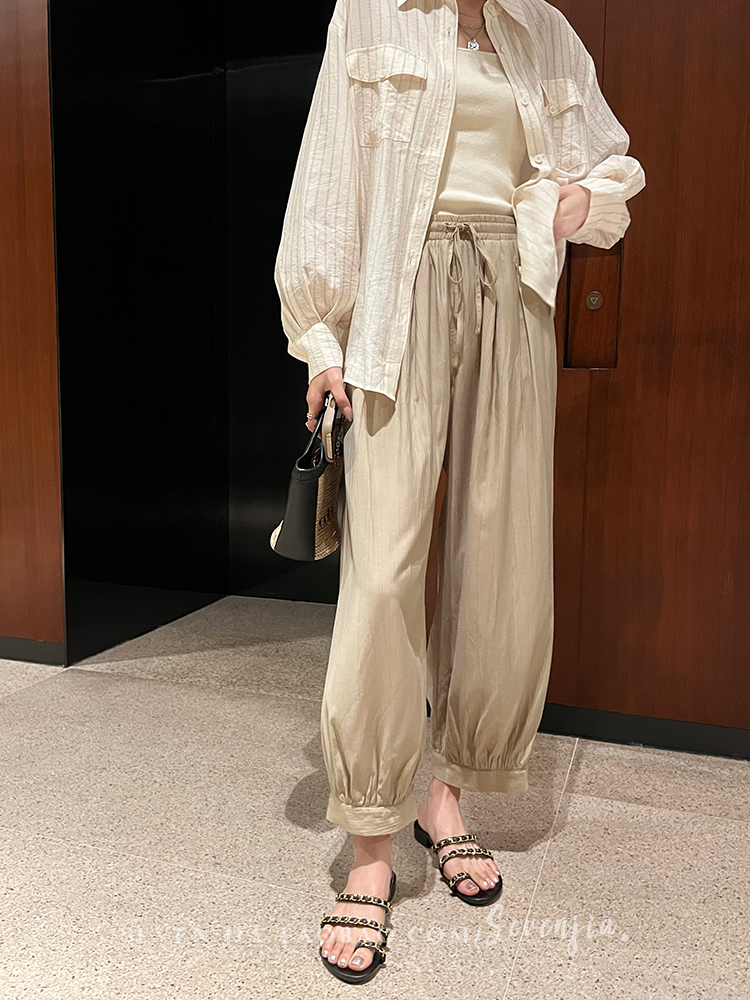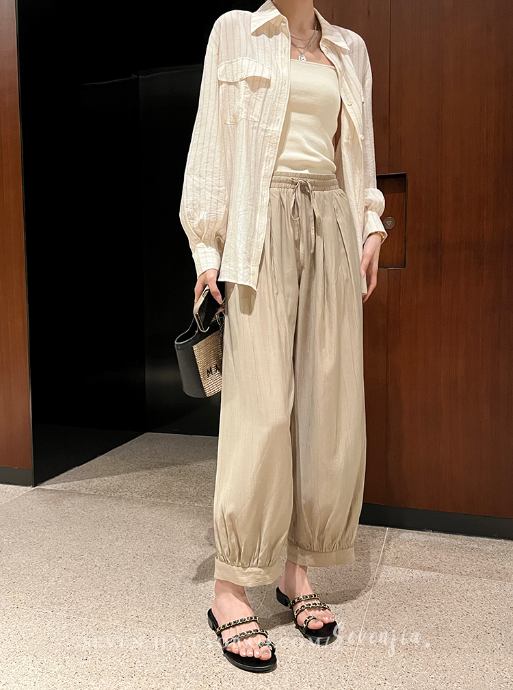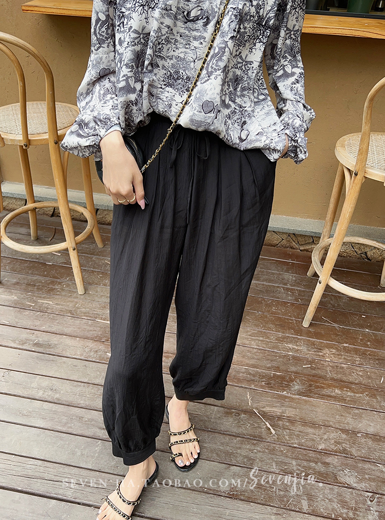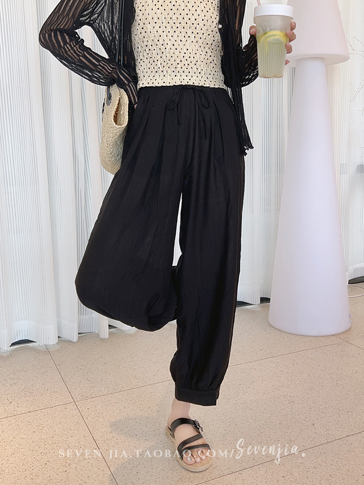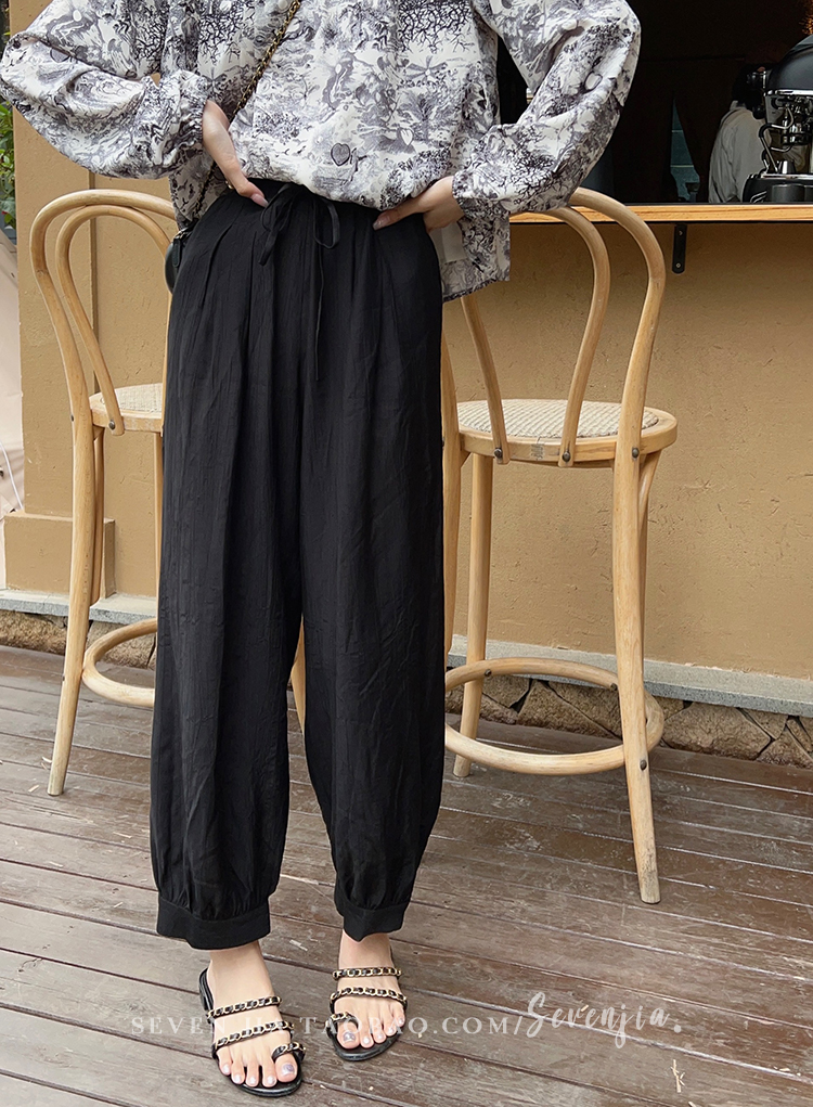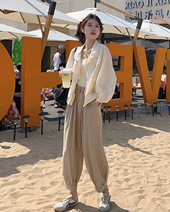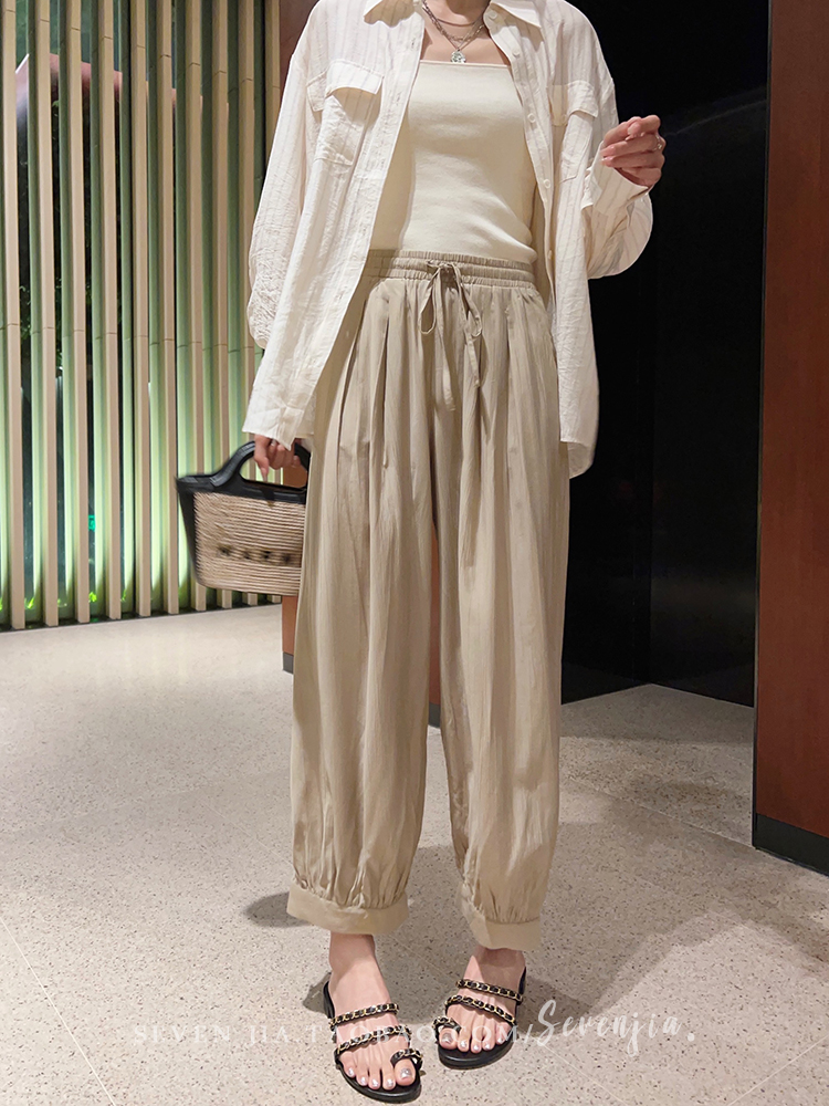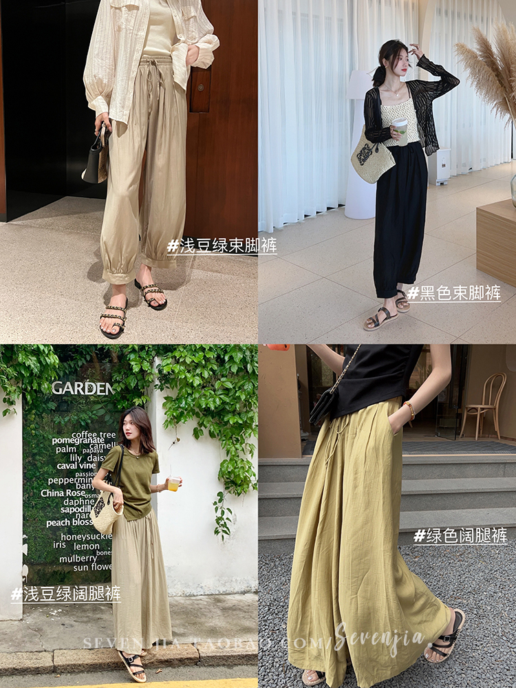 细节/DETAIL | 束脚裤:松紧腰绑带,侧边两口袋,脚口扣带收口 阔腿裤:后腰拼接松紧,配腰带,侧边两口袋 | ||