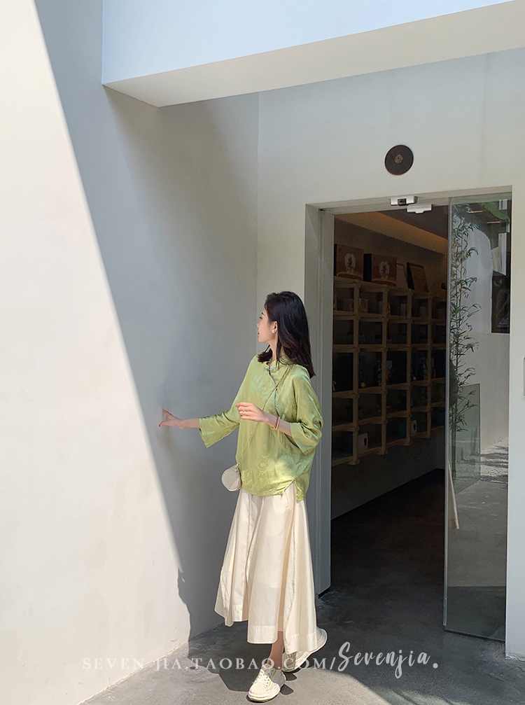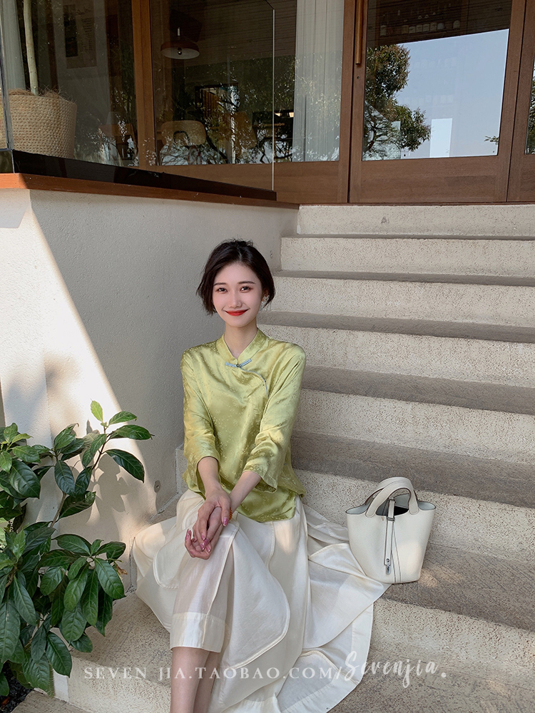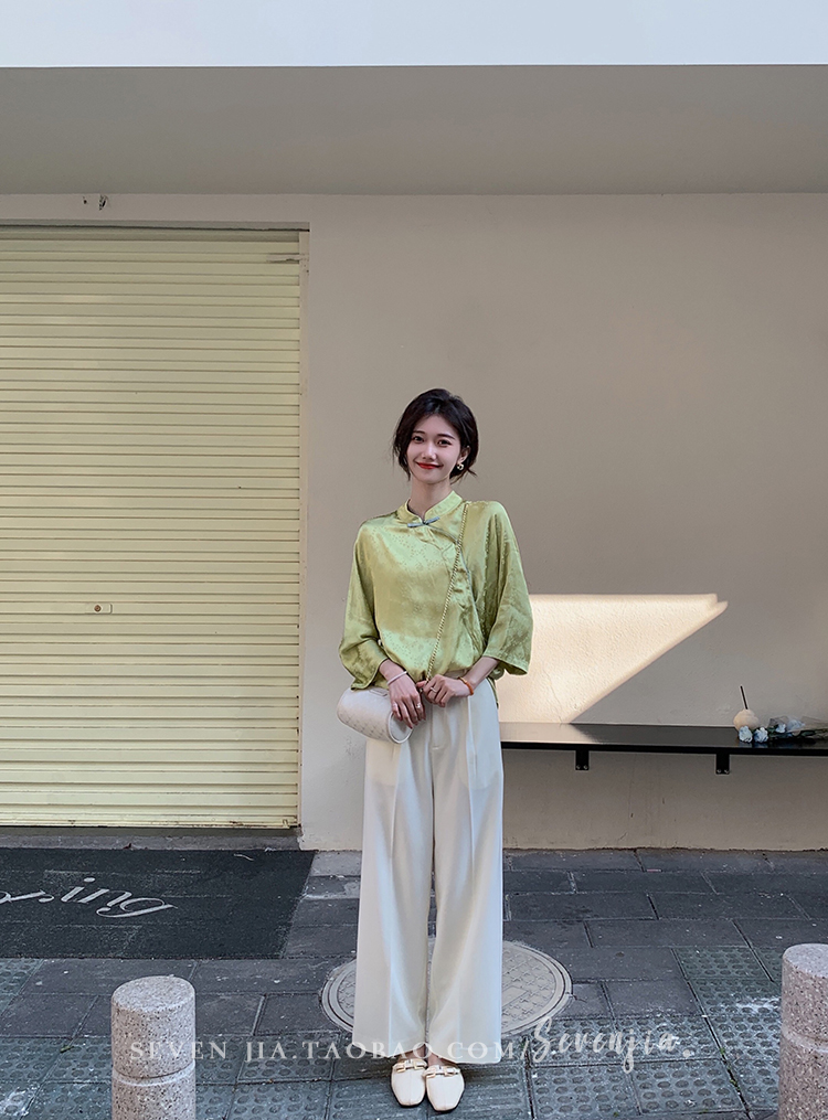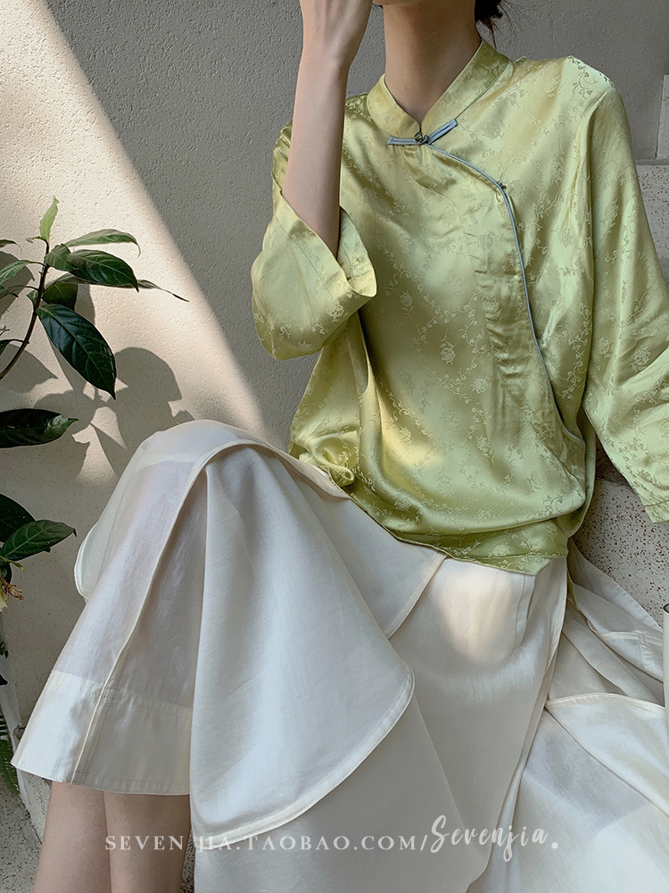 Clothing style details | Chinese style buckle design, jacquard pattern, small slit at the hem |