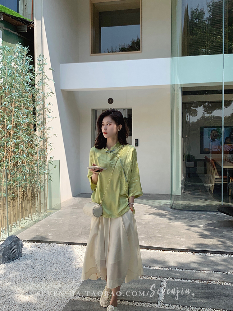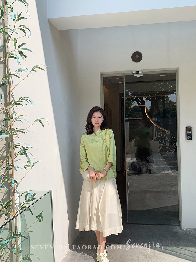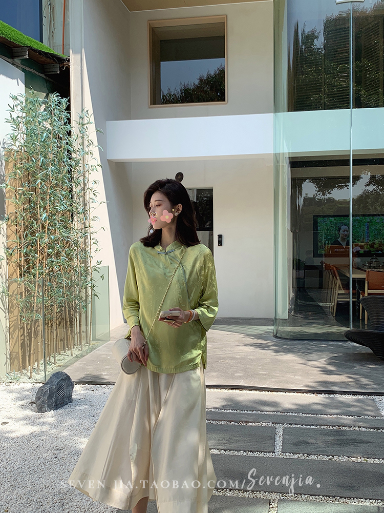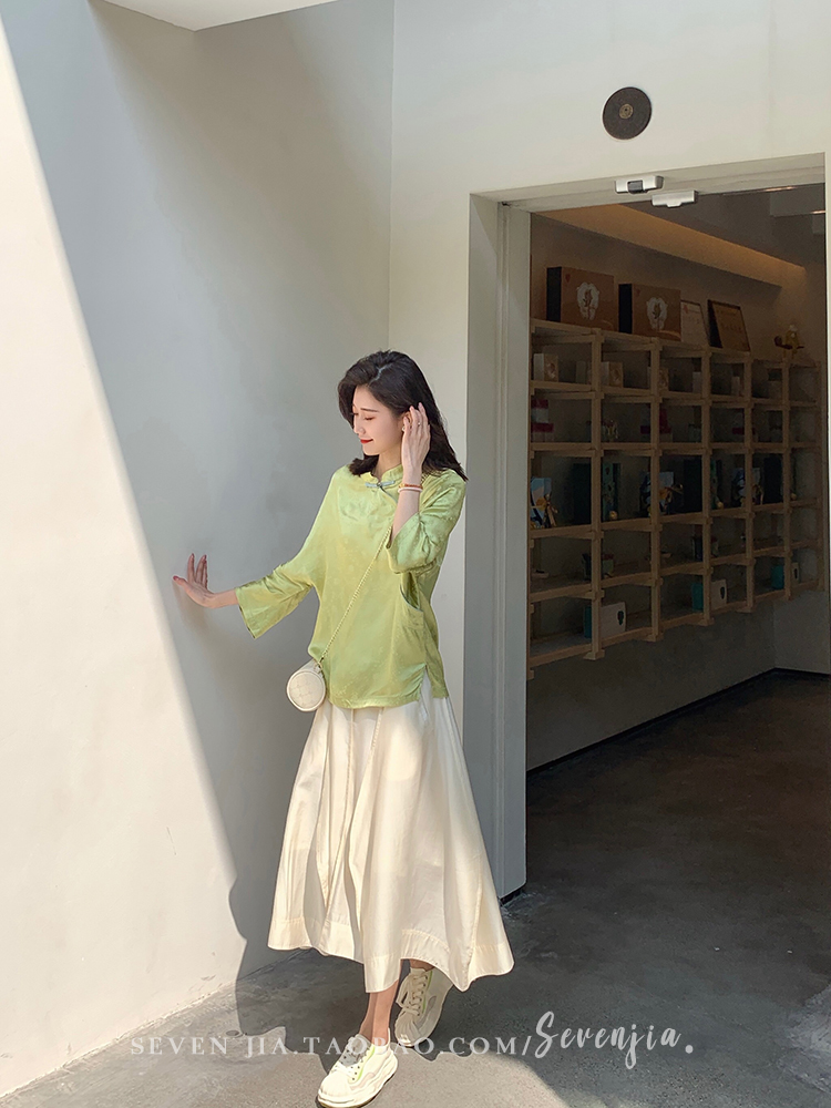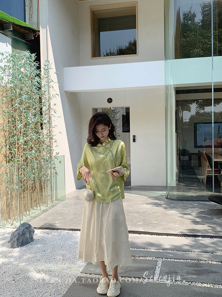 Clothing style details | Chinese style buckle design, jacquard pattern, small slit at the hem |