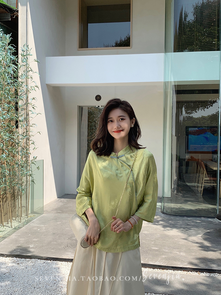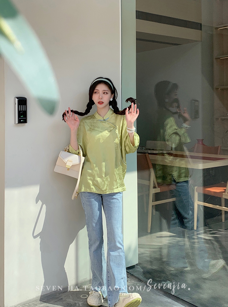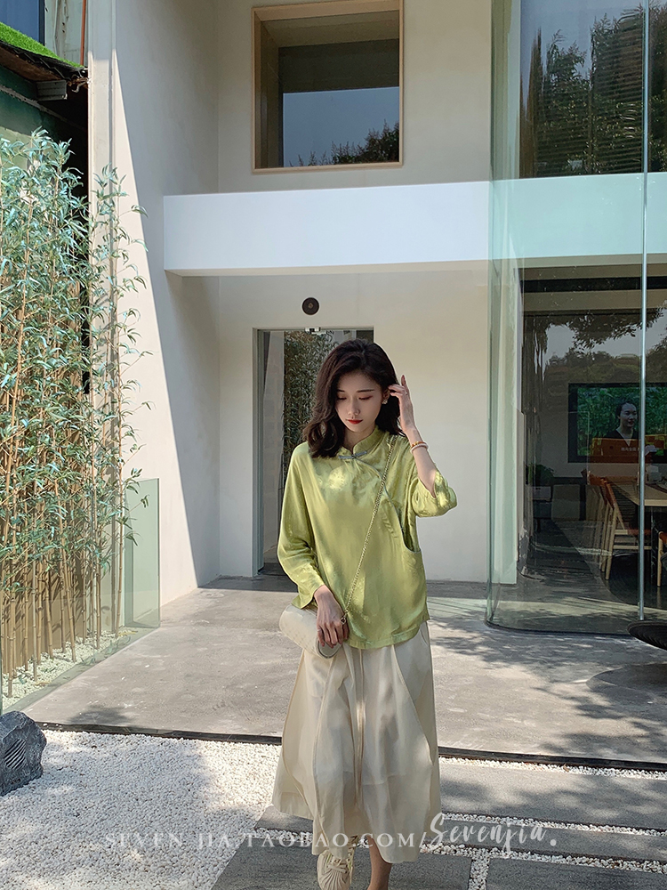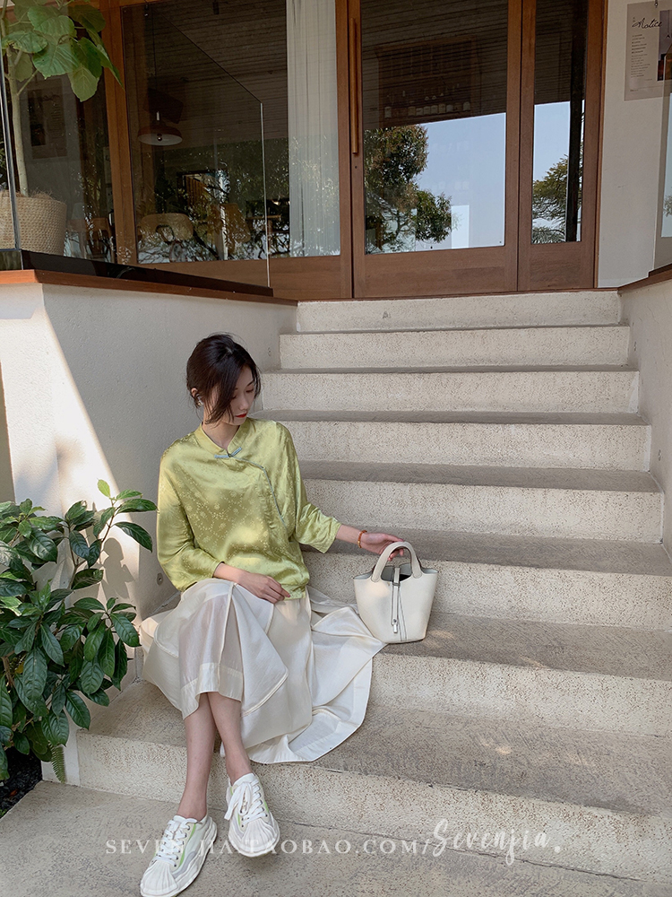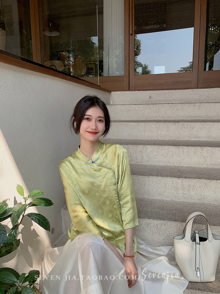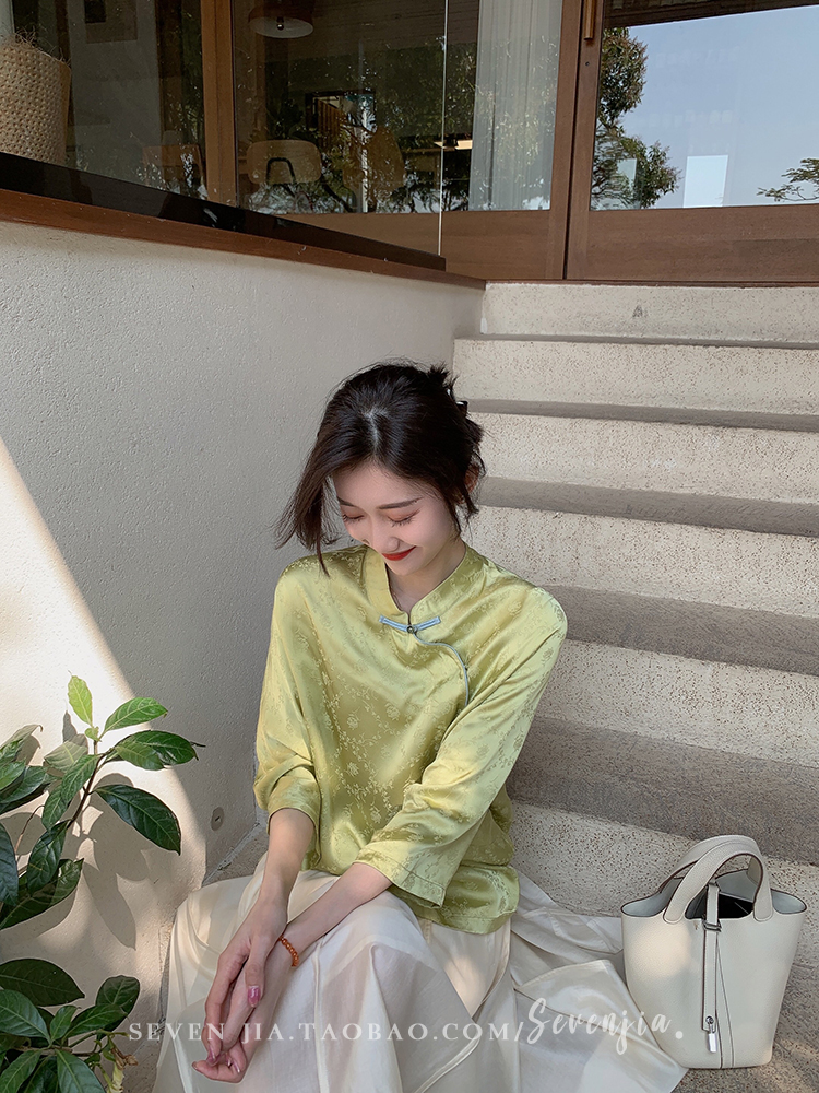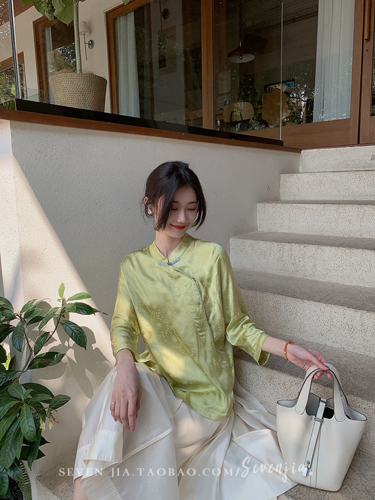 ASAYA2345 Qiqijia early autumn new Chinese antique embossed shirt women's long-sleeved top