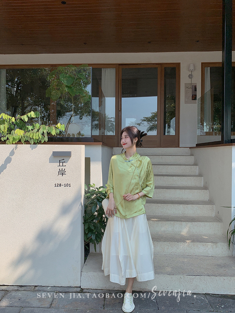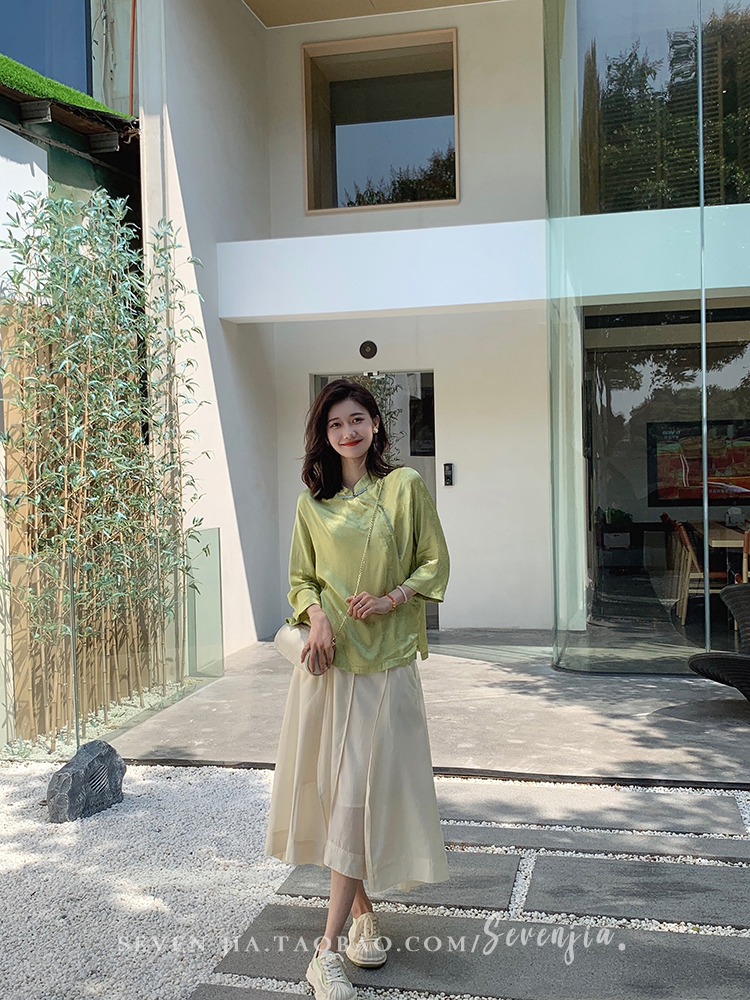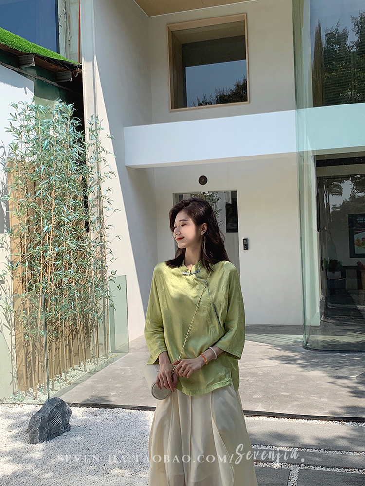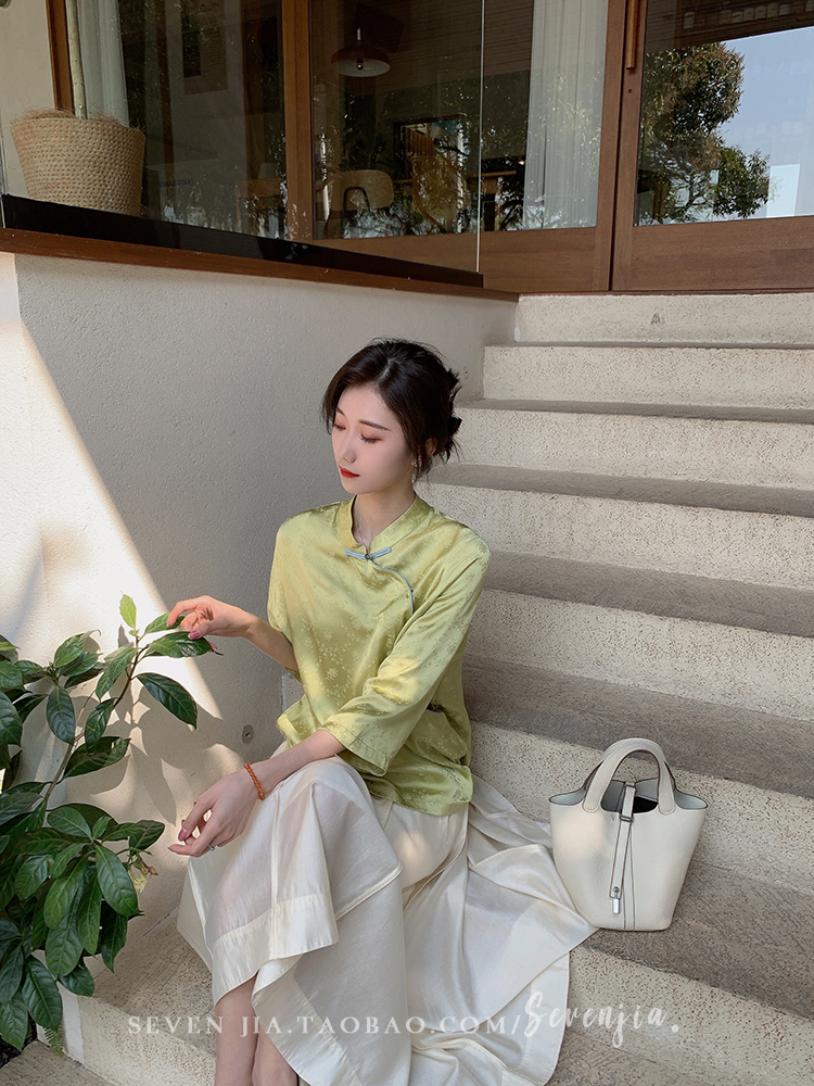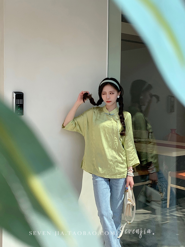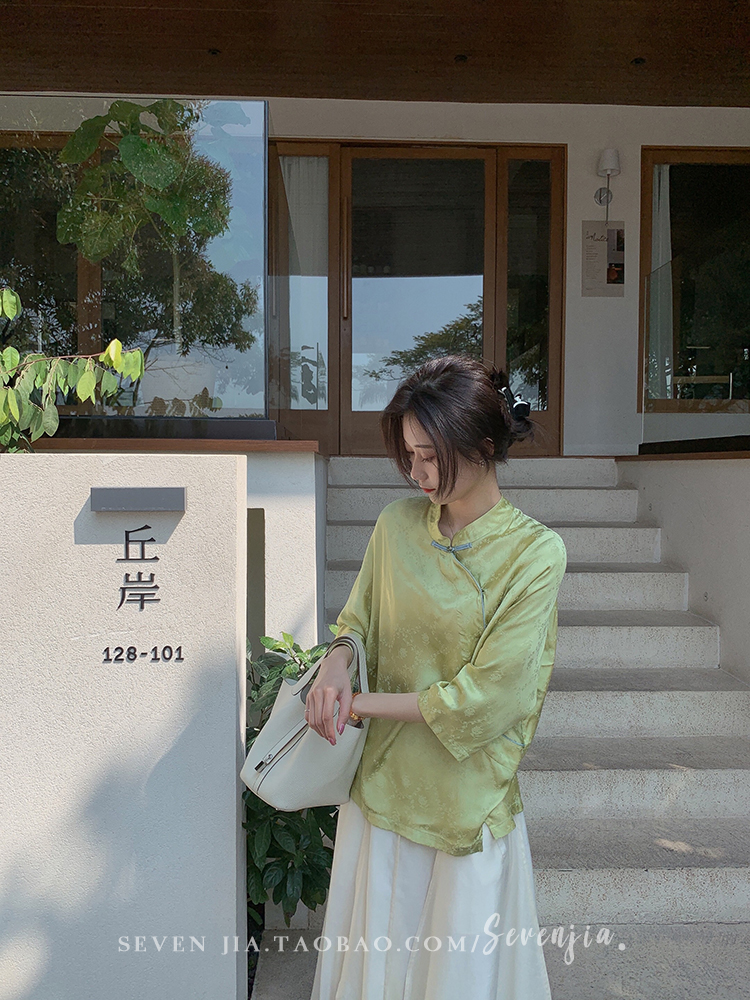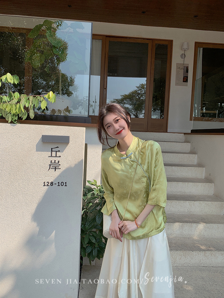 ASAYA2345 Qiqijia early autumn new Chinese antique embossed shirt women's long-sleeved top