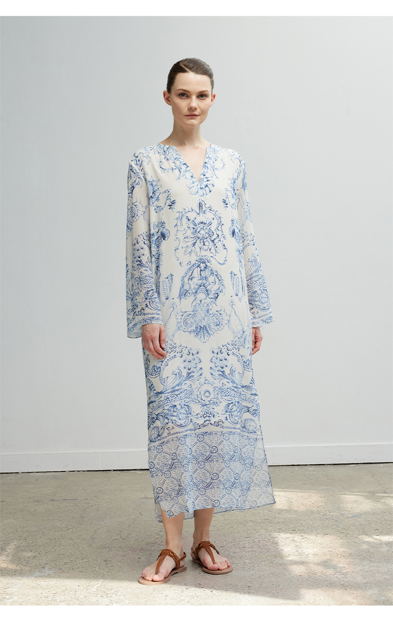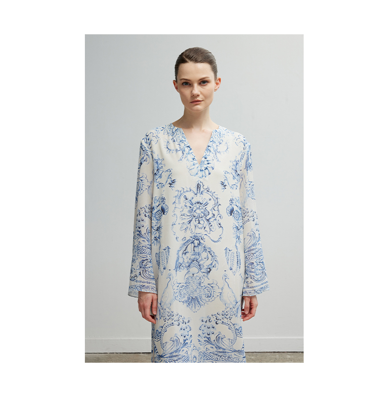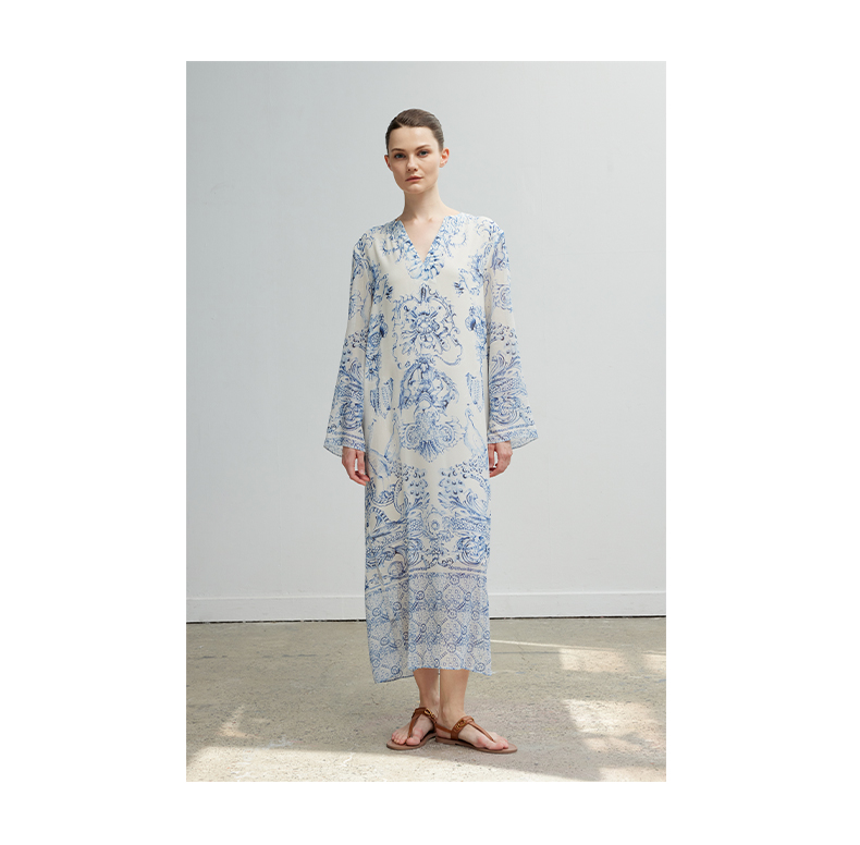 ASAYA4945 – Porcelain Muse Silk Dress 🕊💙