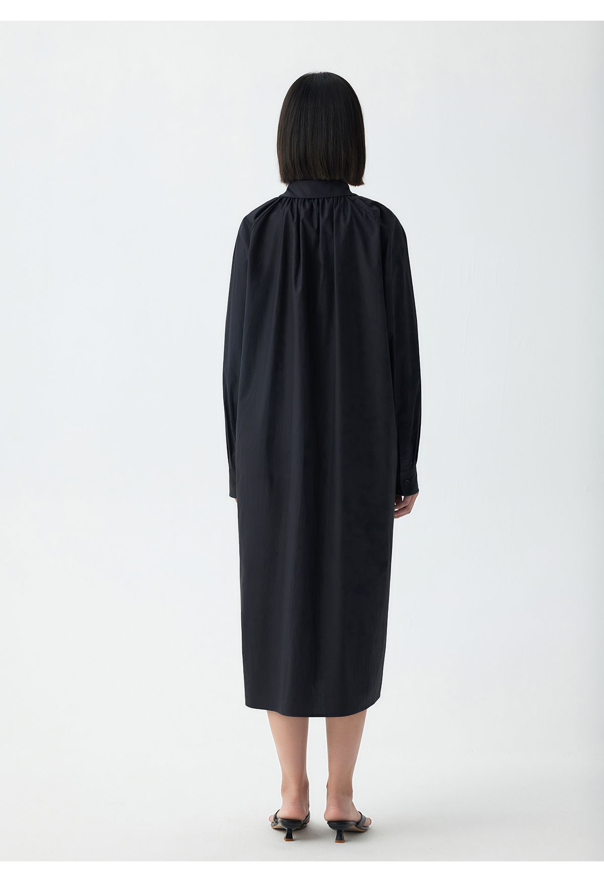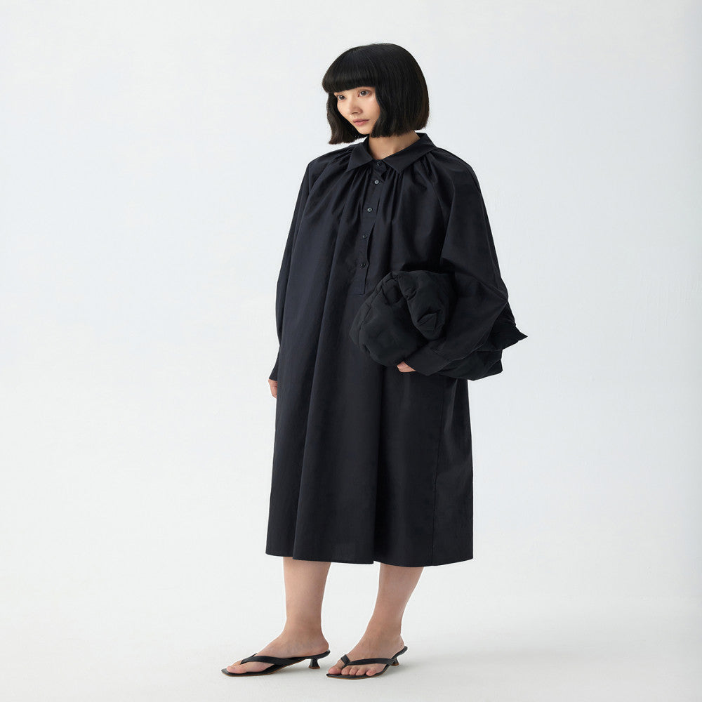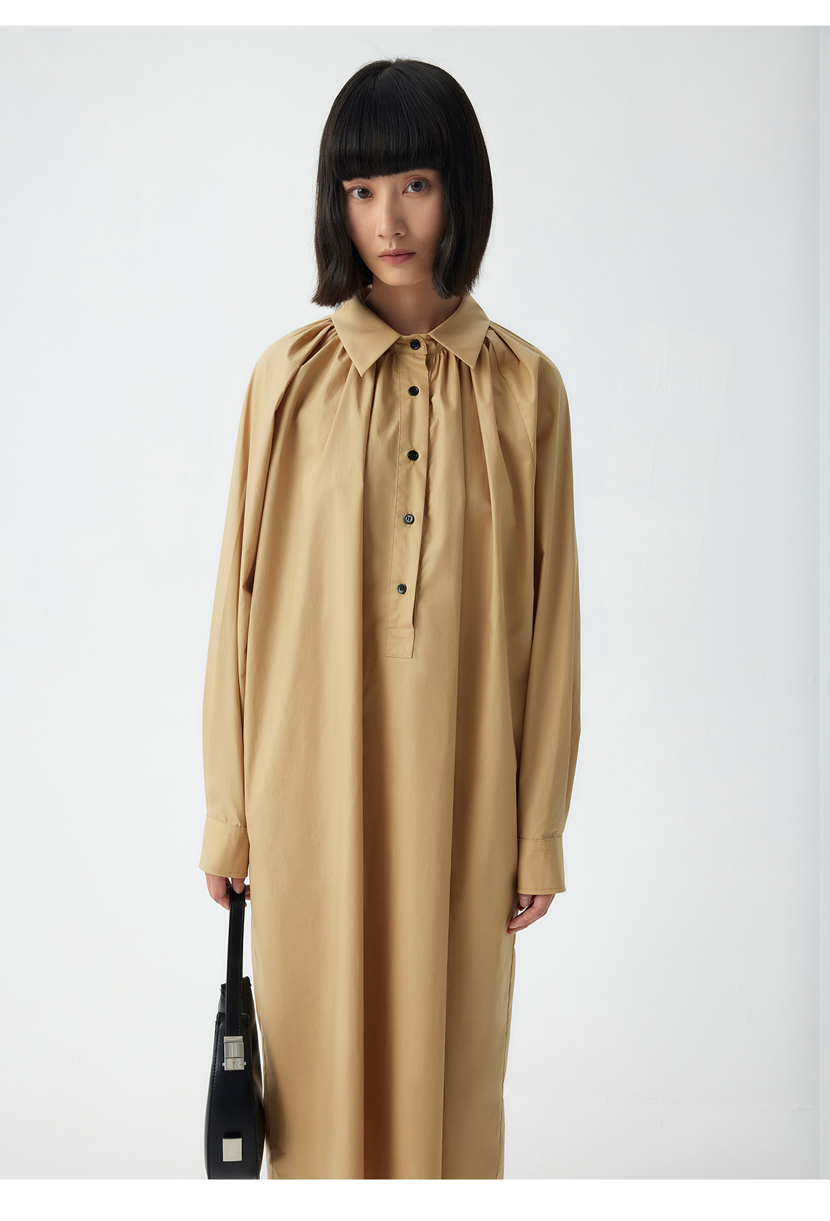 ASAYA2840 RANENE eco-friendly cotton simple pleated volume half placket shirt dress