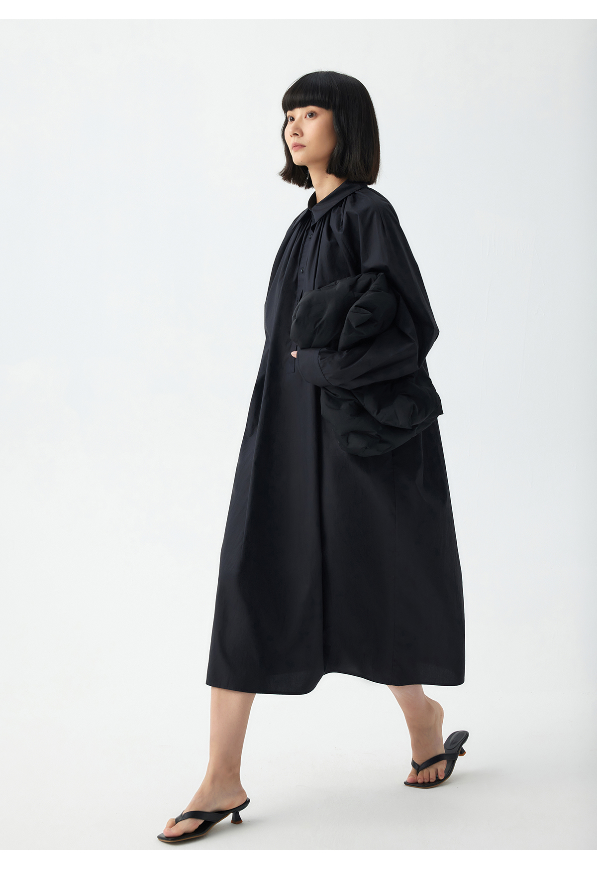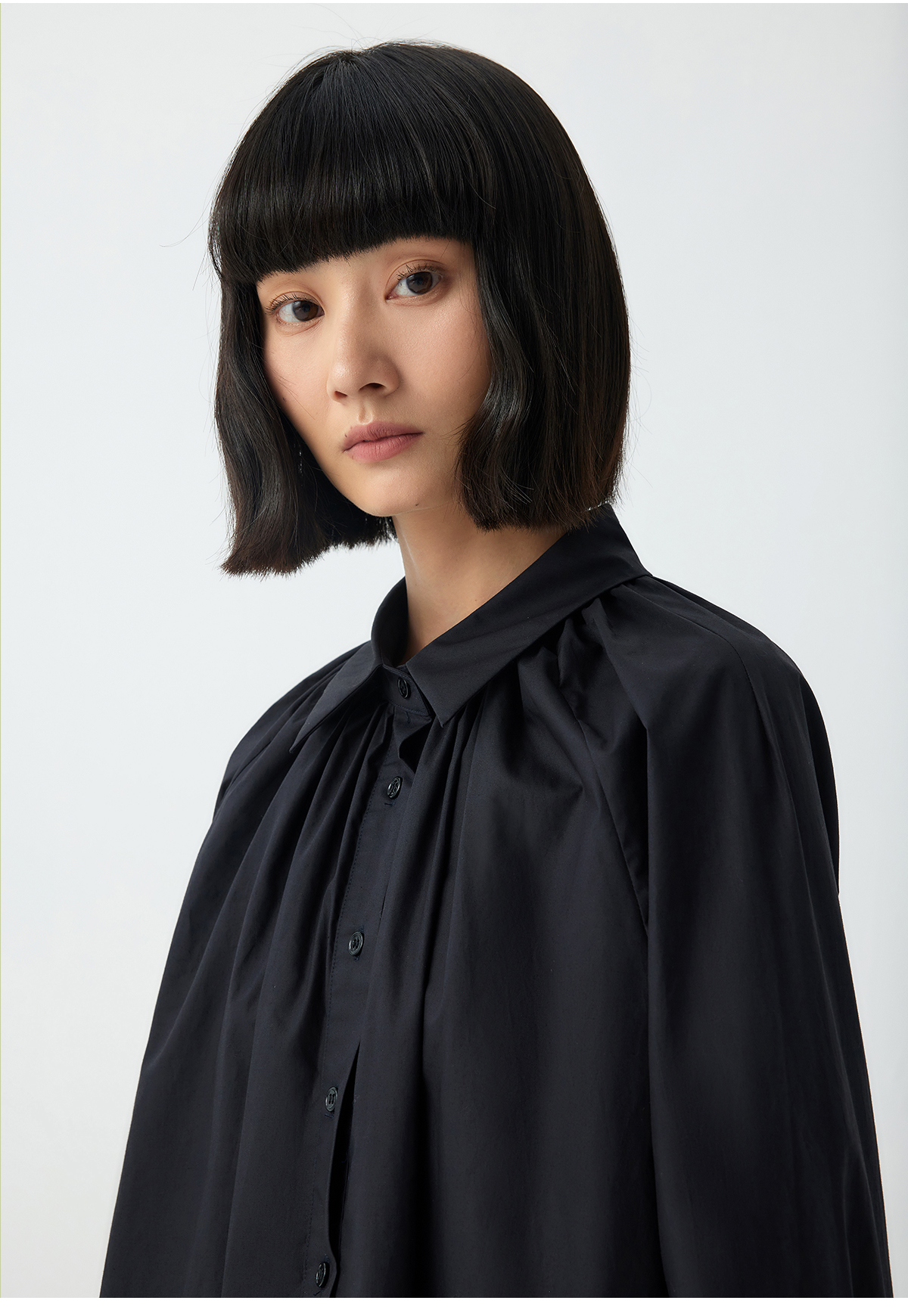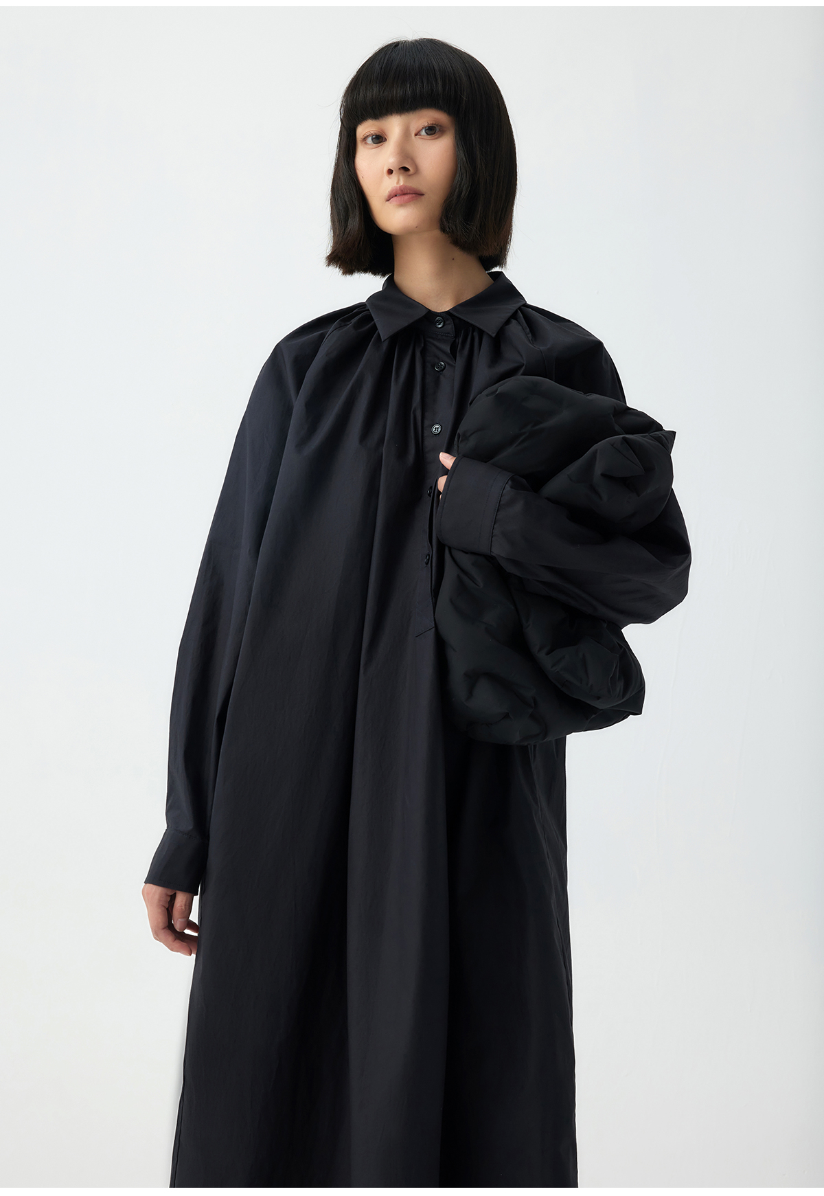 ASAYA2840 RANENE eco-friendly cotton simple pleated volume half placket shirt dress