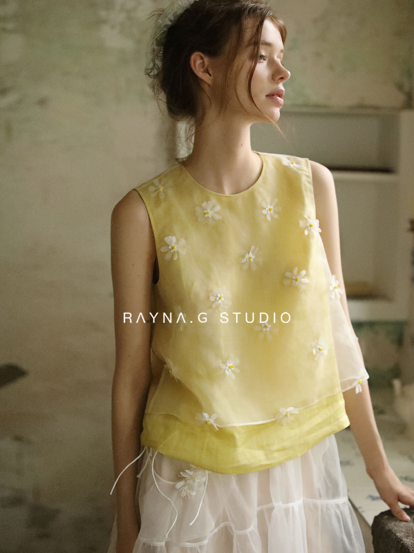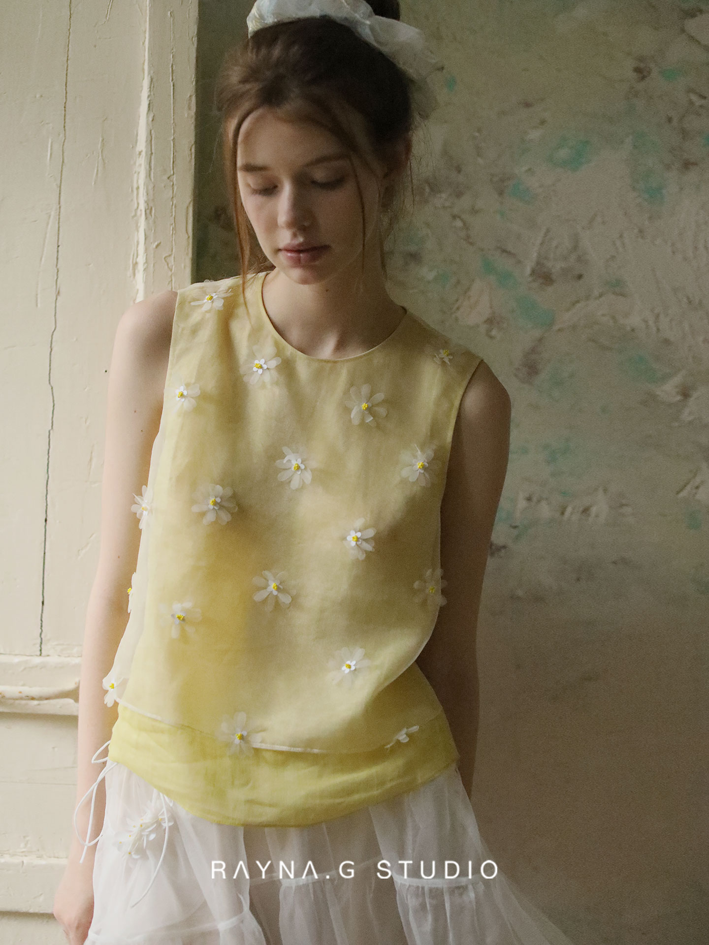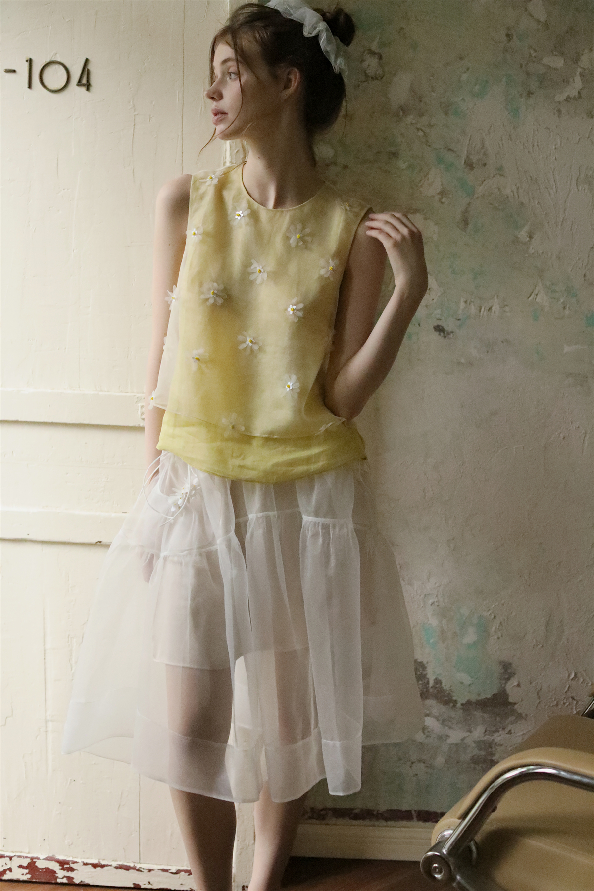 ASAYA4828 – Daisy Whisper Organza Top 🌼🍋