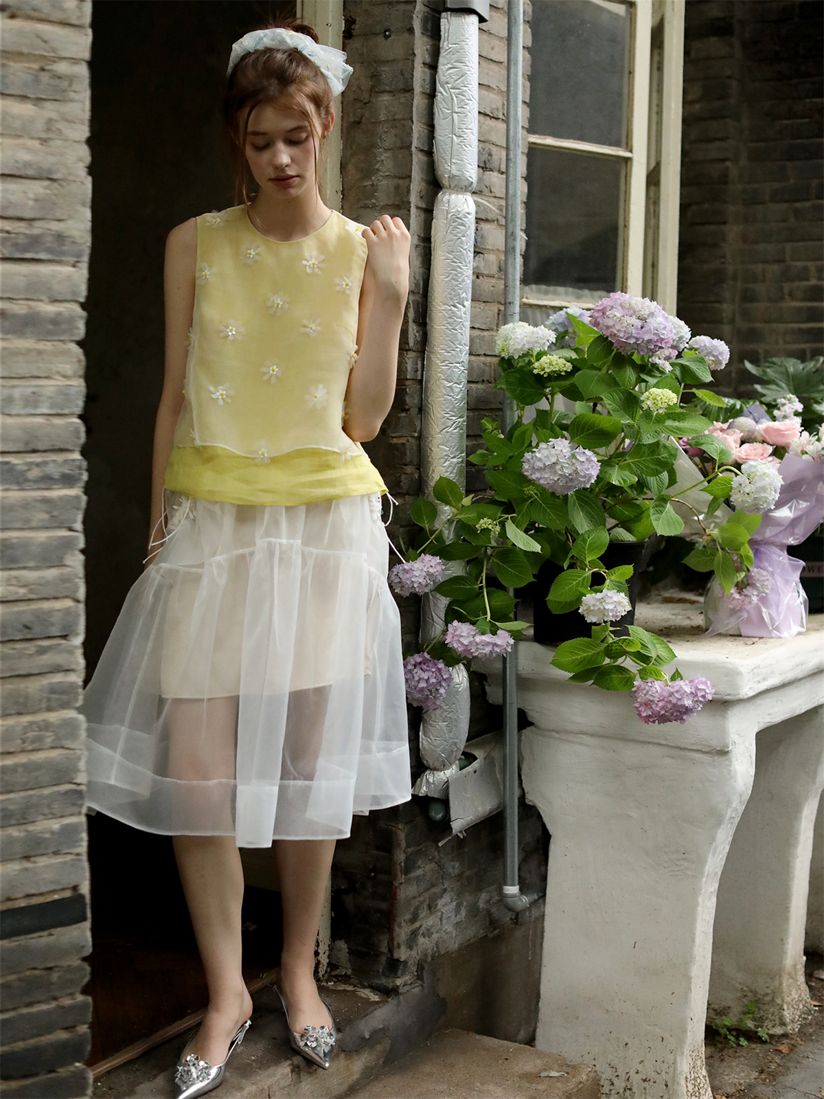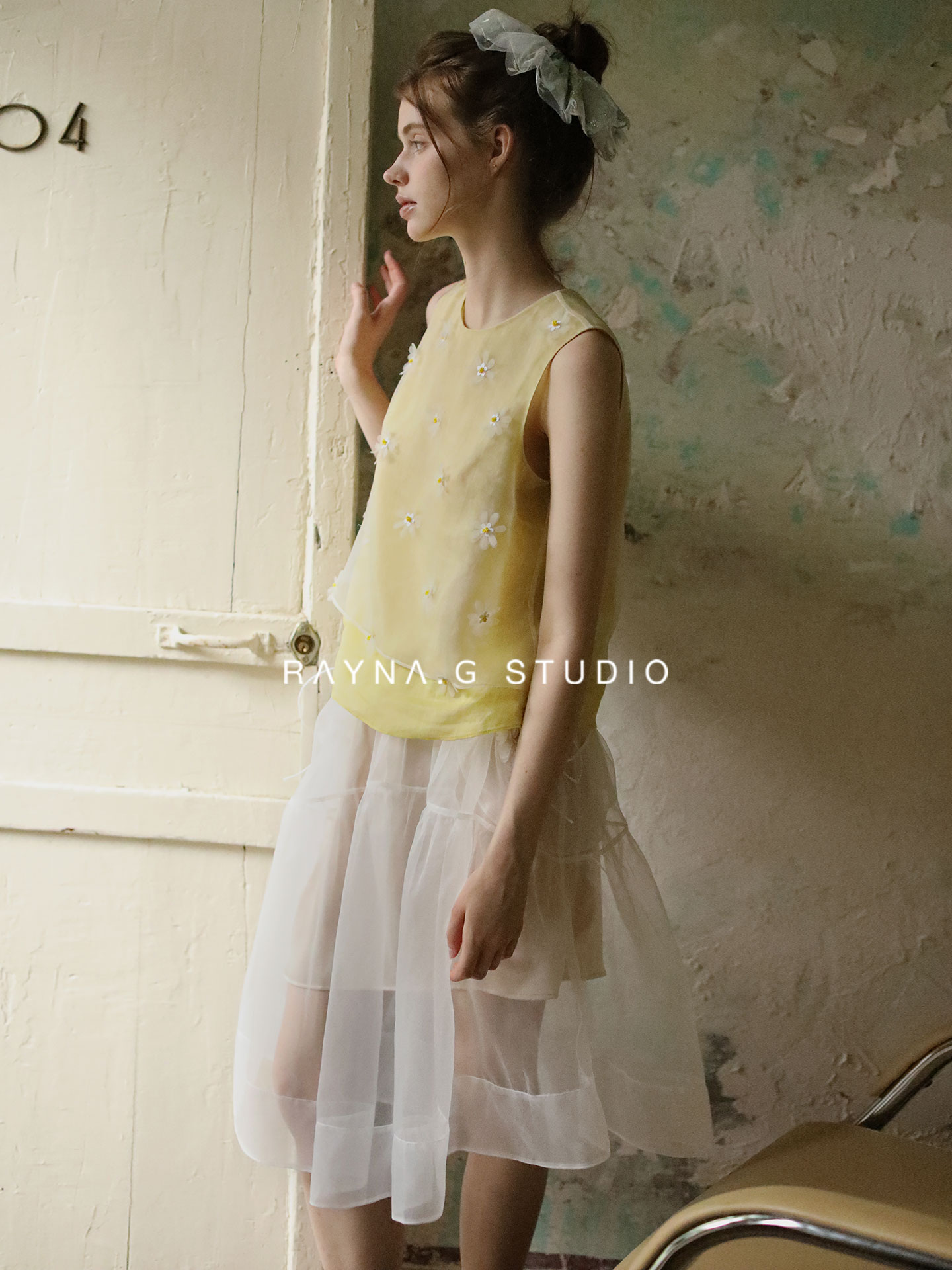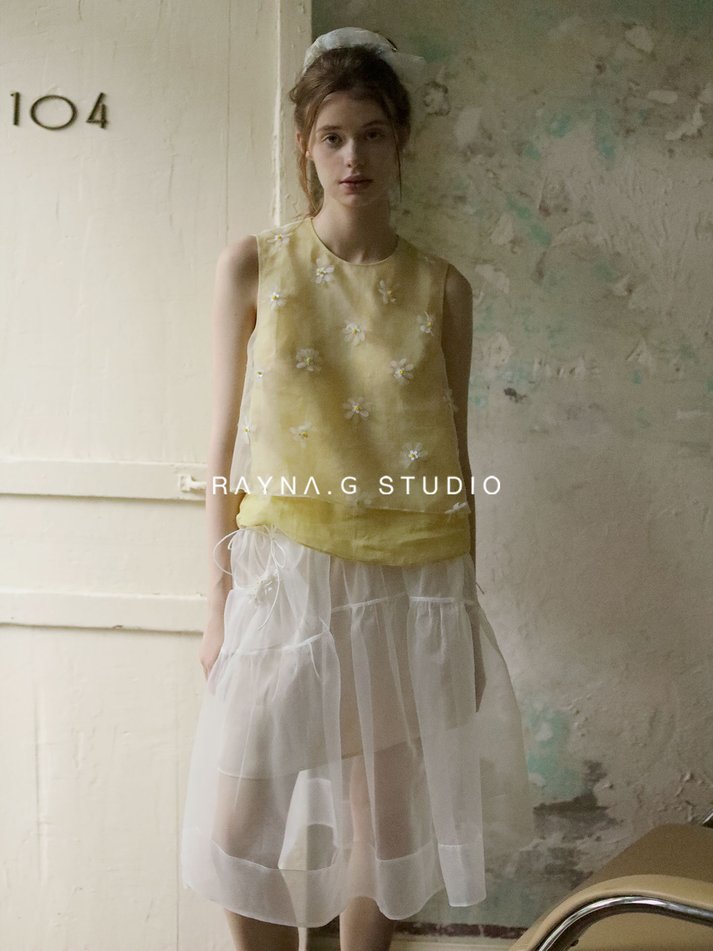 ASAYA4828 – Daisy Whisper Organza Top 🌼🍋