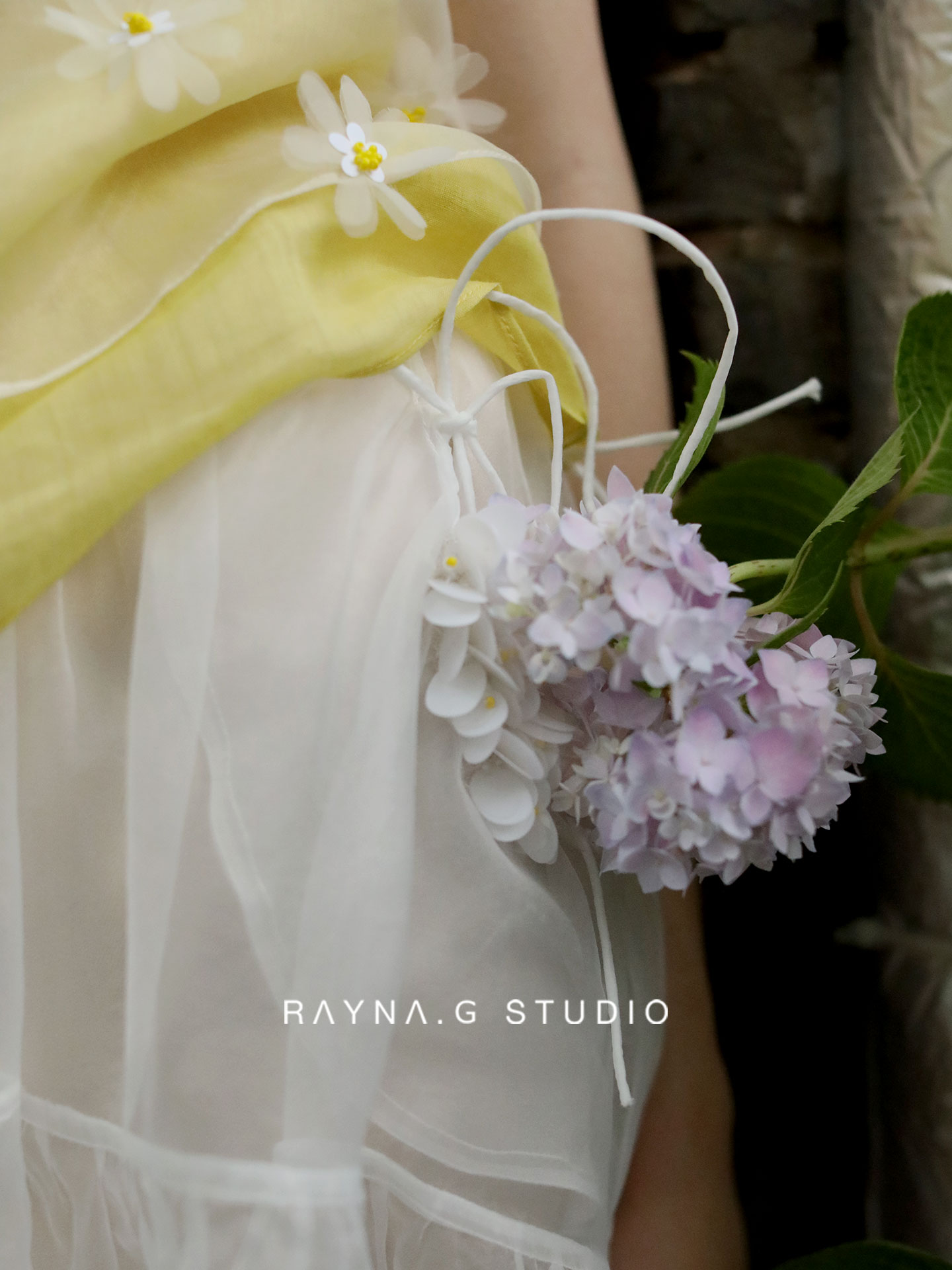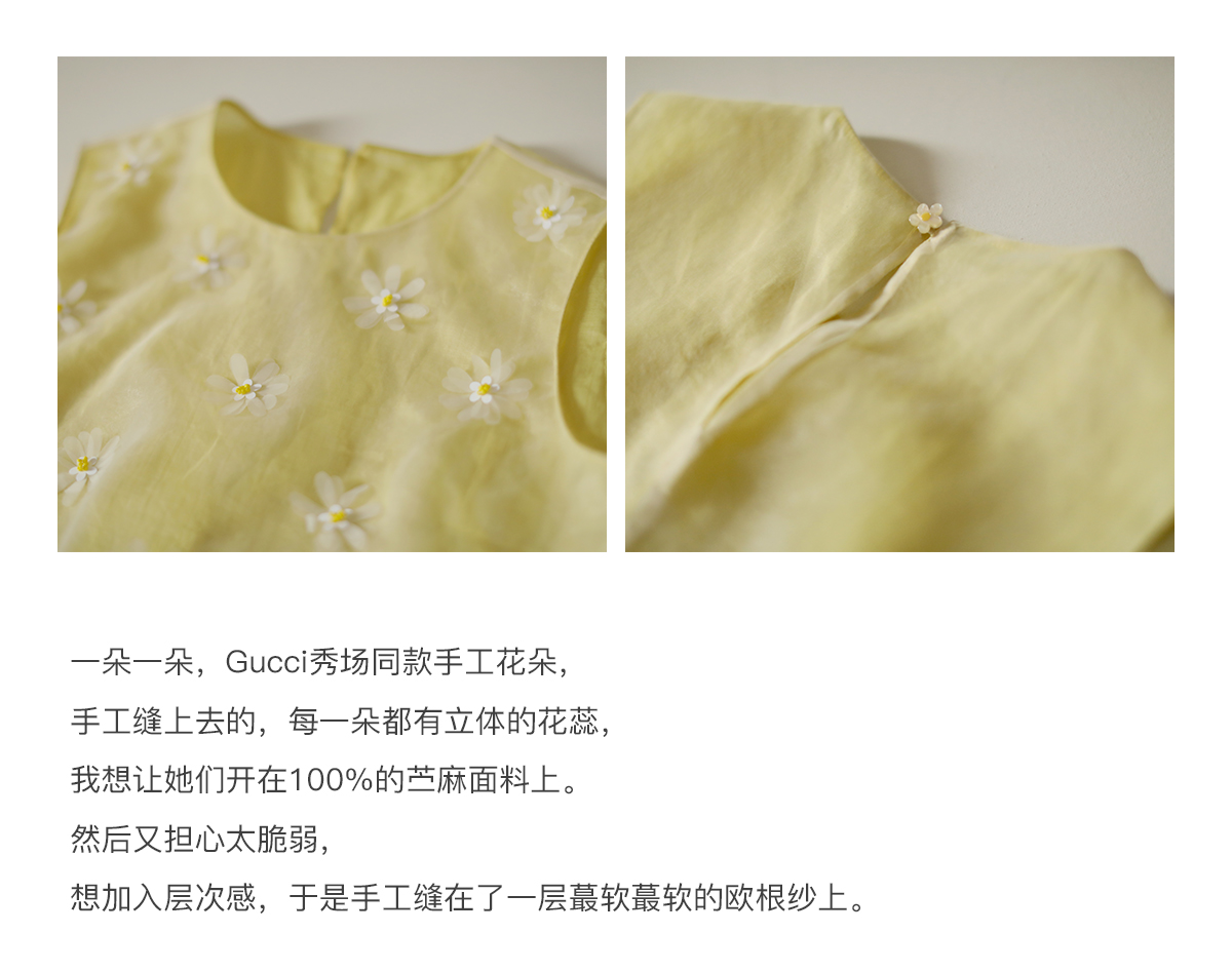 然后又担心太脆弱, 想加入层次感,于是手工缝在了一层蕞软蕞软的欧根纱上。