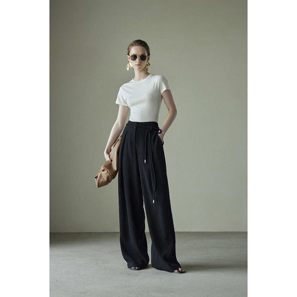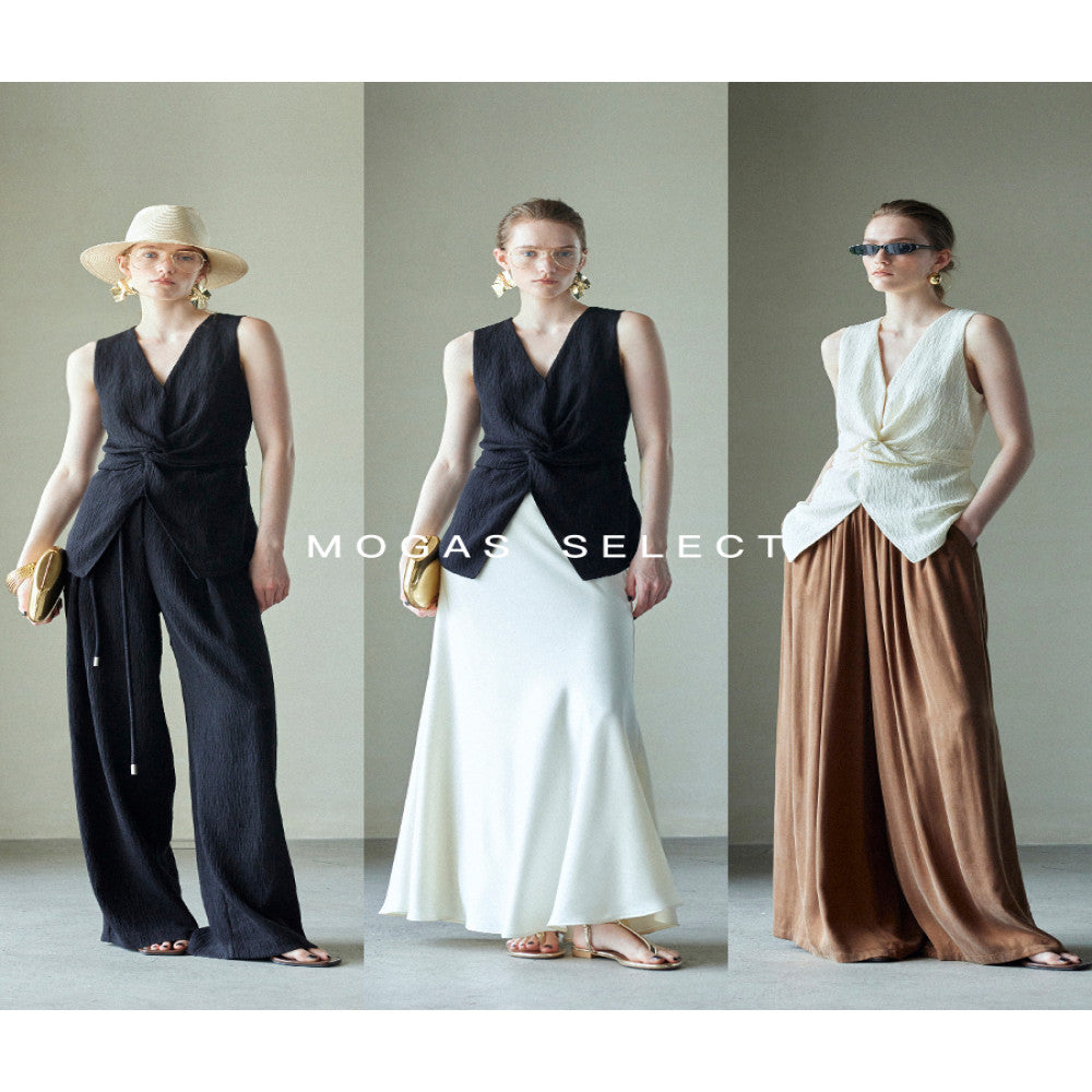ASAYA3496 "Beauty Wrinkle" Sleeveless V-Neck Twist Vest and Matching Pants (Sold Seperately / Two Colors)