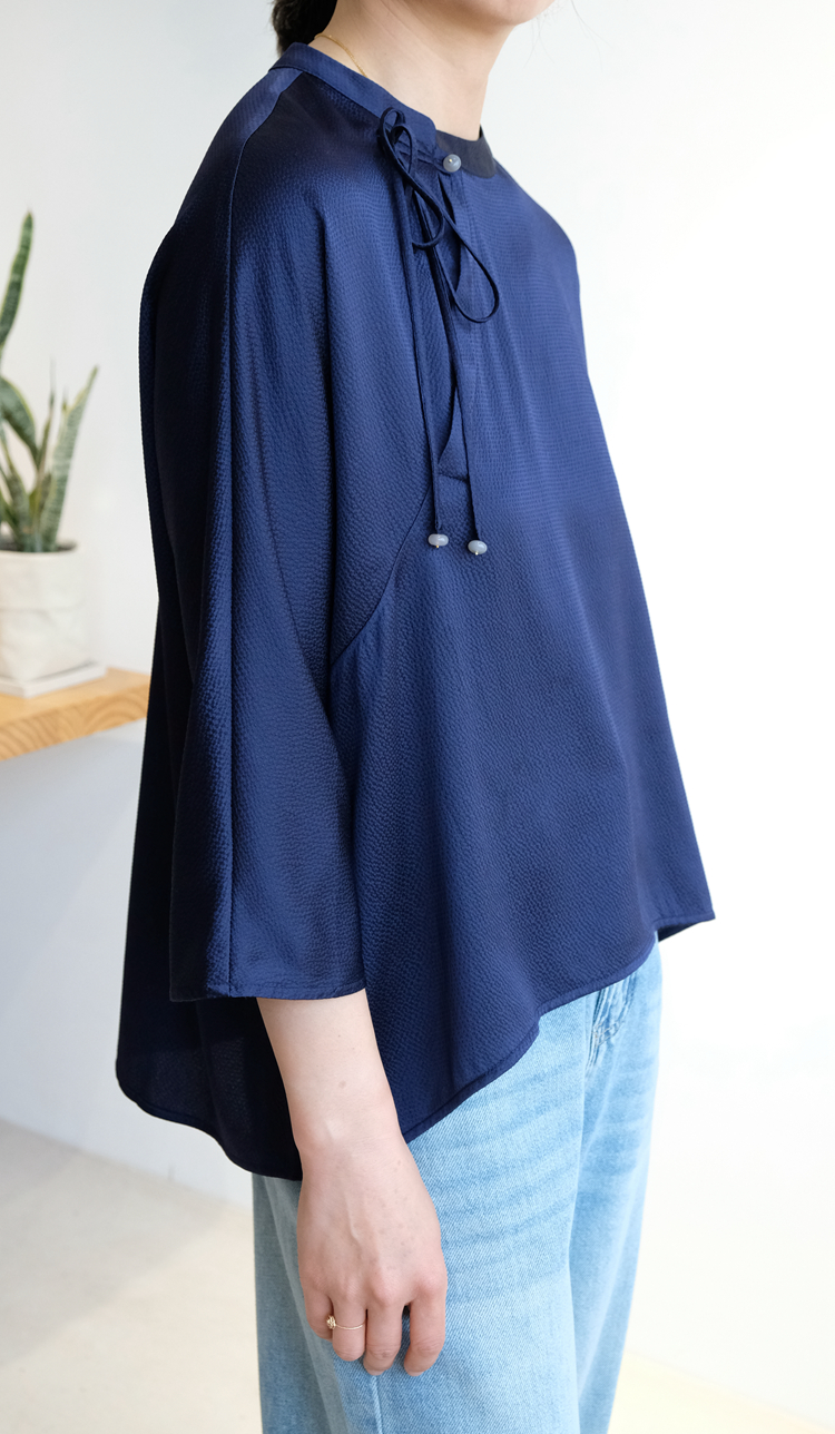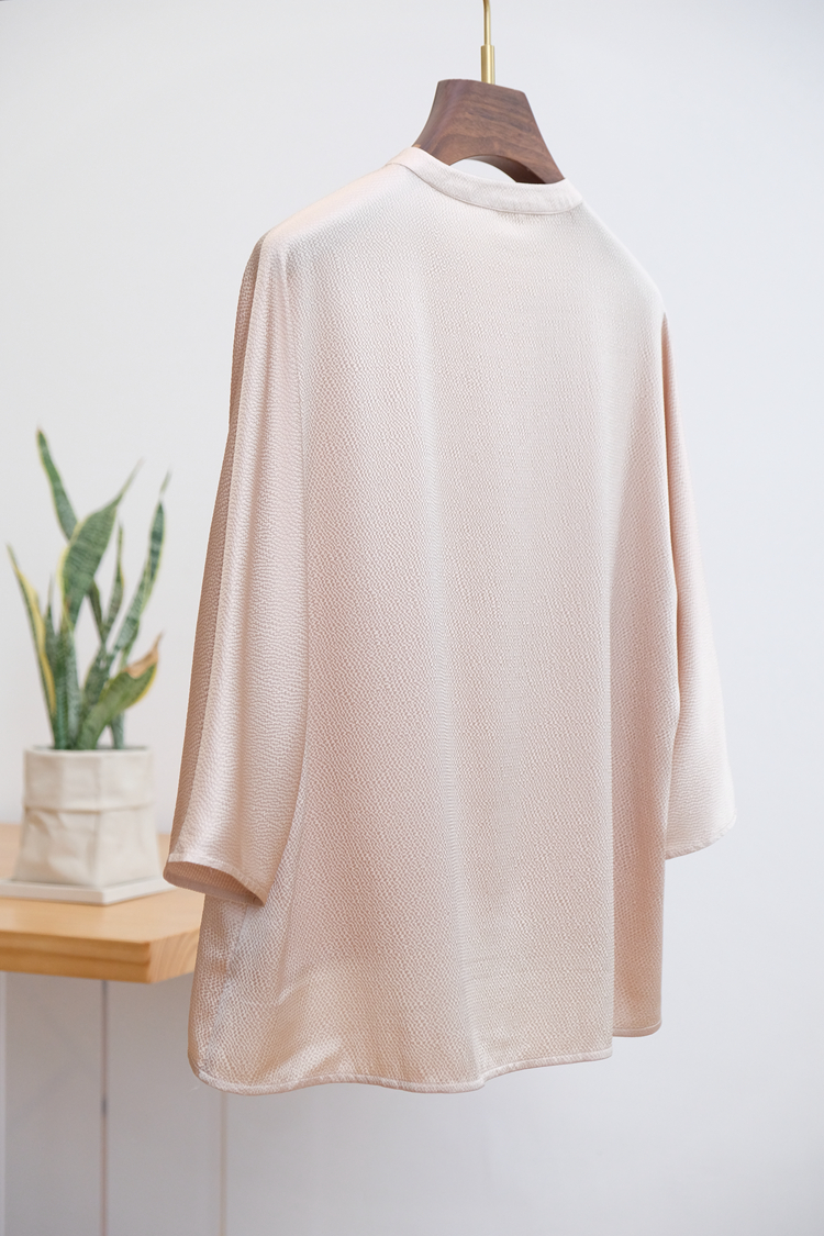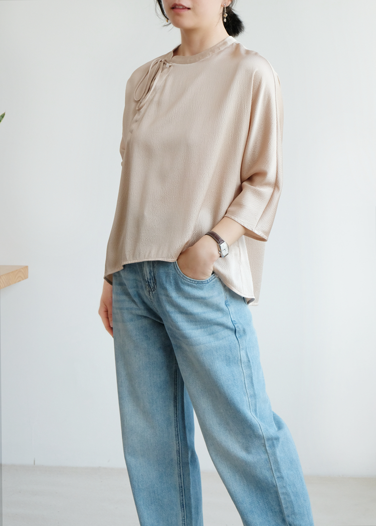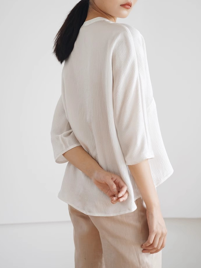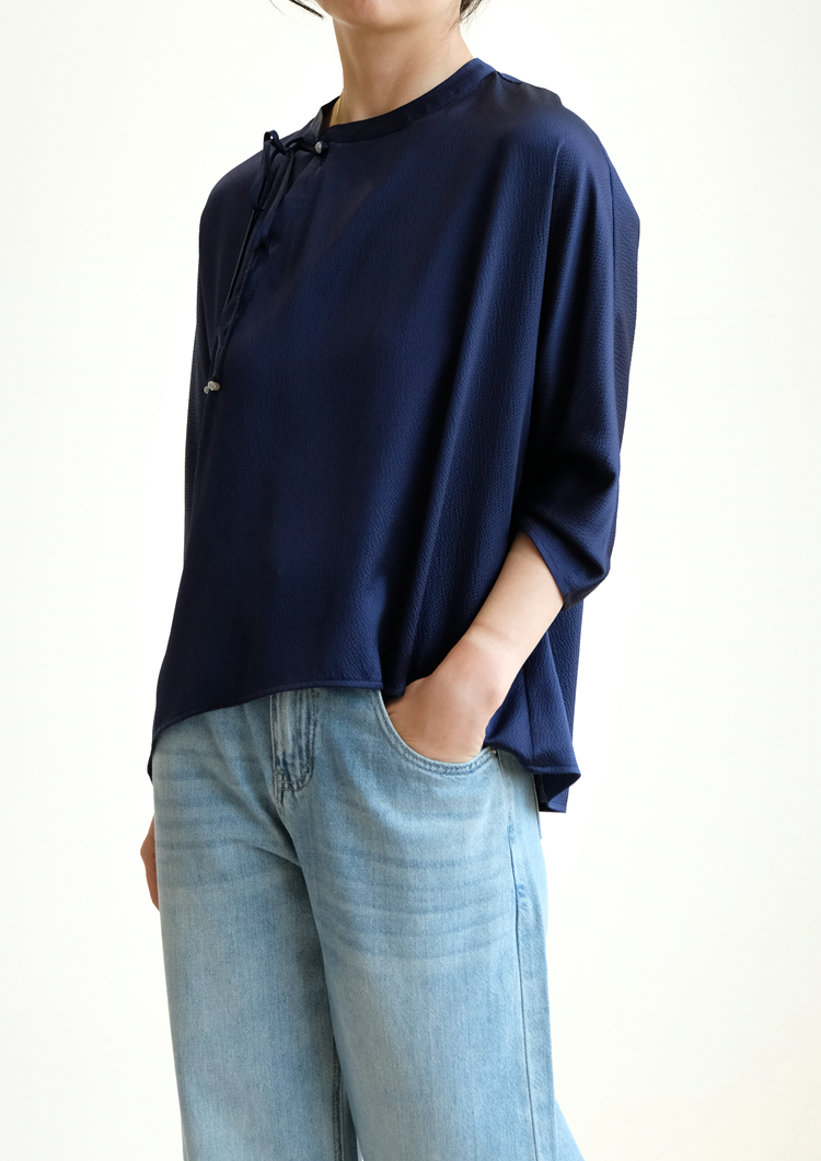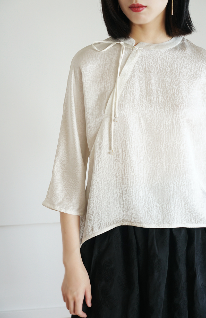 Asaya1375 - IVYKIN small dragon pattern jacquard silk one-piece sleeve pullover top loose round neck tie women