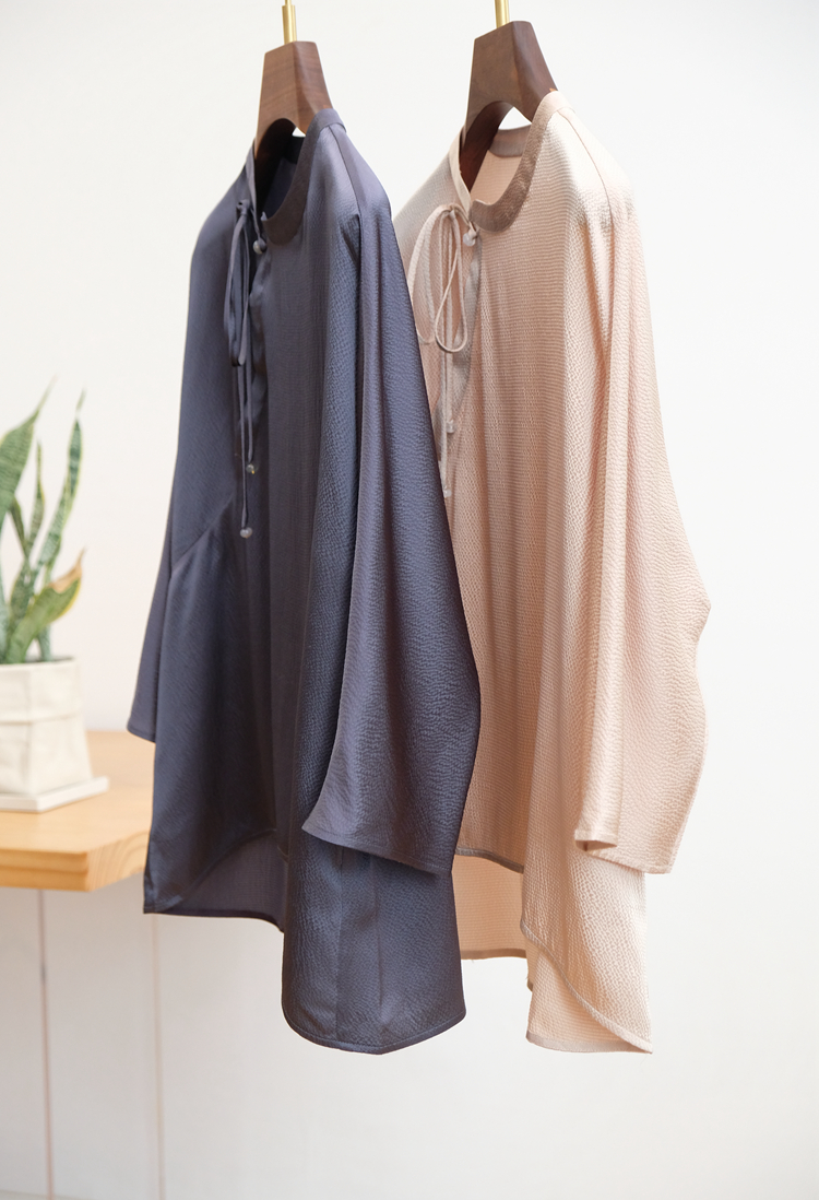 正身与袖子一片式相连 中式斜襟设计(可打开)