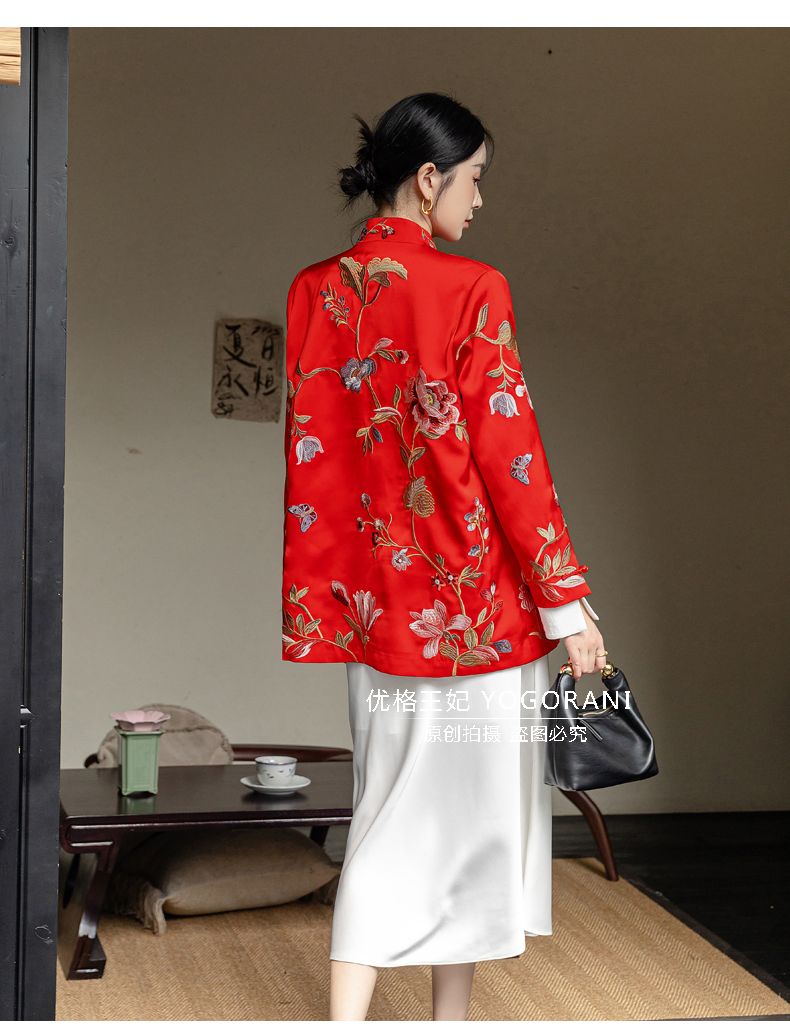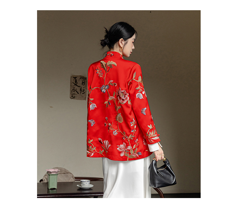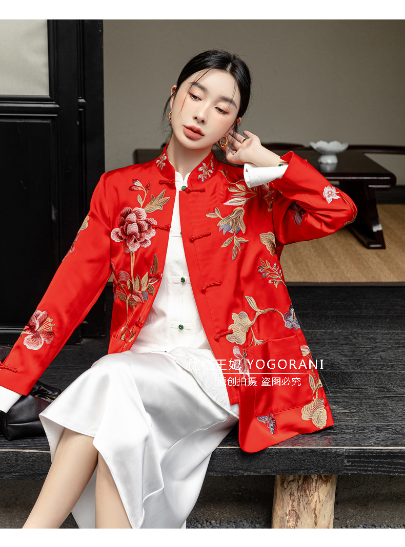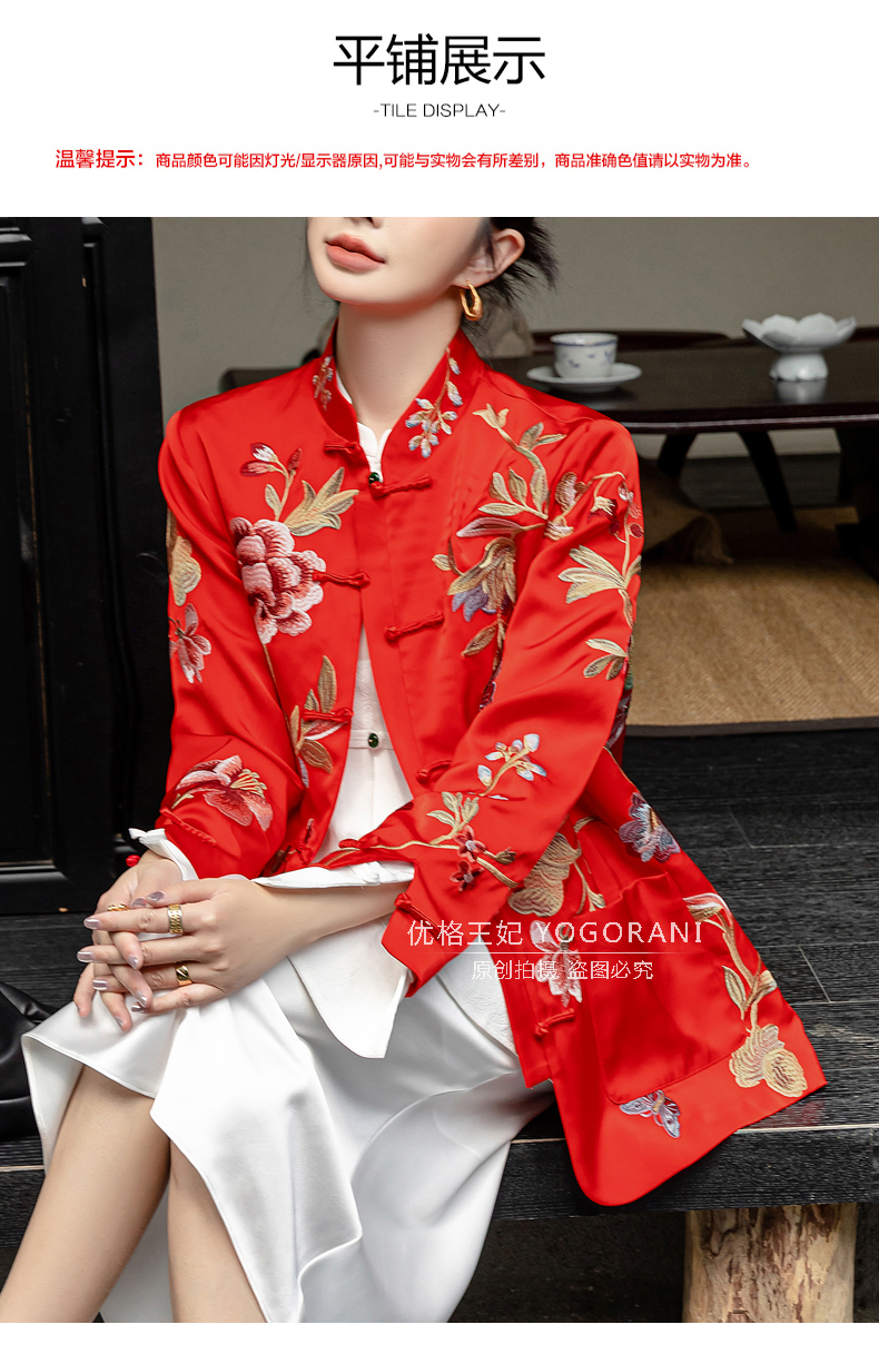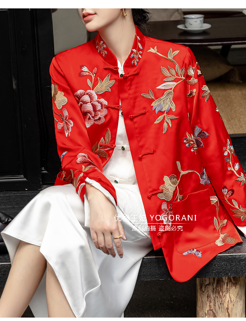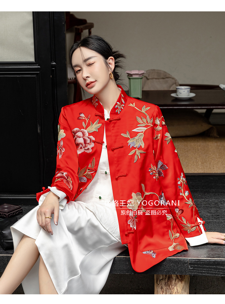 ASAYA2649 Red high-end new Chinese style disc button acetate jacket