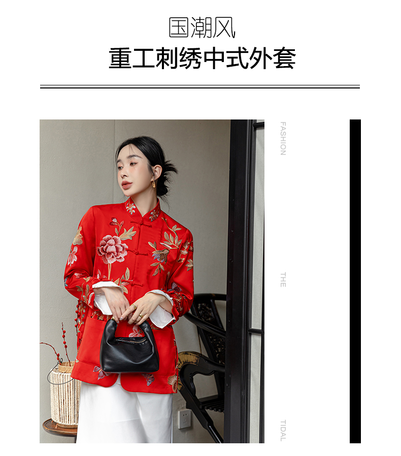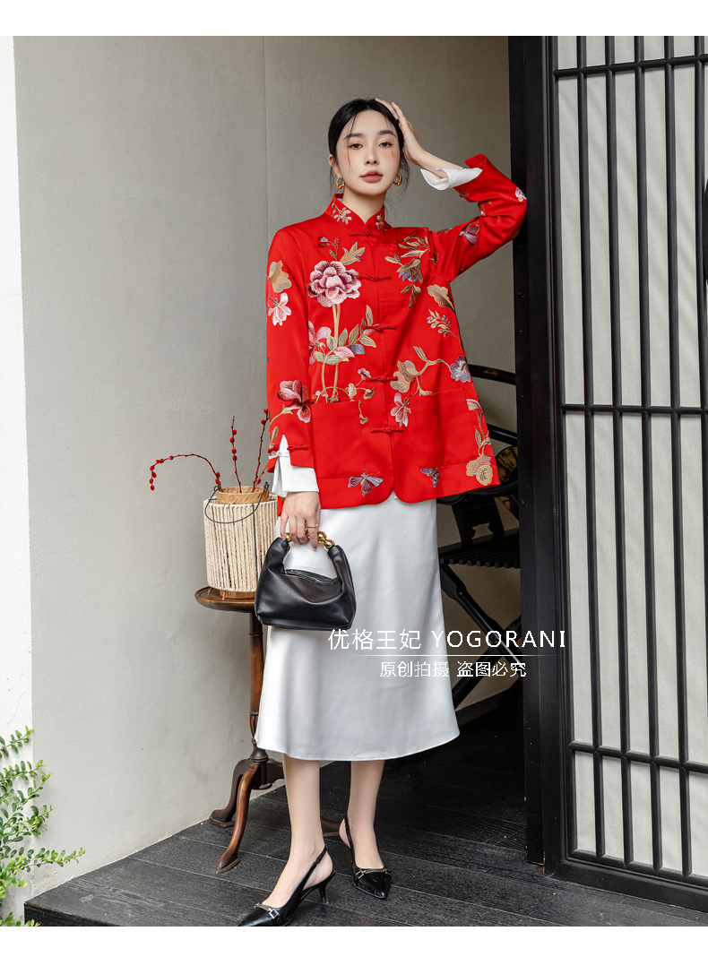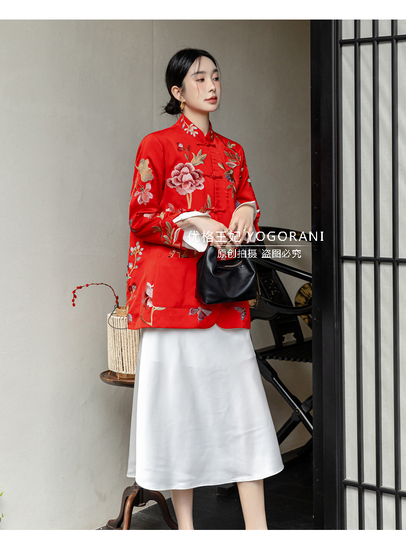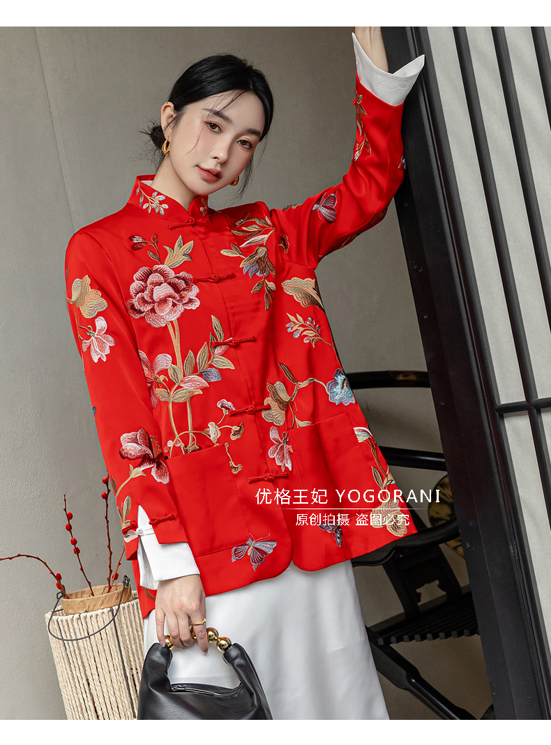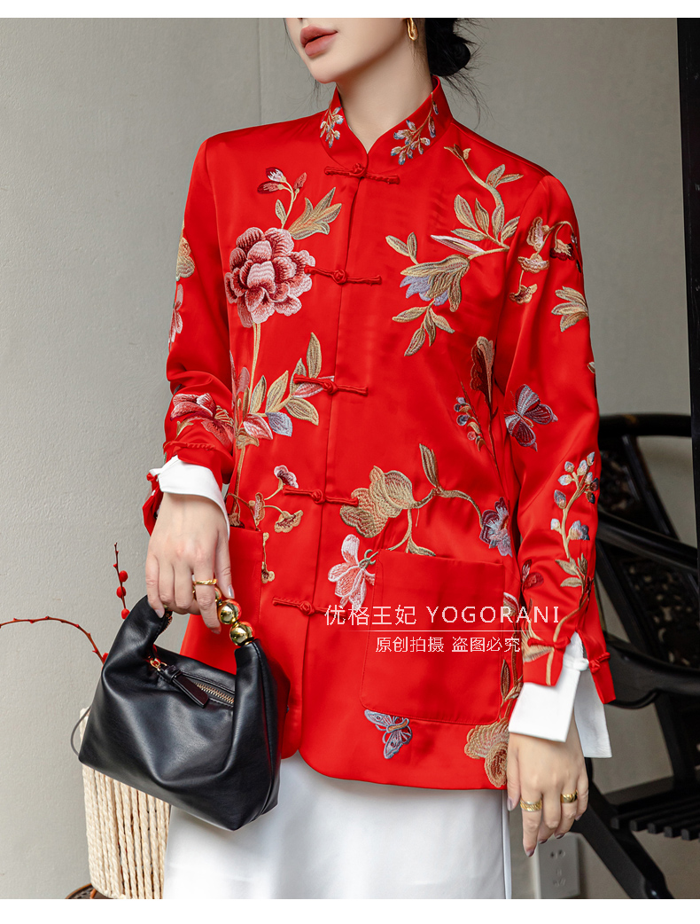 ASAYA2649 Red high-end new Chinese style disc button acetate jacket