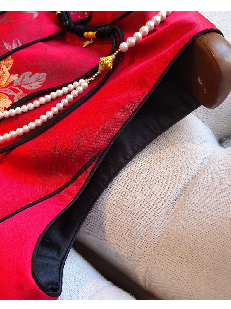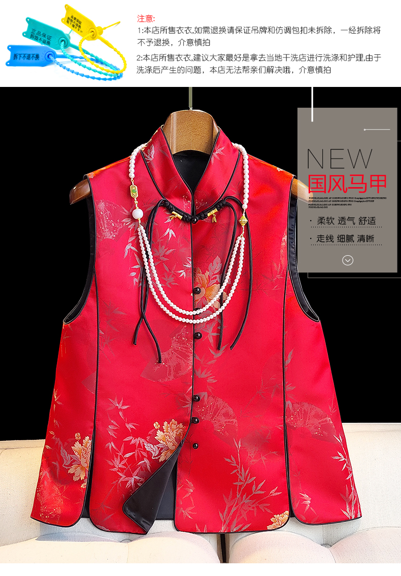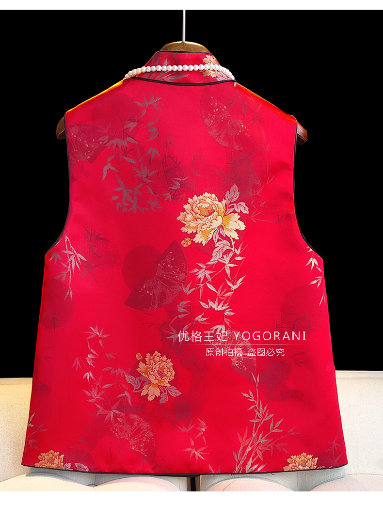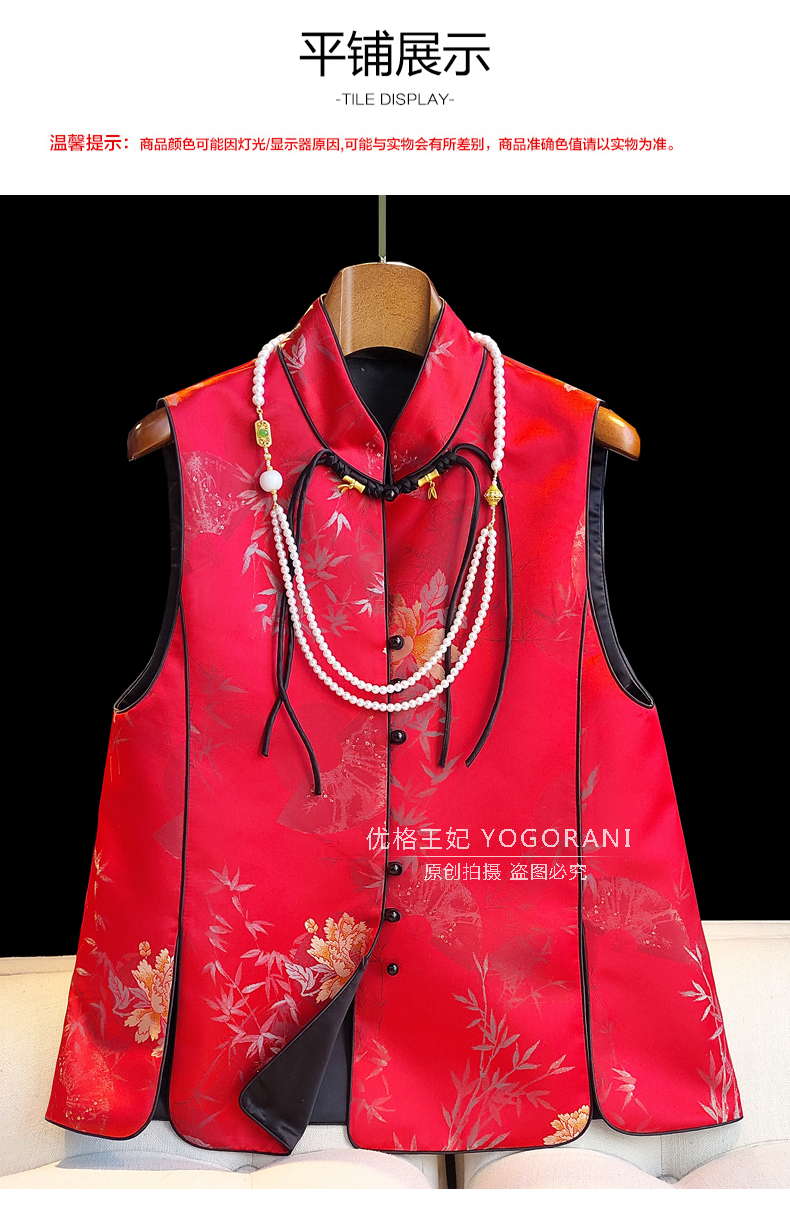 ASAYA2731 Red vintage jacquard brocade Chinese style vest