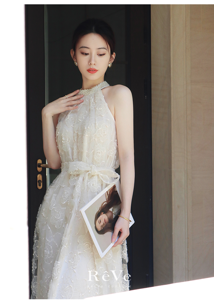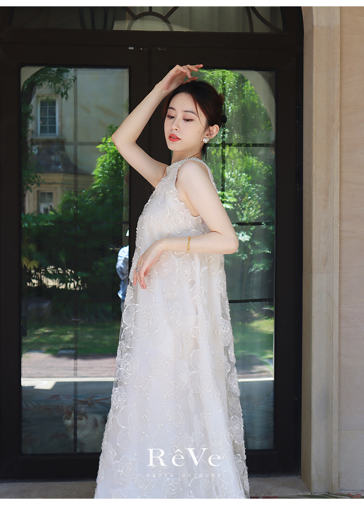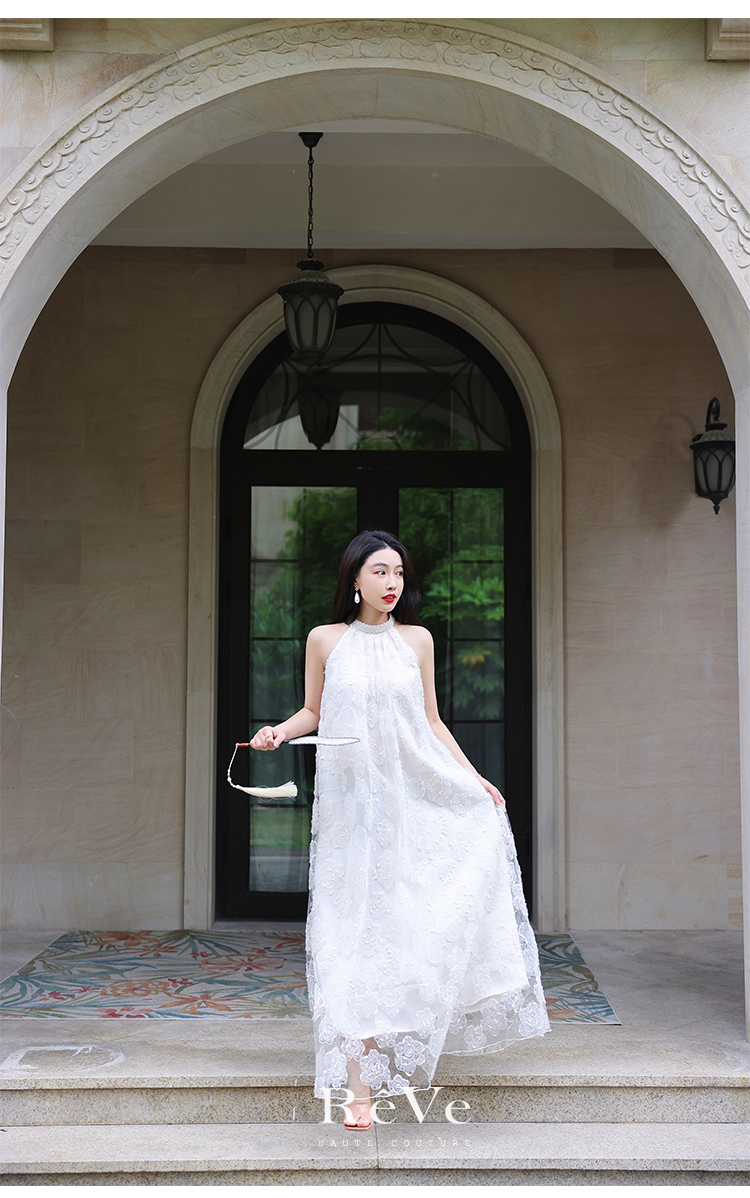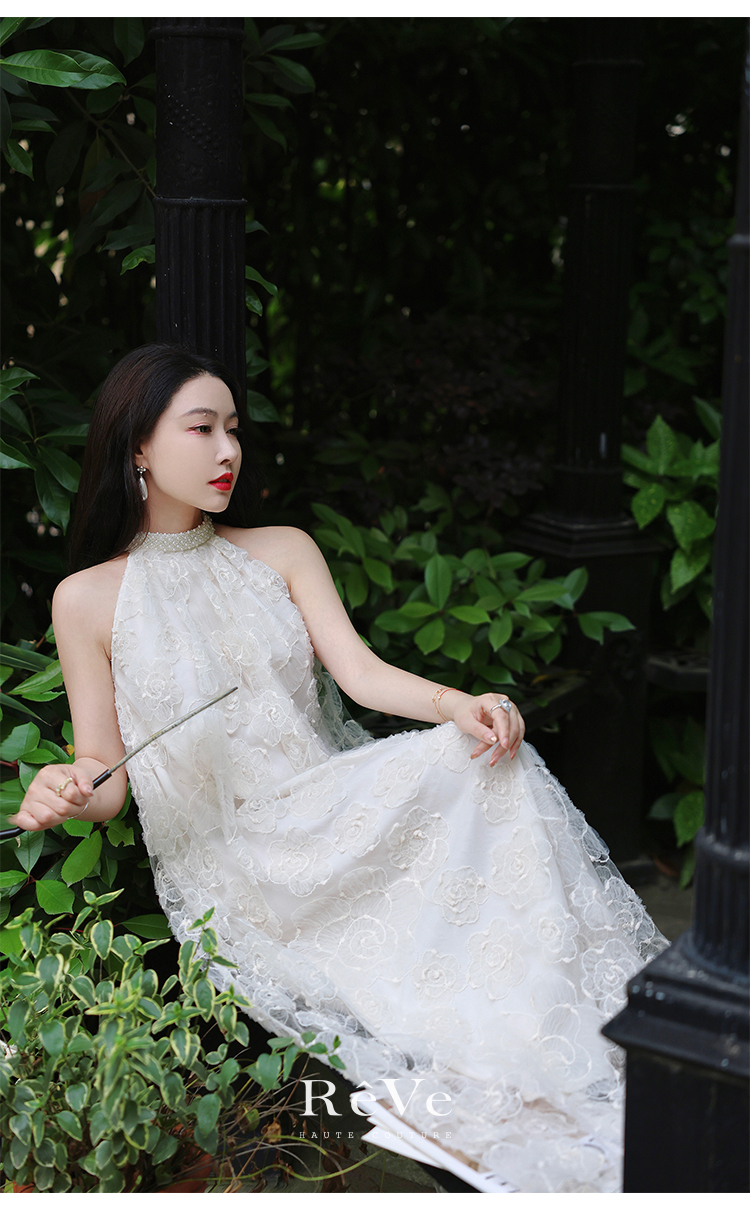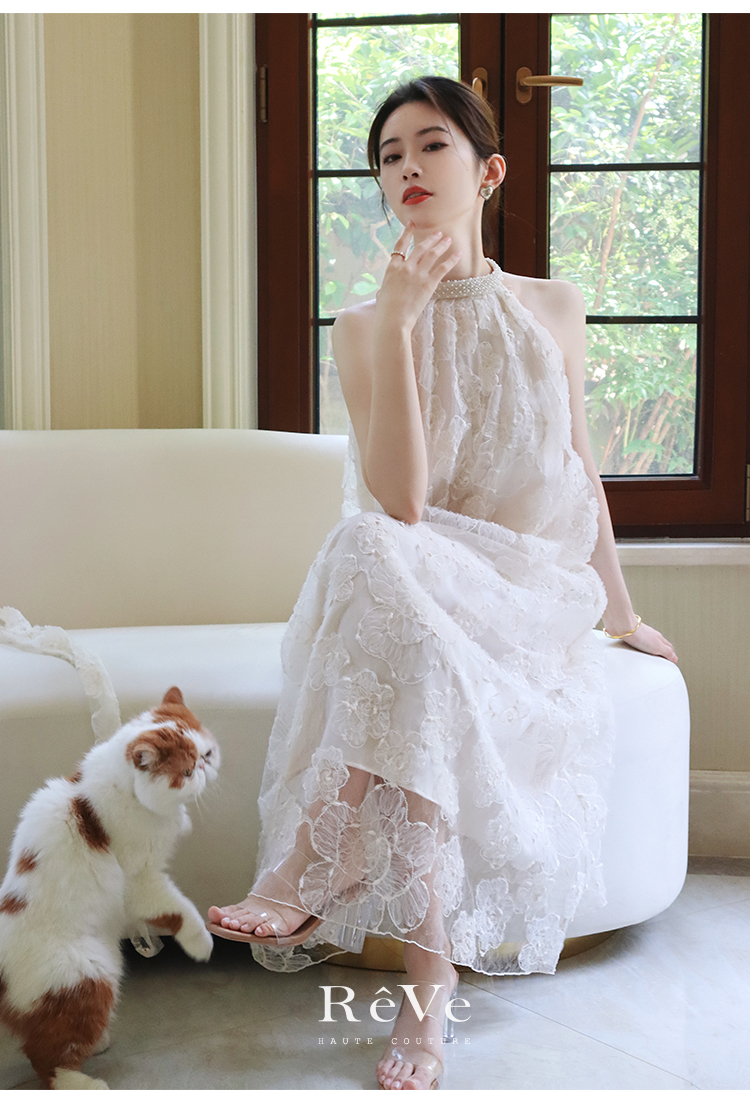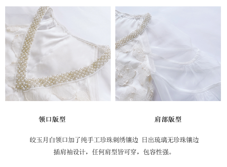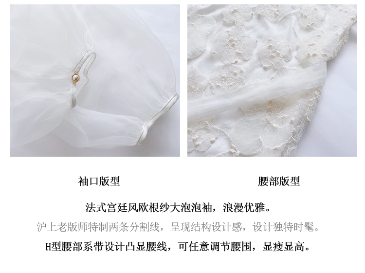ASAYA2917 Niche luxury high-end design white French puff sleeve dress