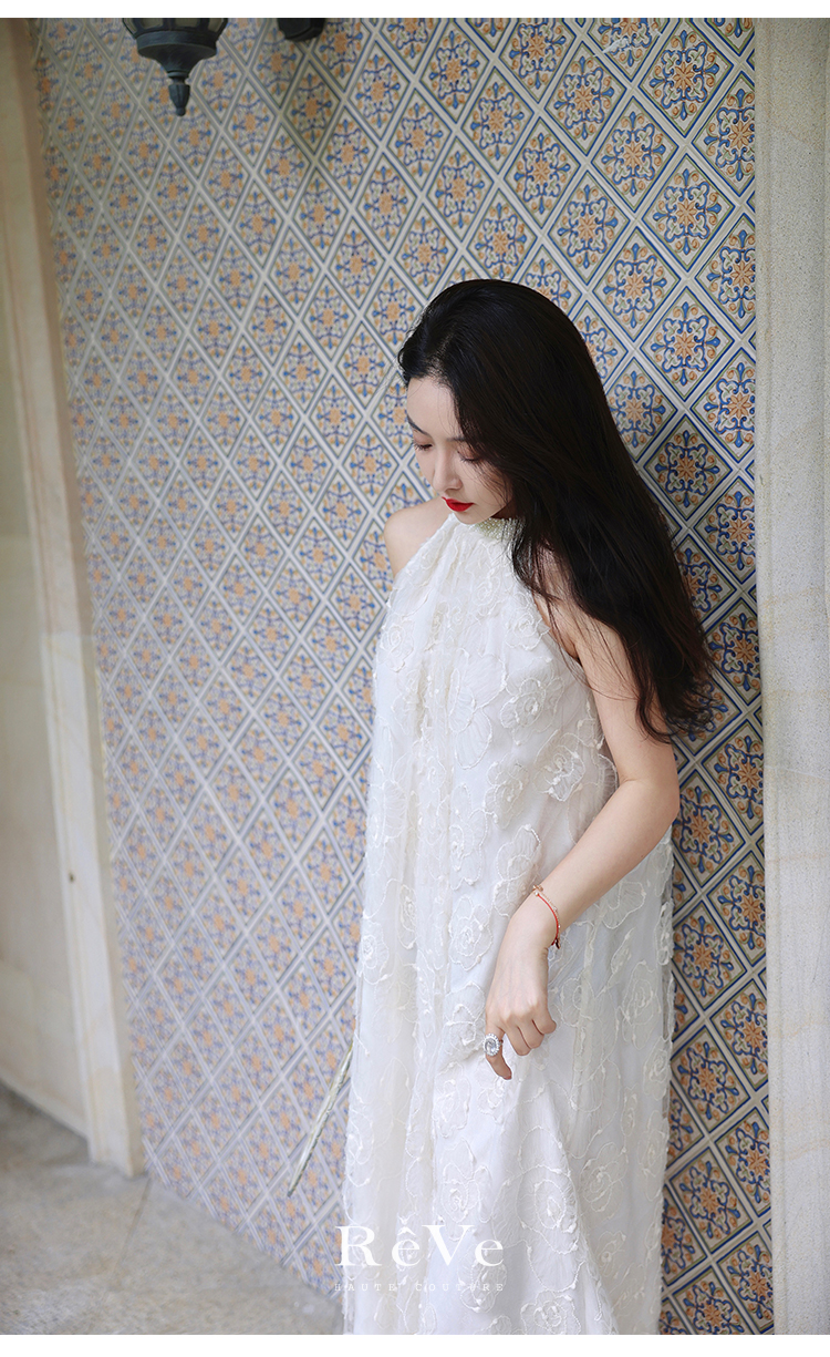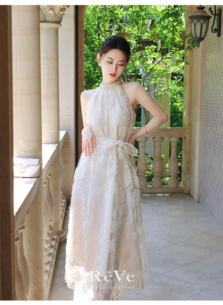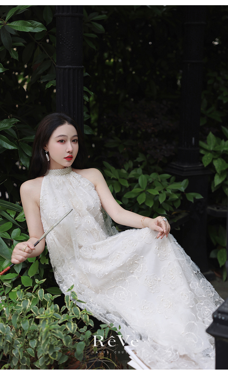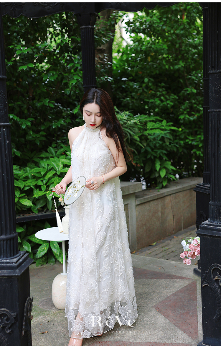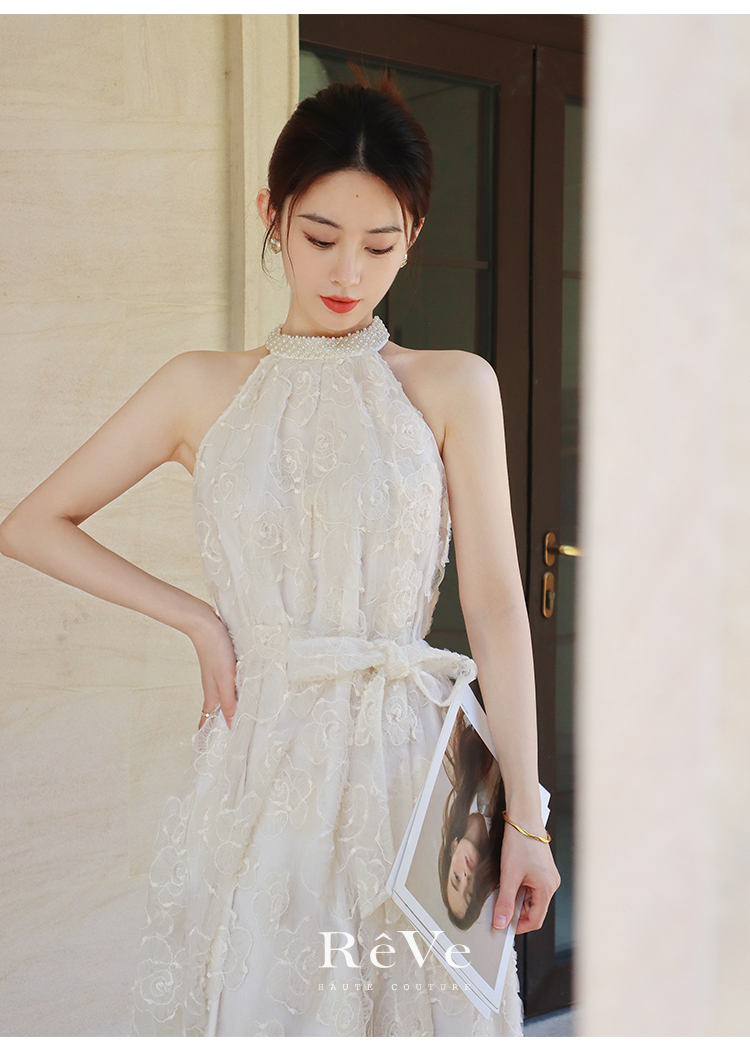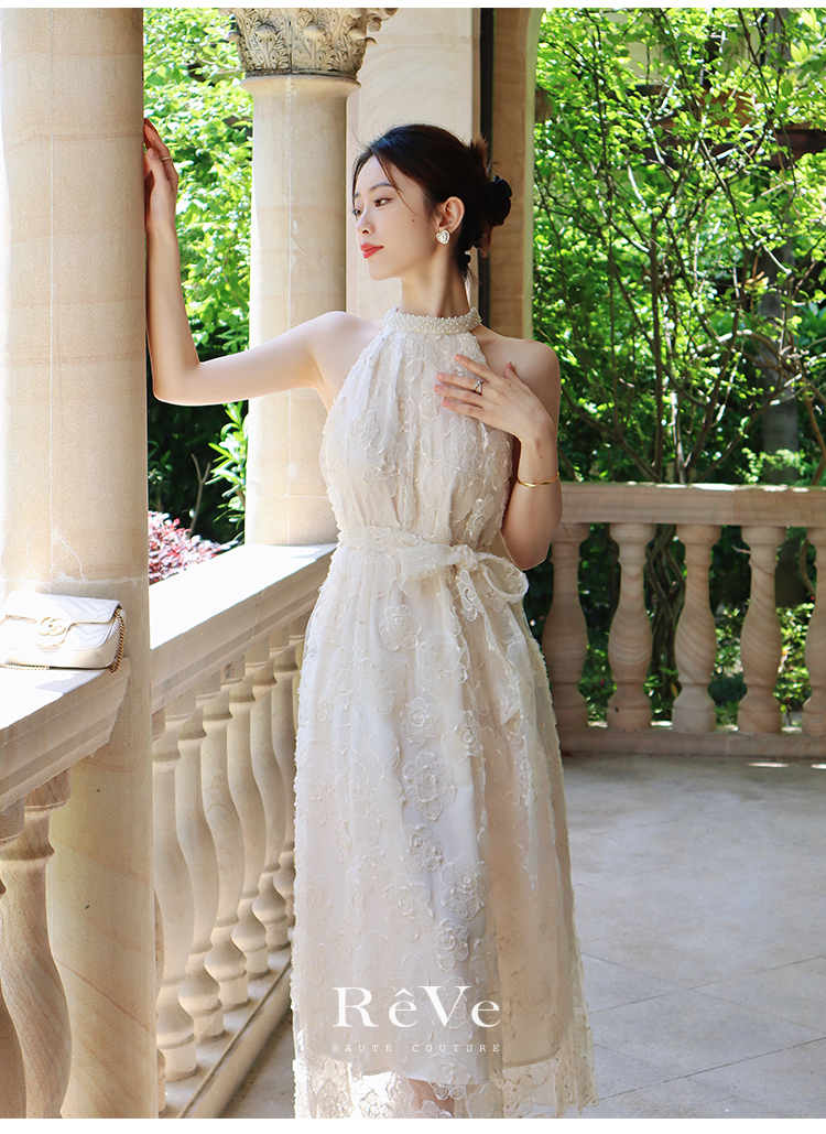 ASAYA2917 Niche luxury high-end design white French puff sleeve dress