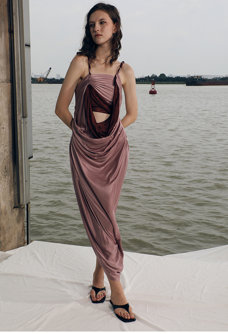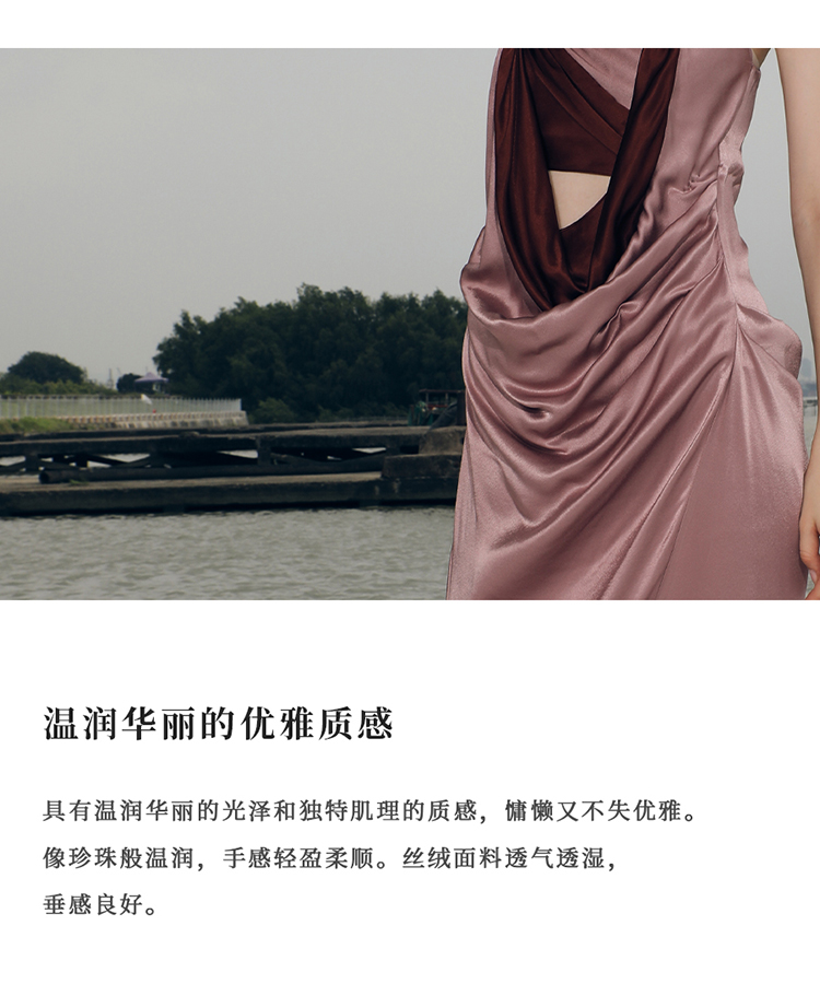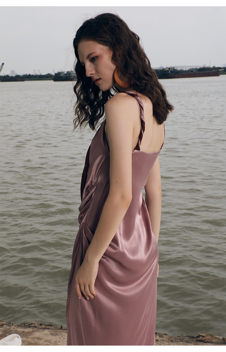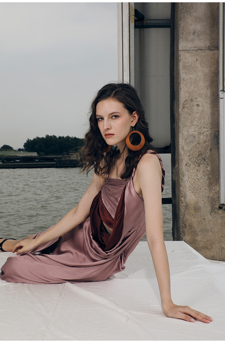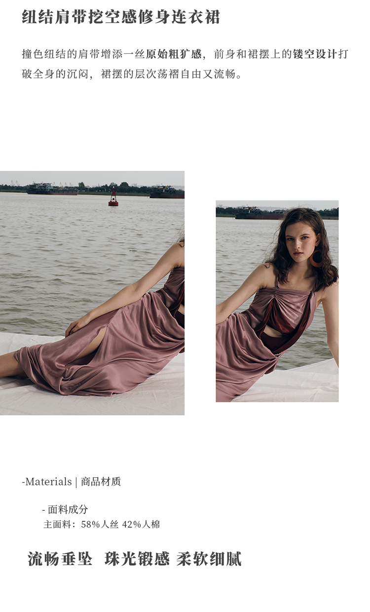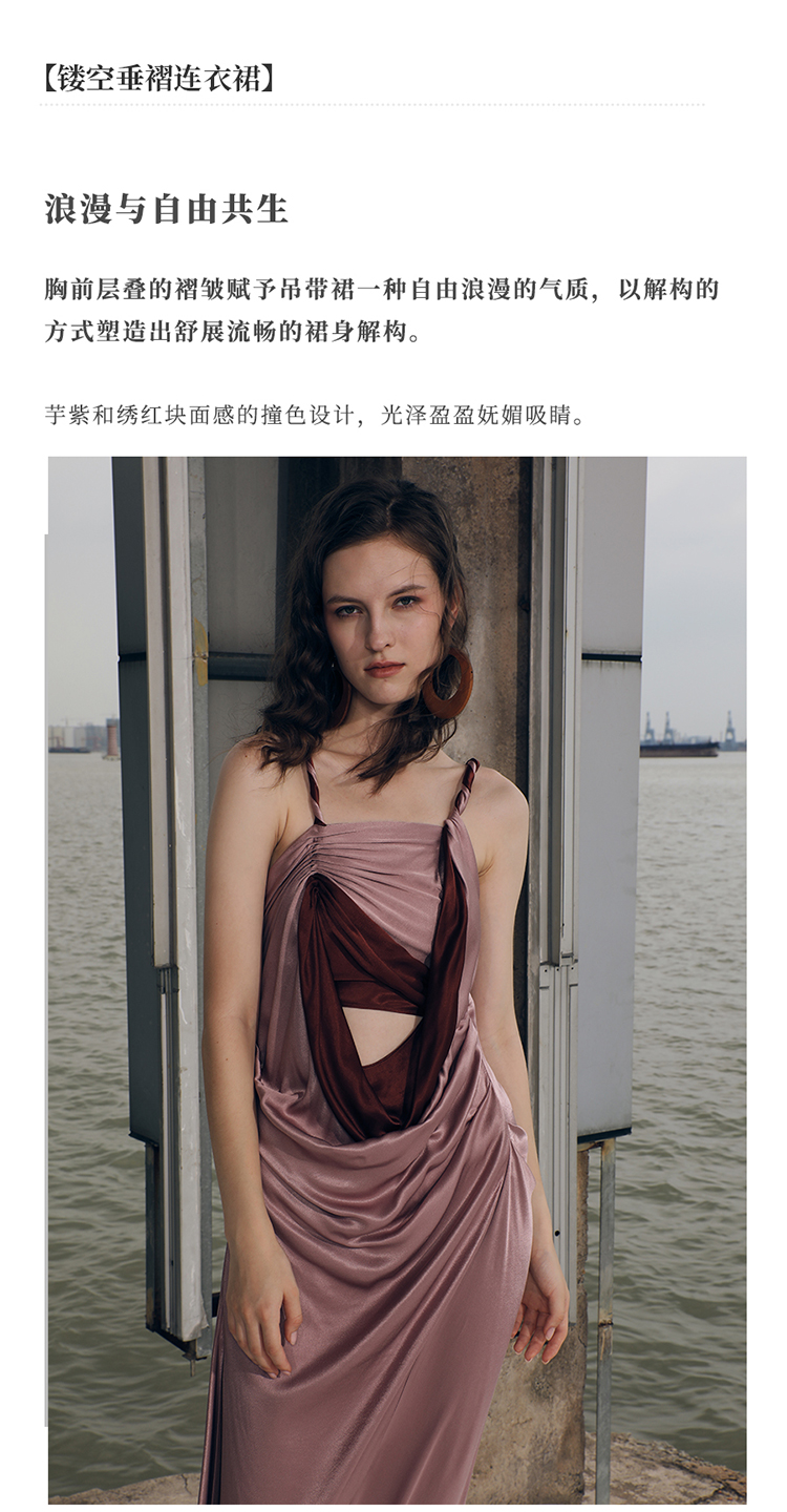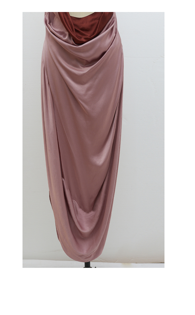 Asaya823 - RIMLESS borderless gentle satin hollow out color blocked irregular pleated suspender dress niche original design
