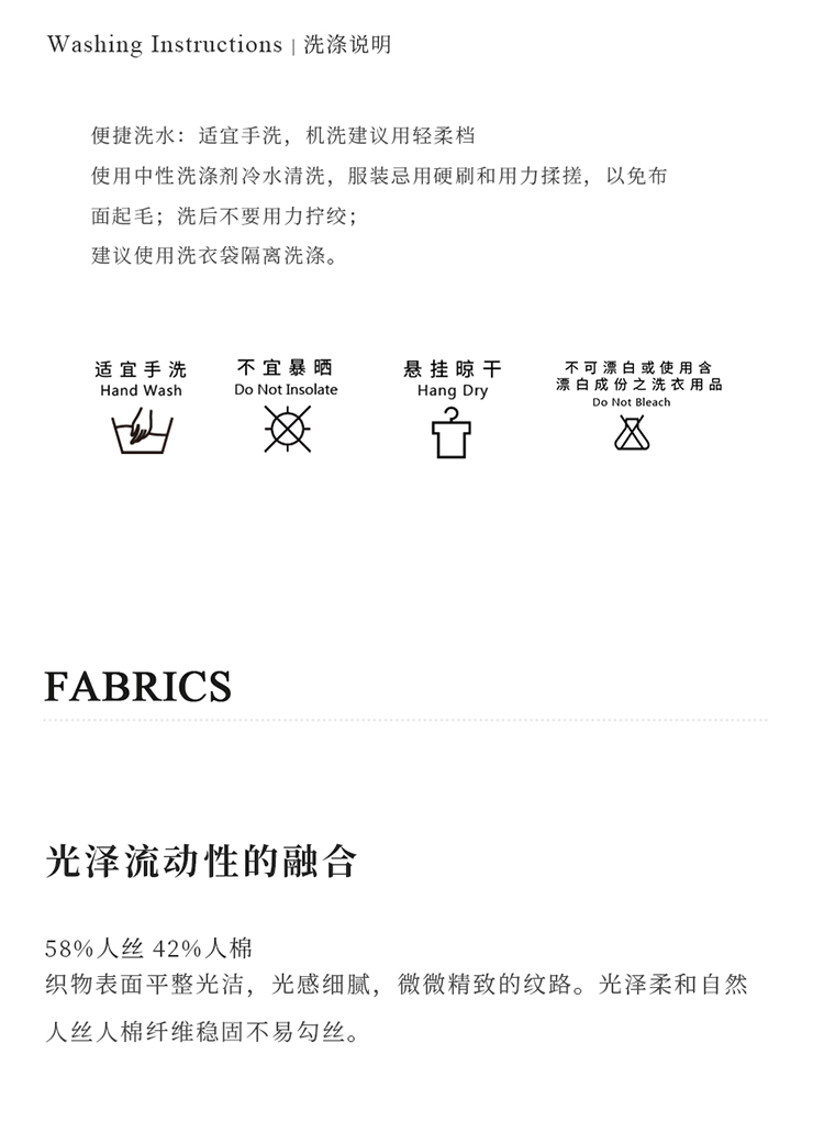 Material composition | Regenerated cellulose fiber 58% viscose fiber (viscose fiber) 42% |