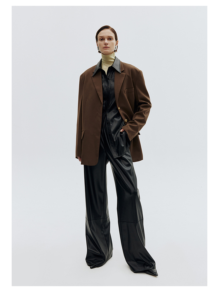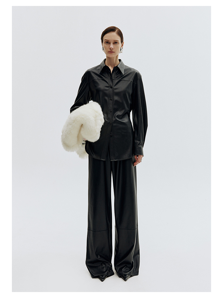ASAYA2756 air pants version imported technology Q stretch soft protein leather wide leg pants