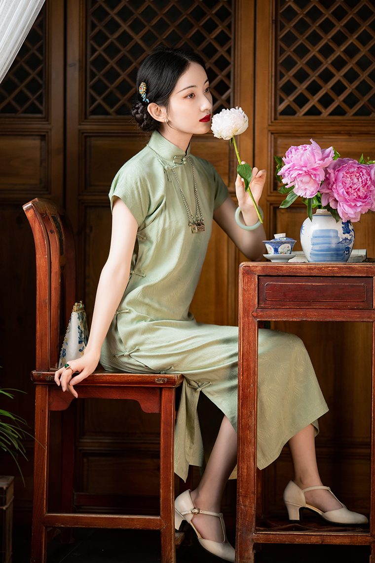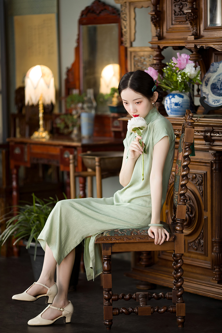 Asaya427 - Ruoyu One City Style Plush Retro Chinese Republican Style Student Youth Daily Shoulder Sleeve Short Cheongsam Skirt Original