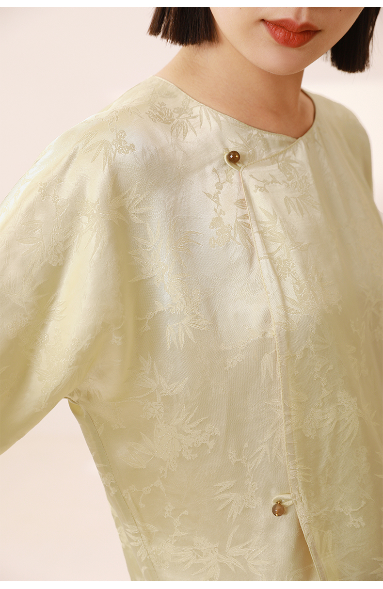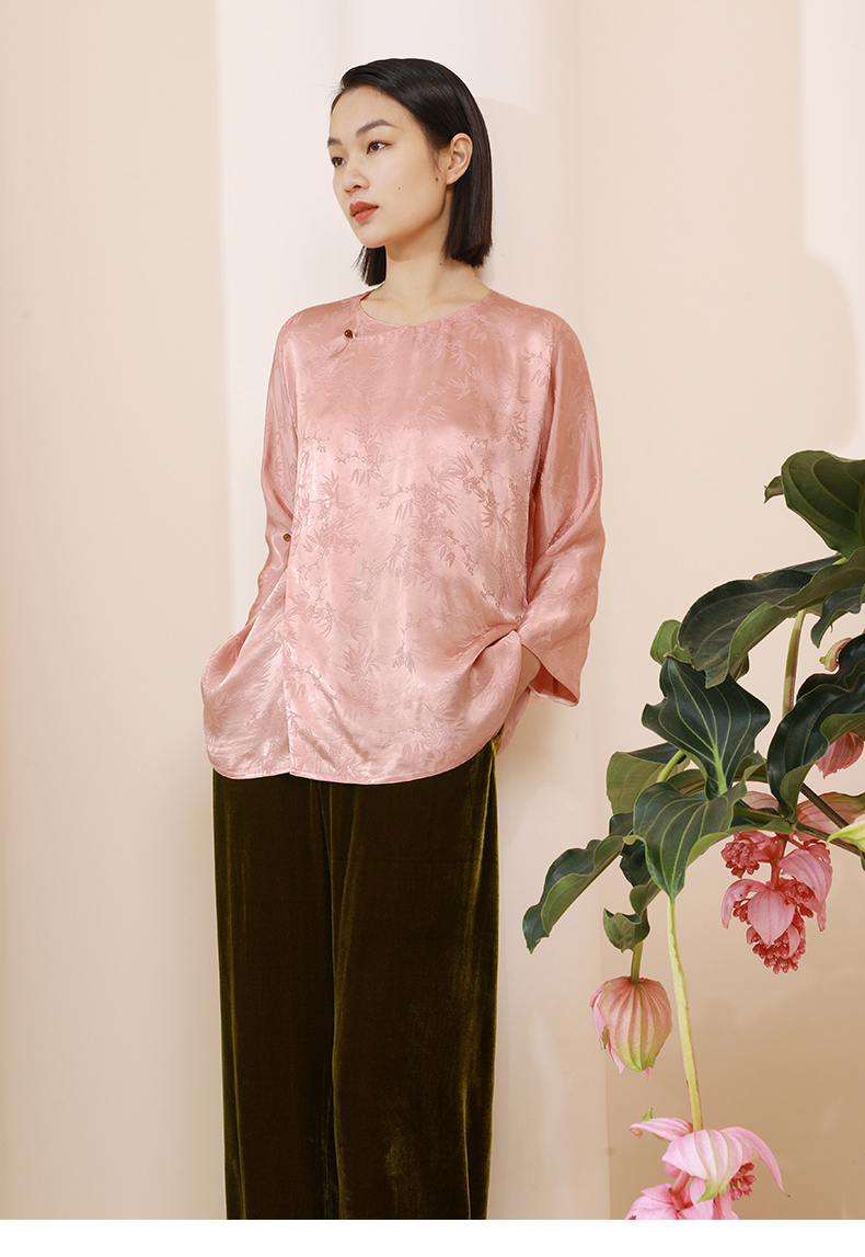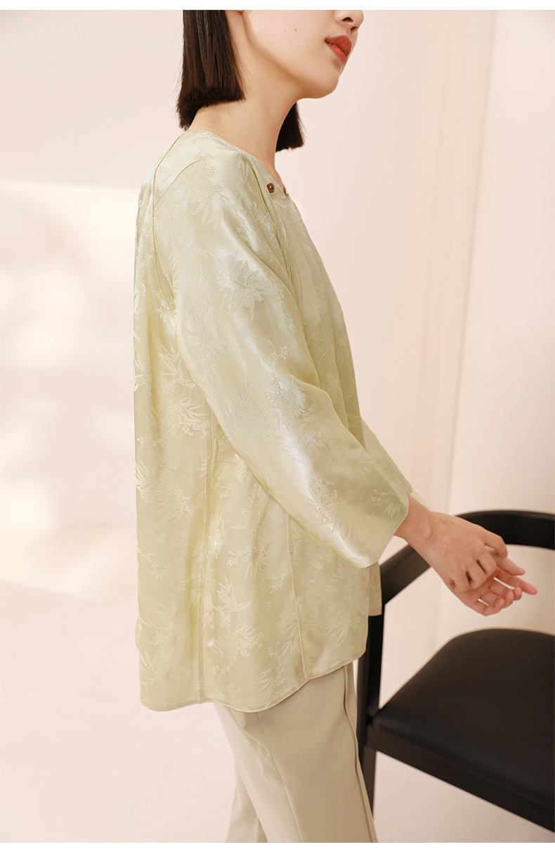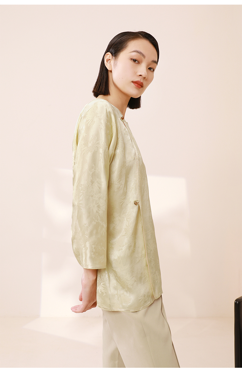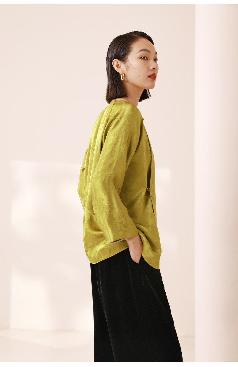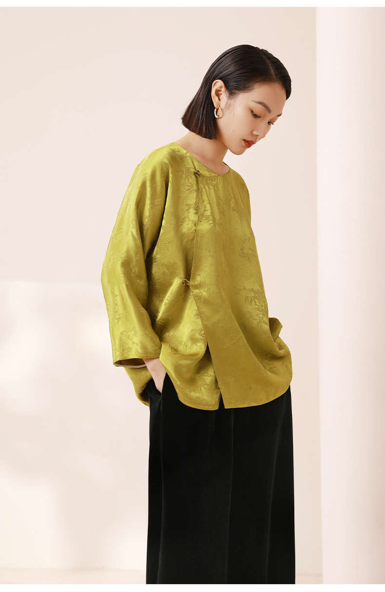 ASAYA1825 Ruyi Lianyun 2023 Spring New Diagonal Sleeve Onyx Button Top Women's Vintage New Chinese Style Shirt