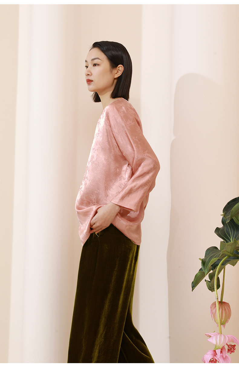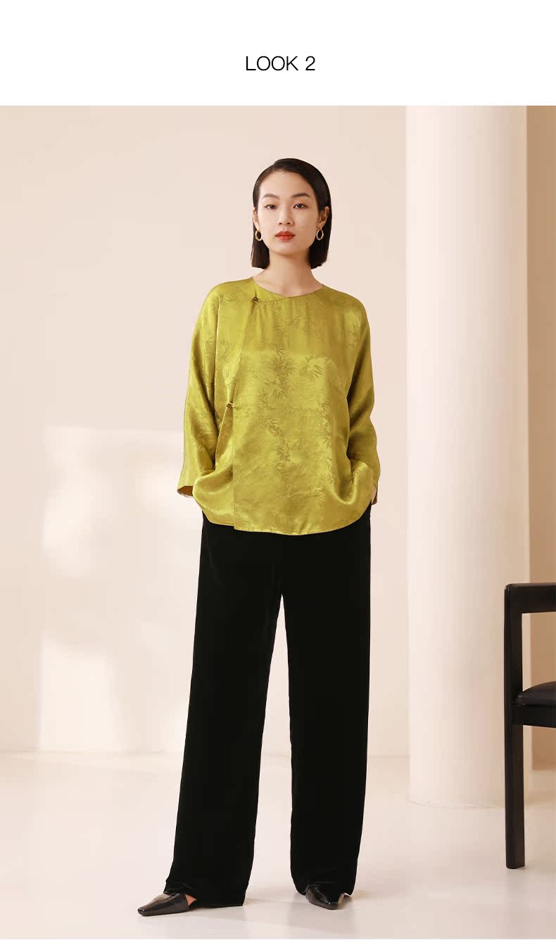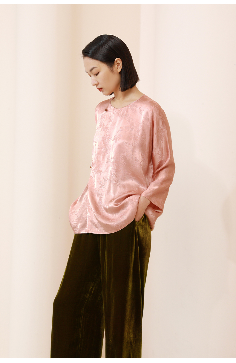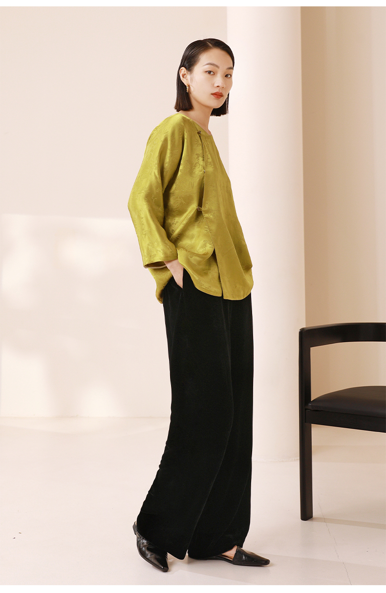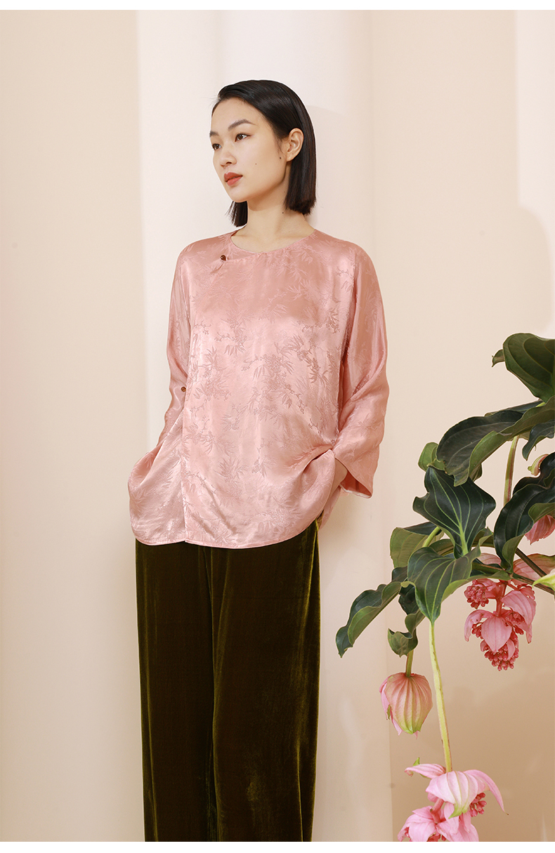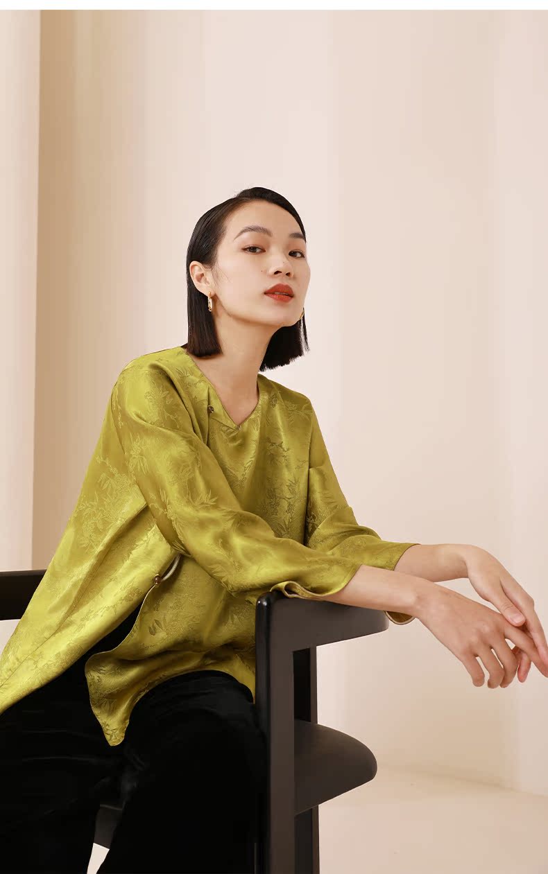 ASAYA1825 Ruyi Lianyun 2023 Spring New Diagonal Sleeve Onyx Button Top Women's Vintage New Chinese Style Shirt