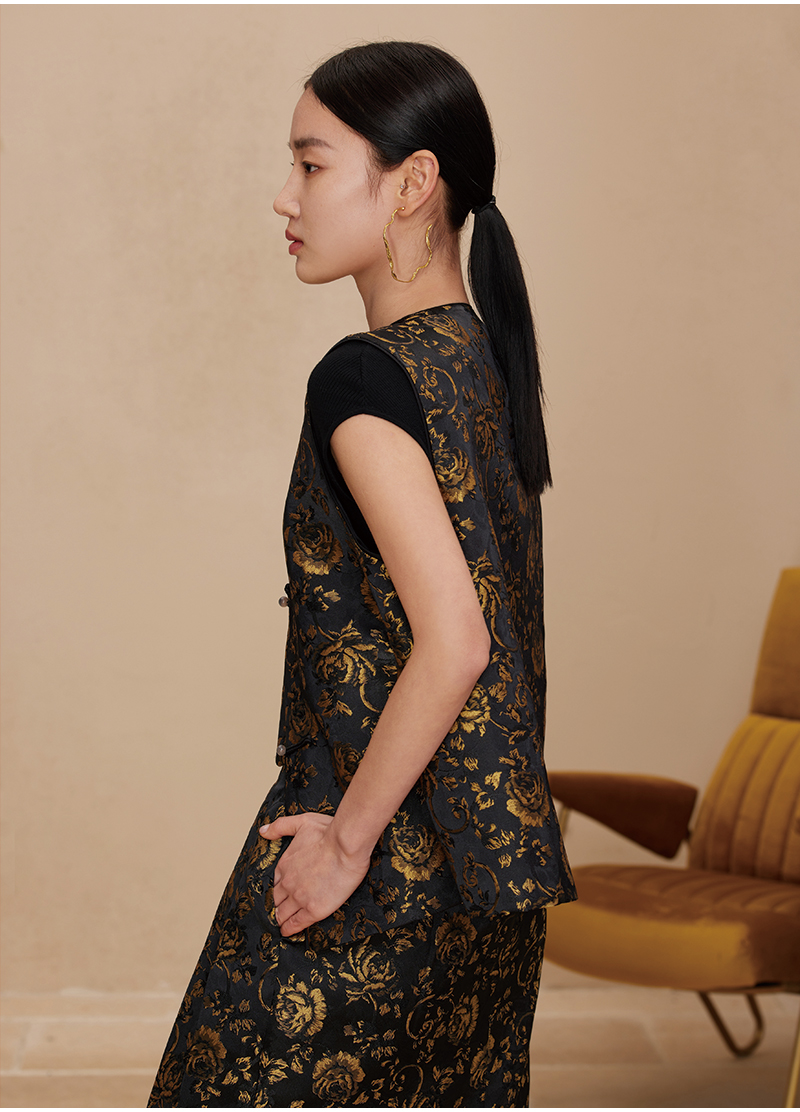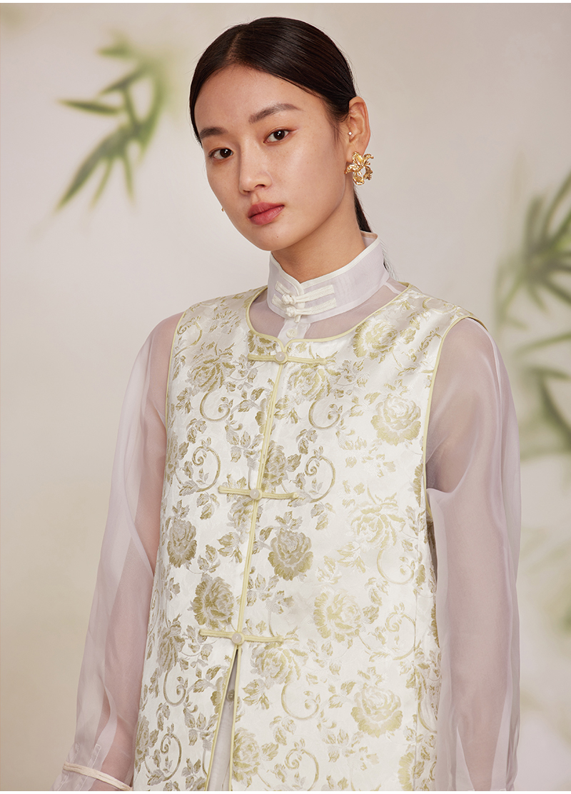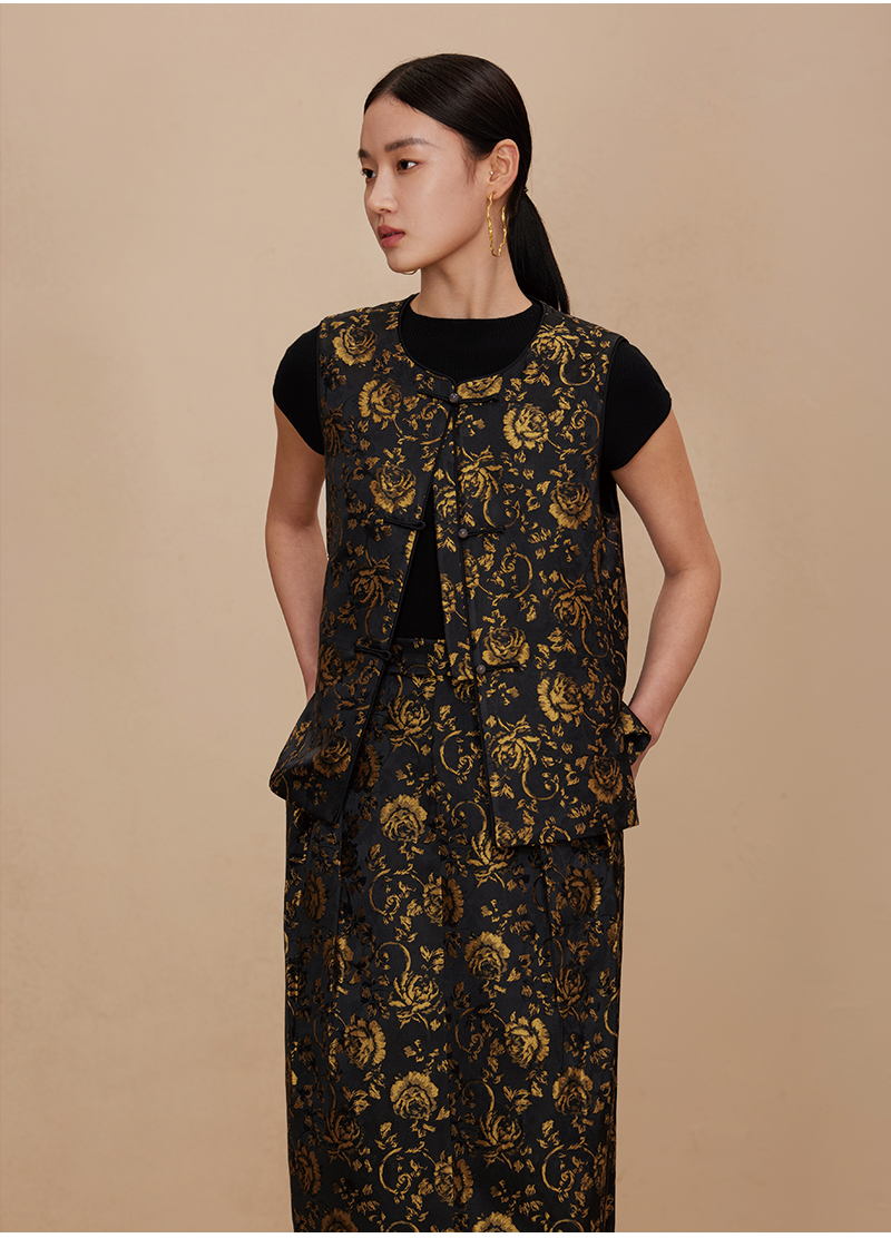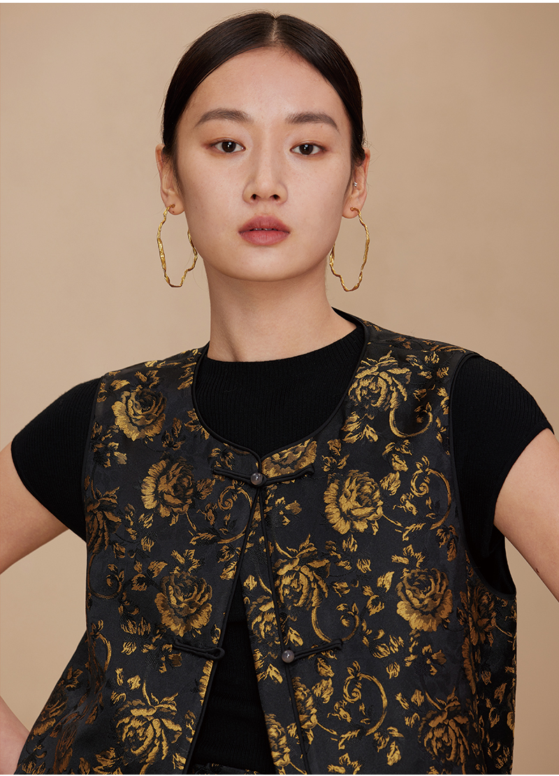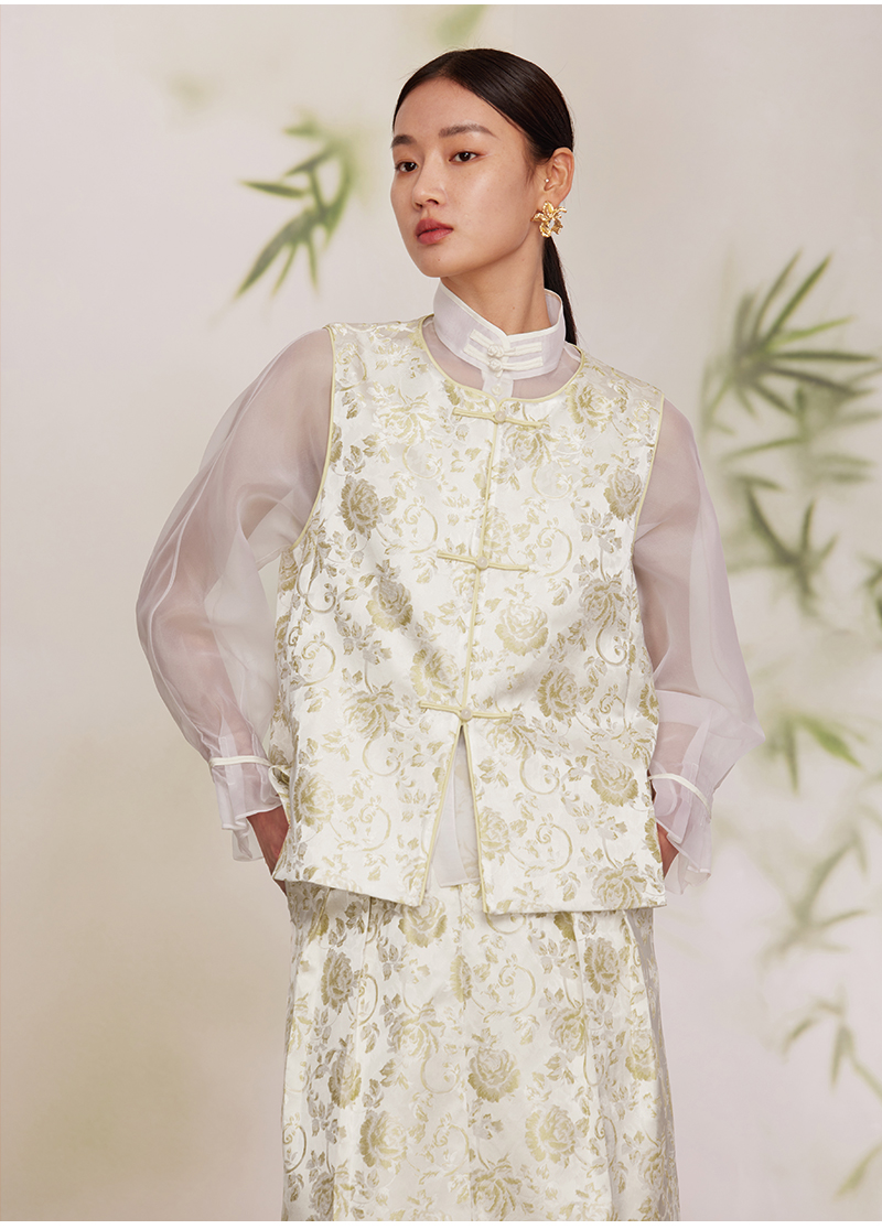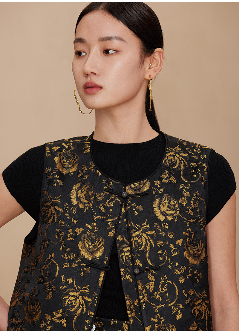 ASAYA2872 Ruyi round neck double placket jacquard vest