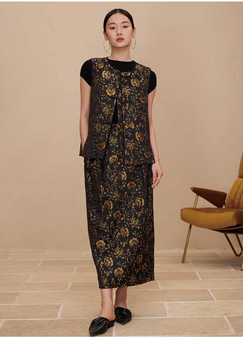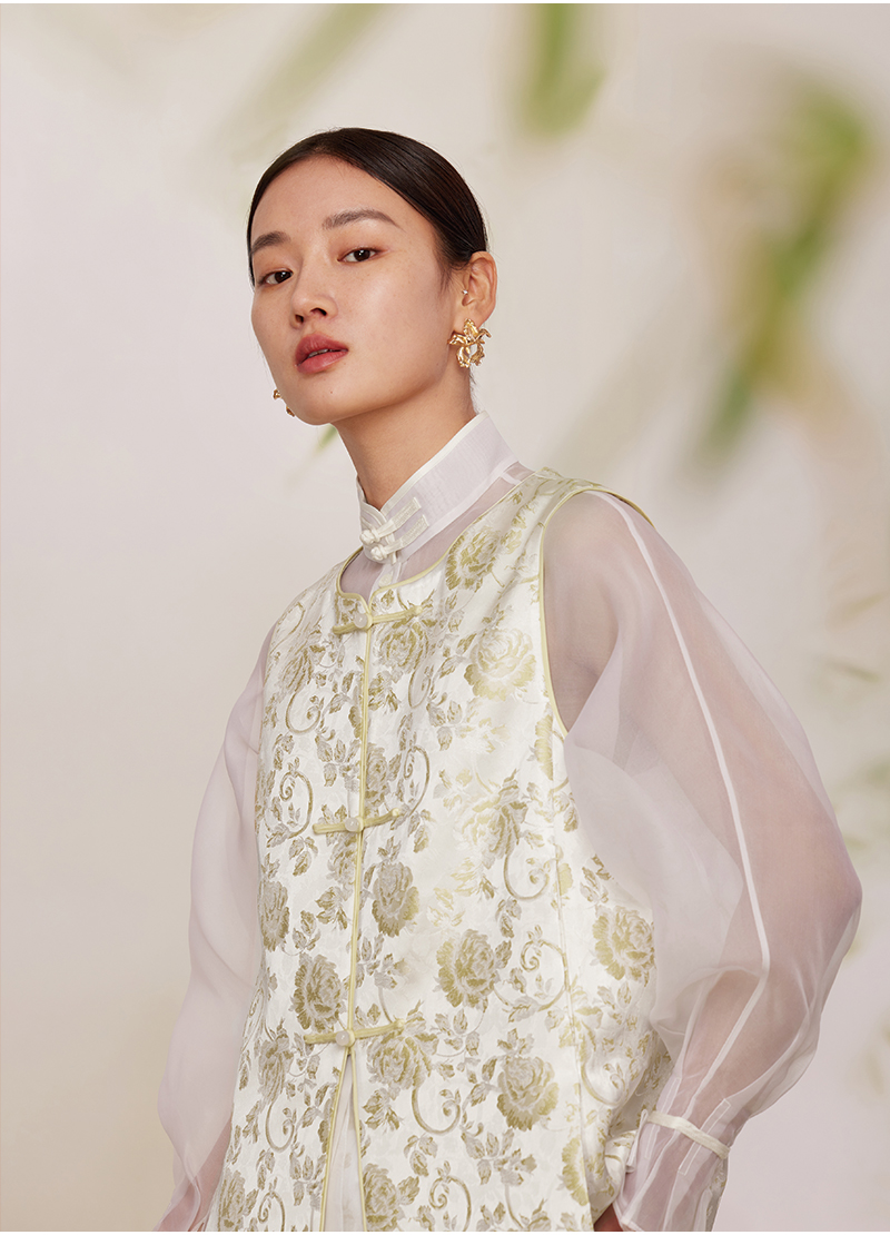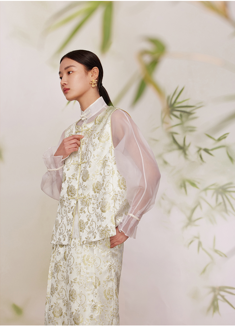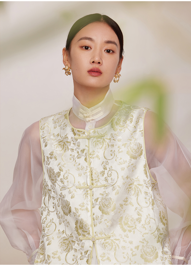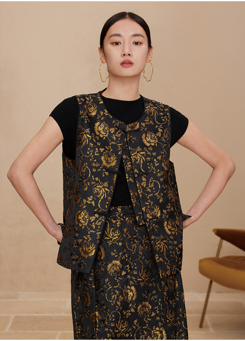 ASAYA2872 Ruyi round neck double placket jacquard vest