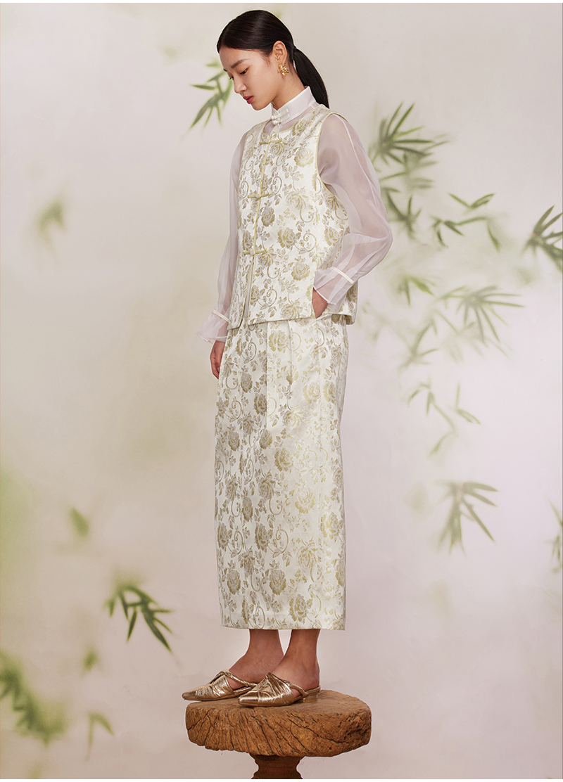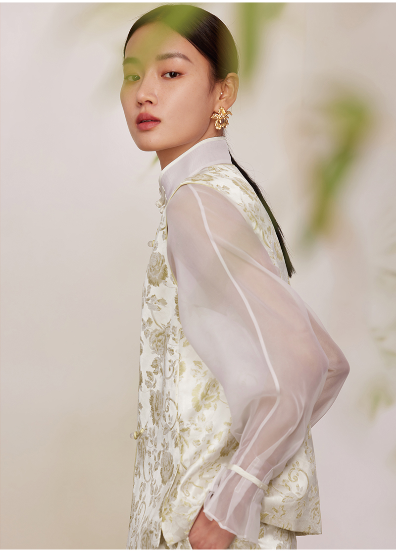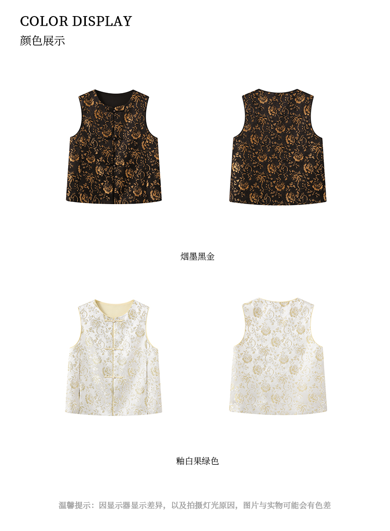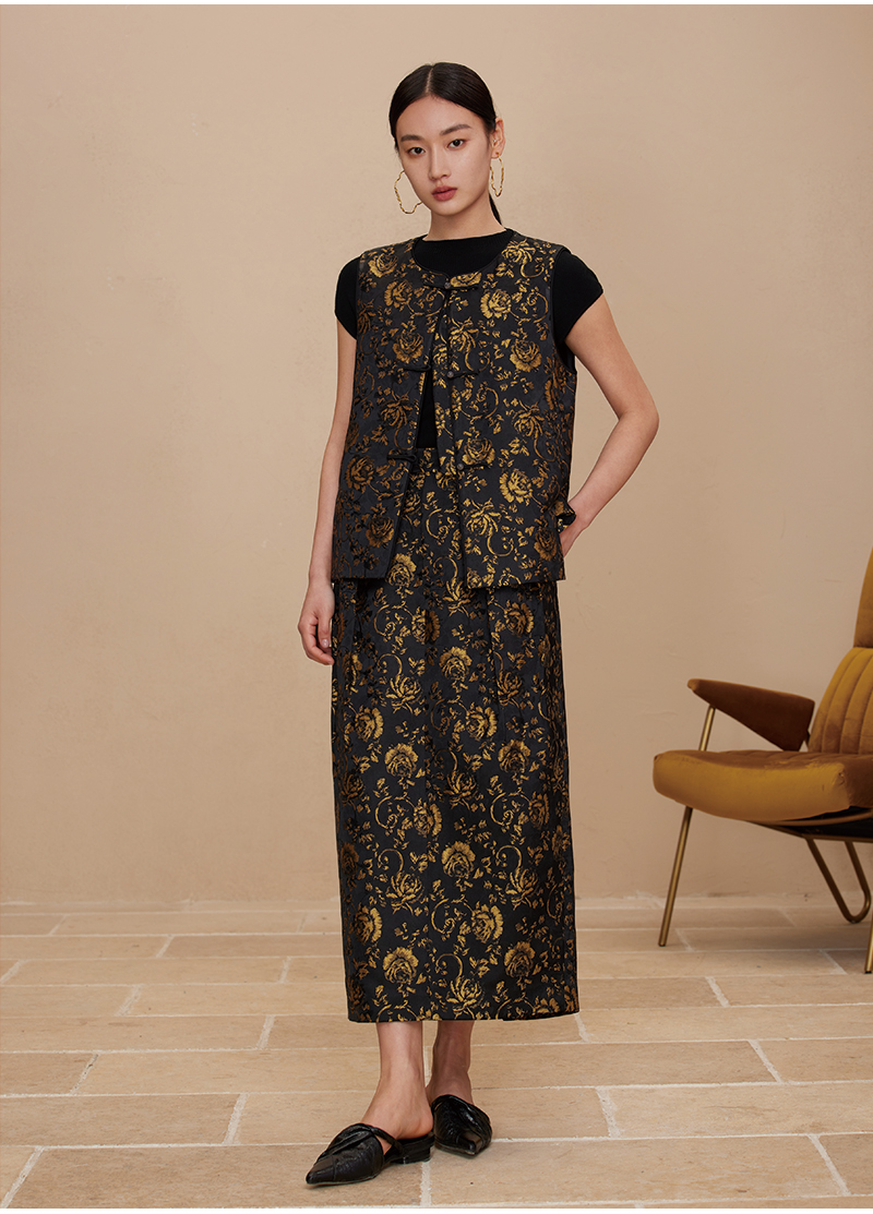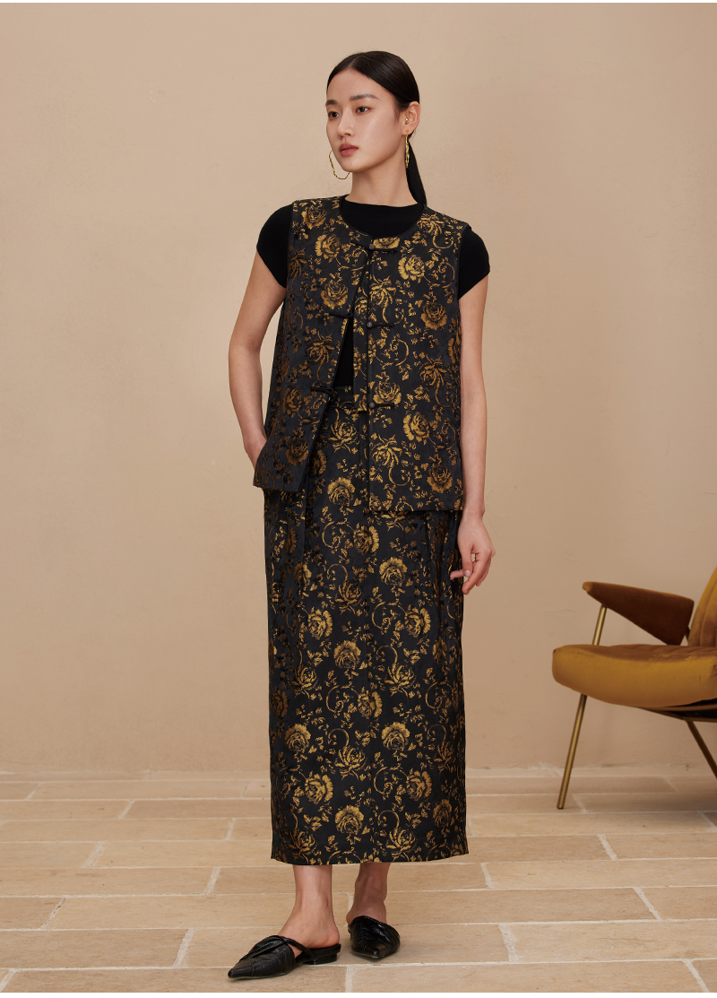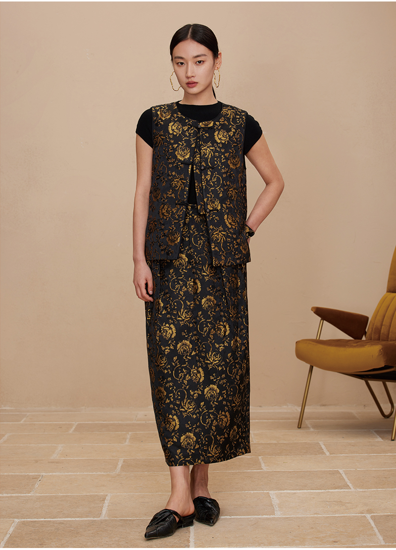 ASAYA2872 Ruyi round neck double placket jacquard vest
