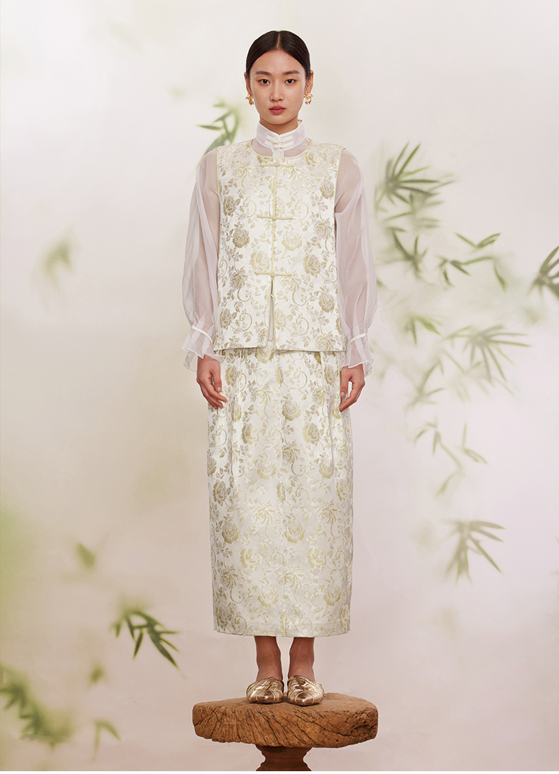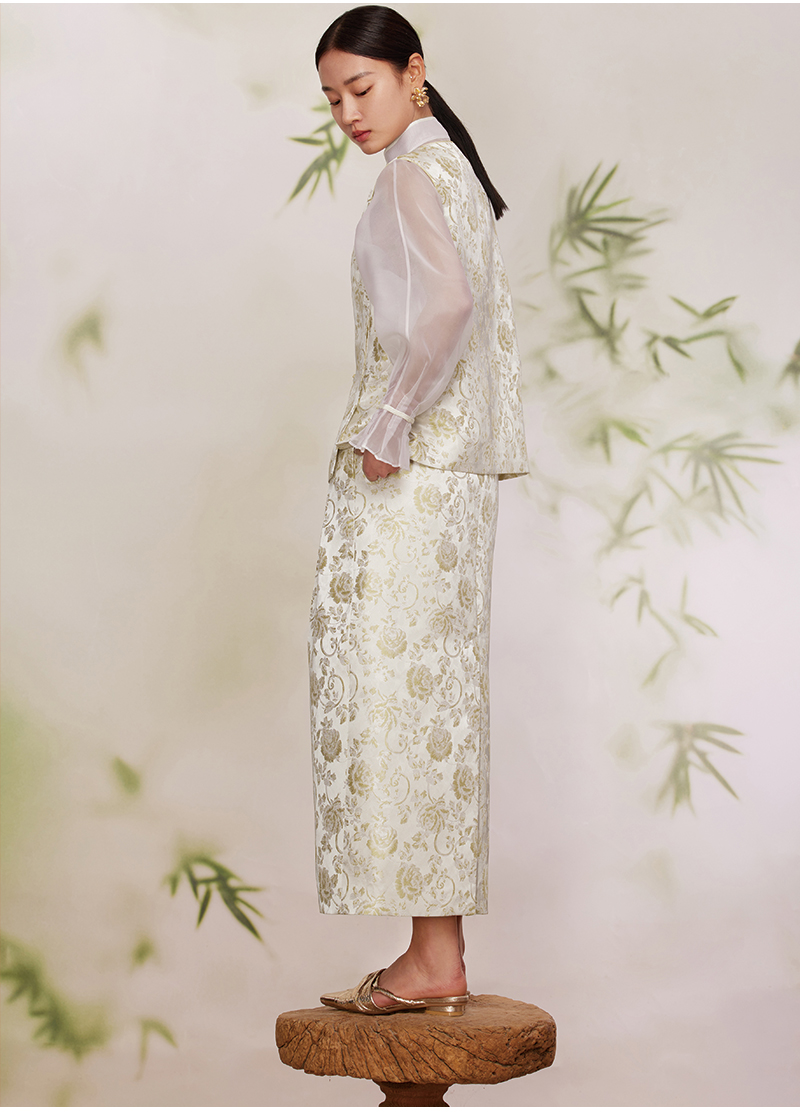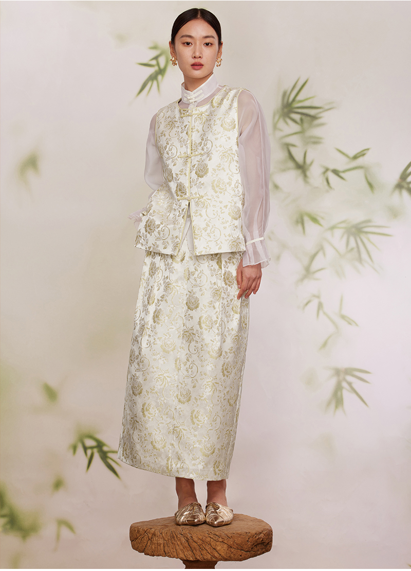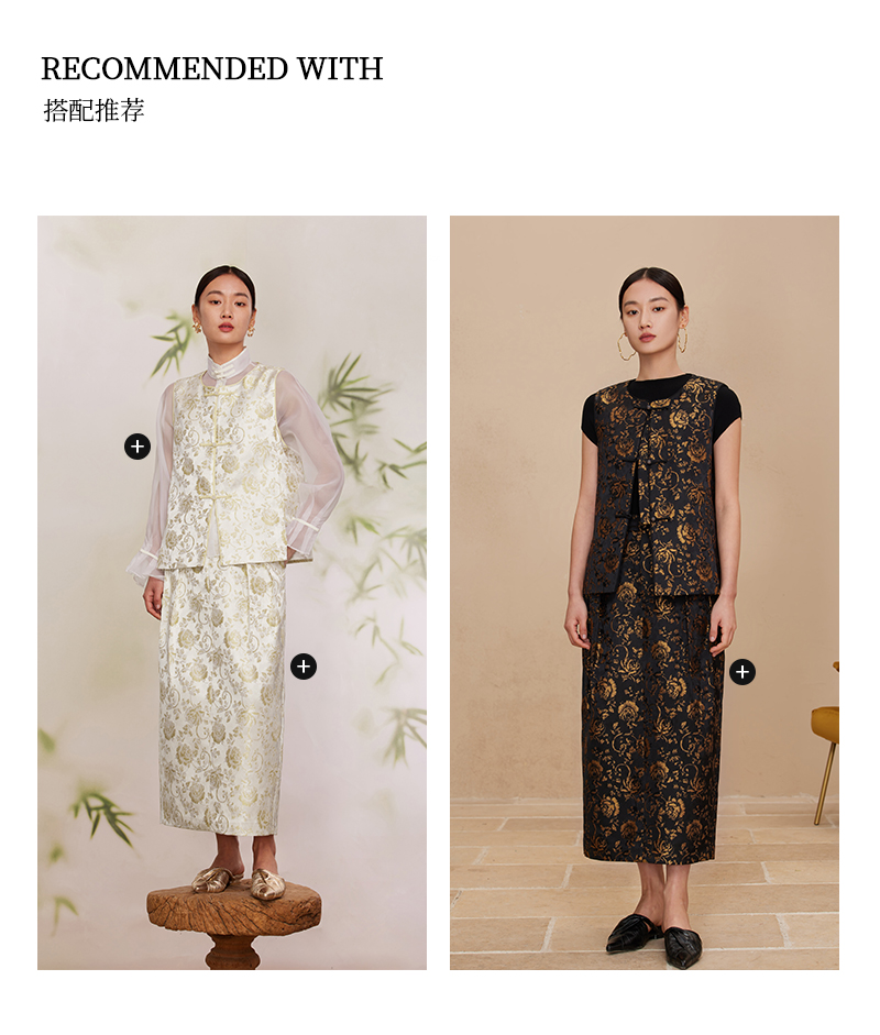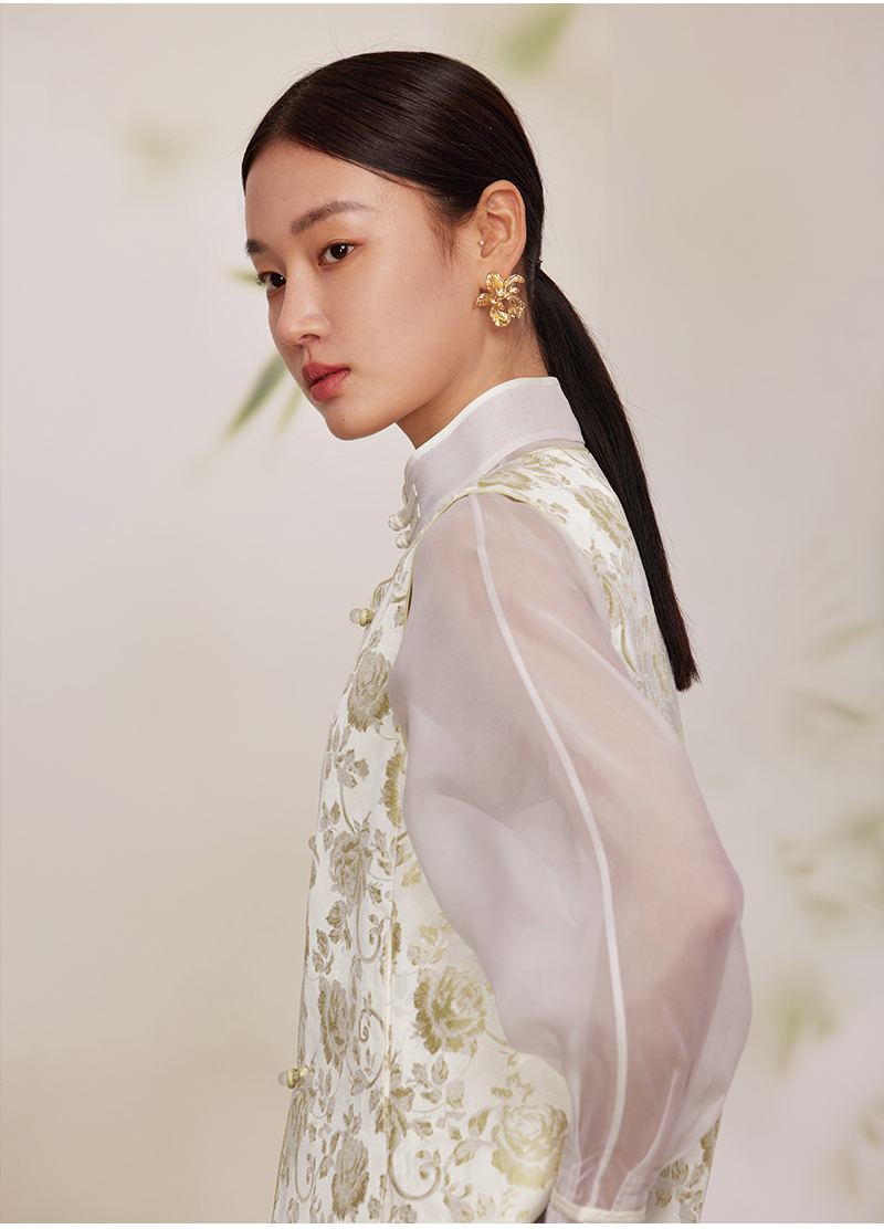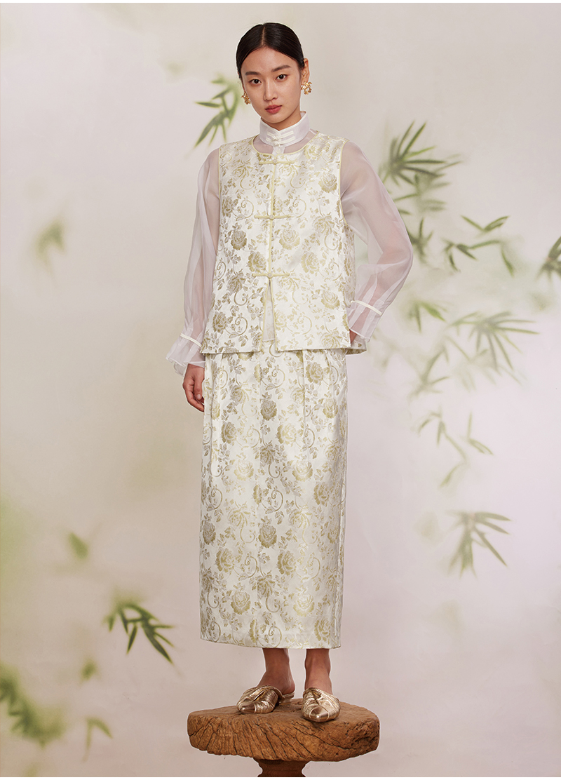 ASAYA2872 Ruyi round neck double placket jacquard vest