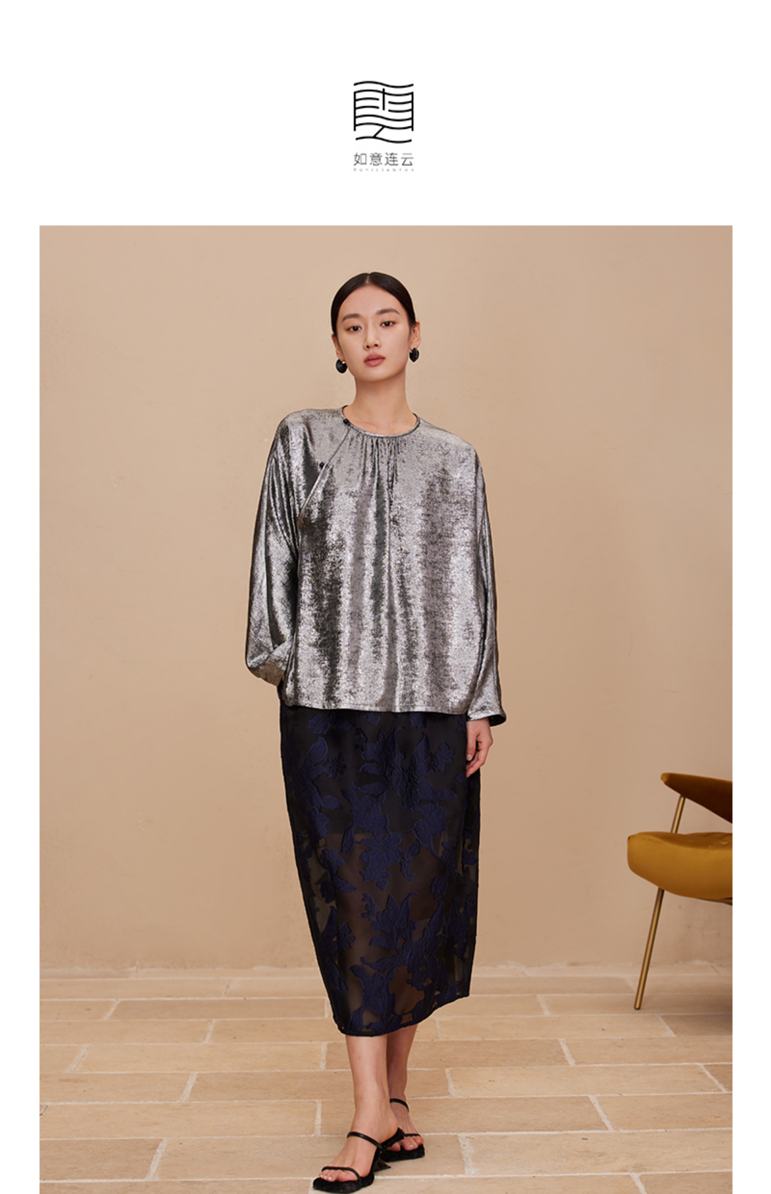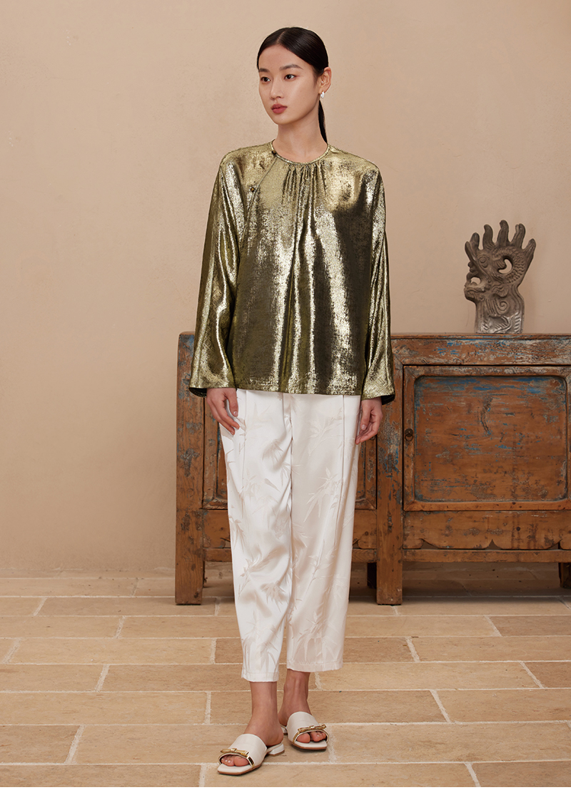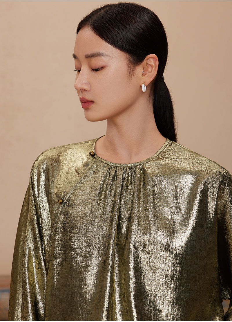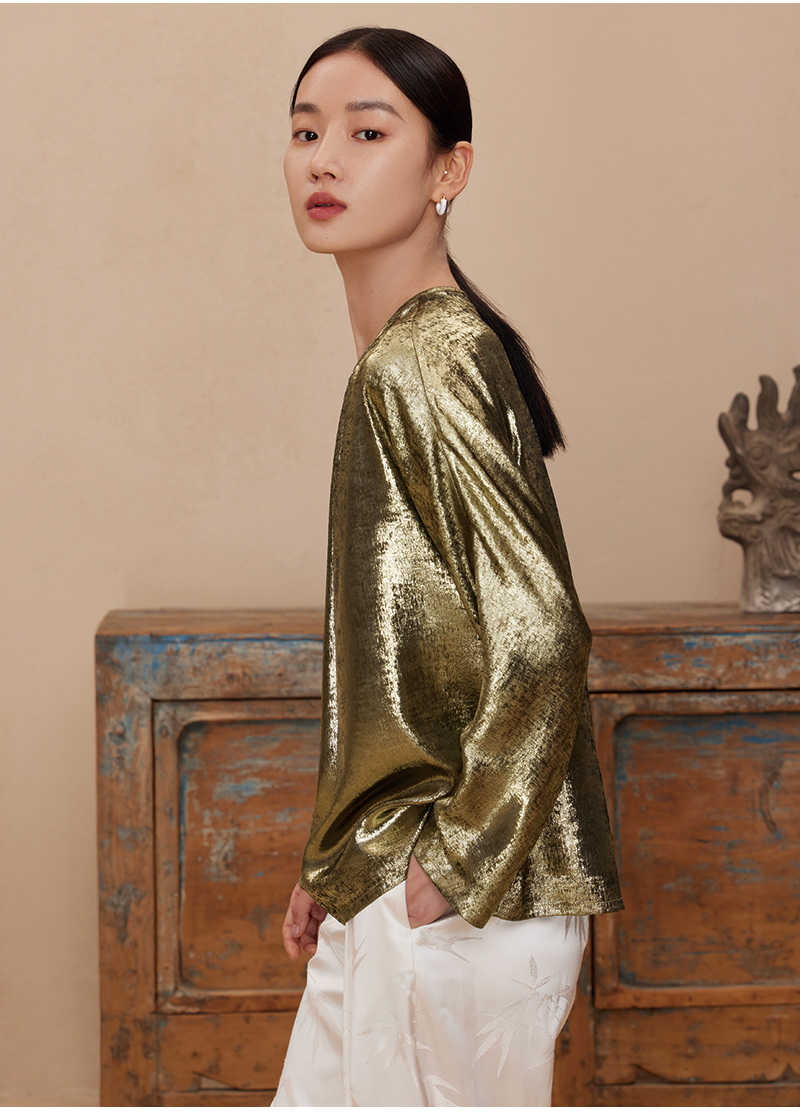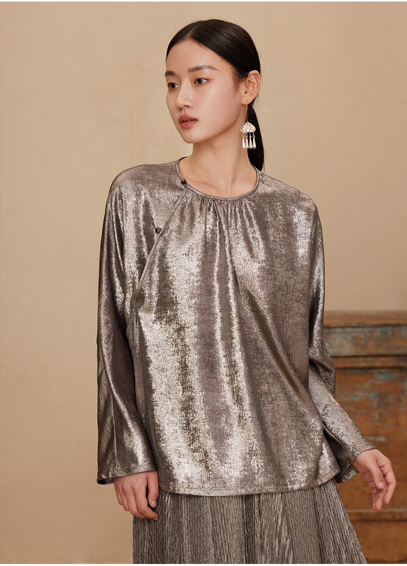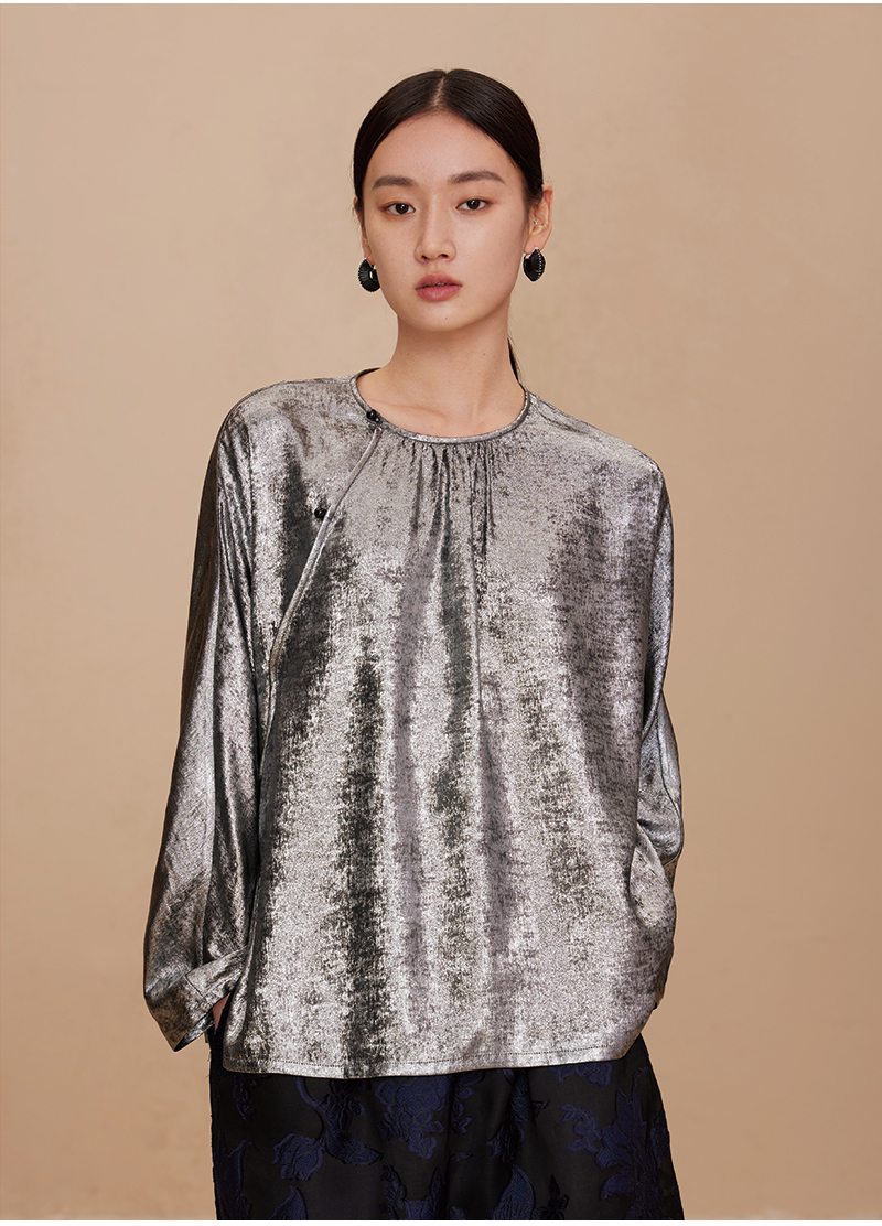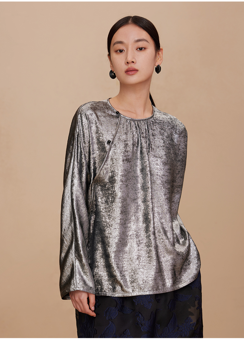 ASAYA2871 Ruyi Lianyun round neck oblique placket gilt shirt
