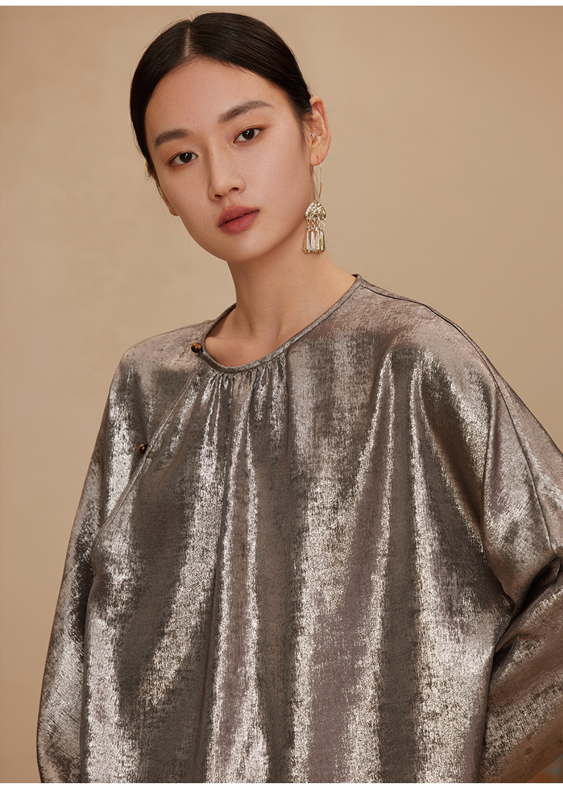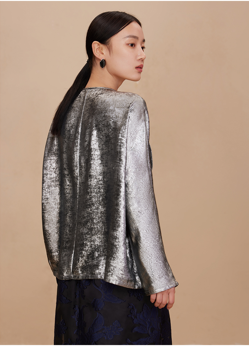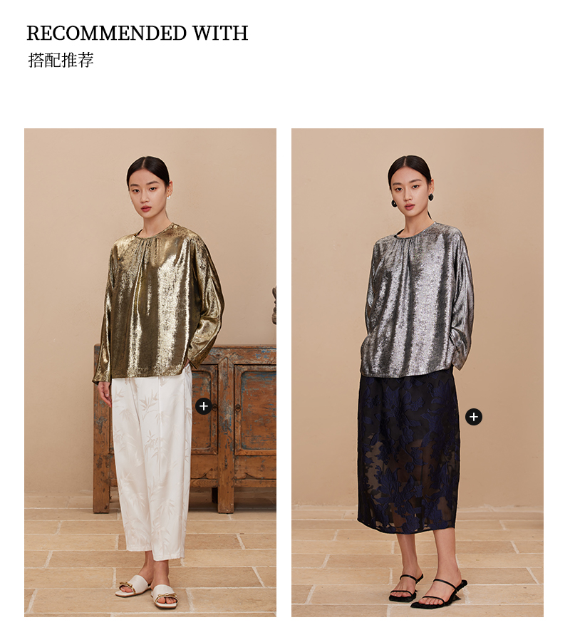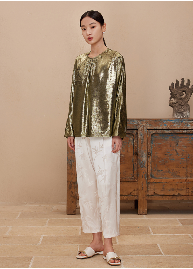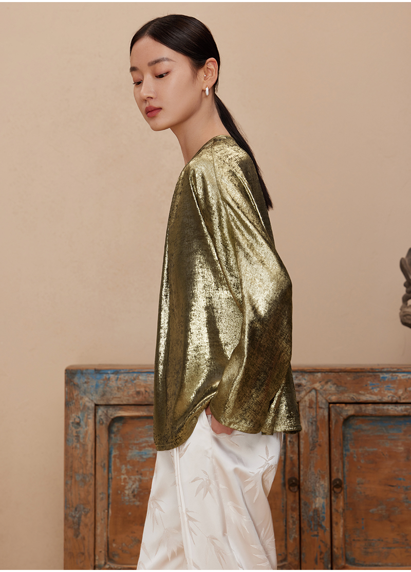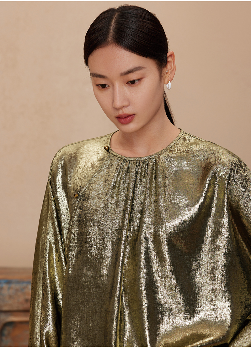 ASAYA2871 Ruyi Lianyun round neck oblique placket gilt shirt