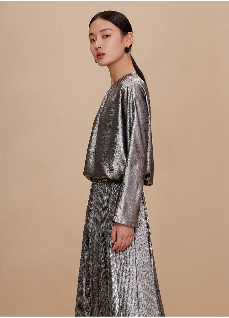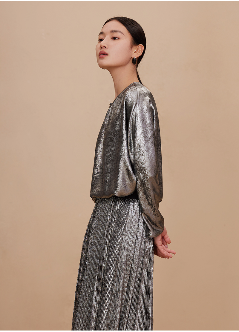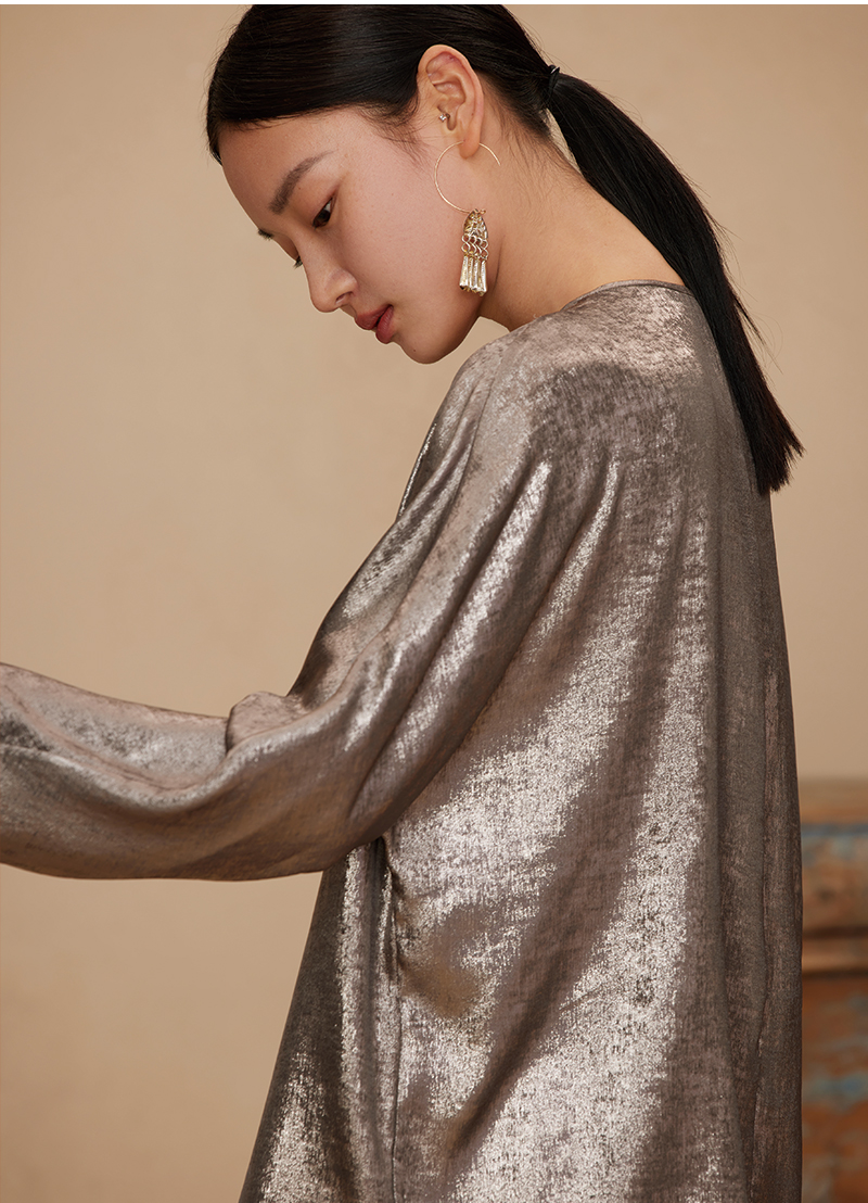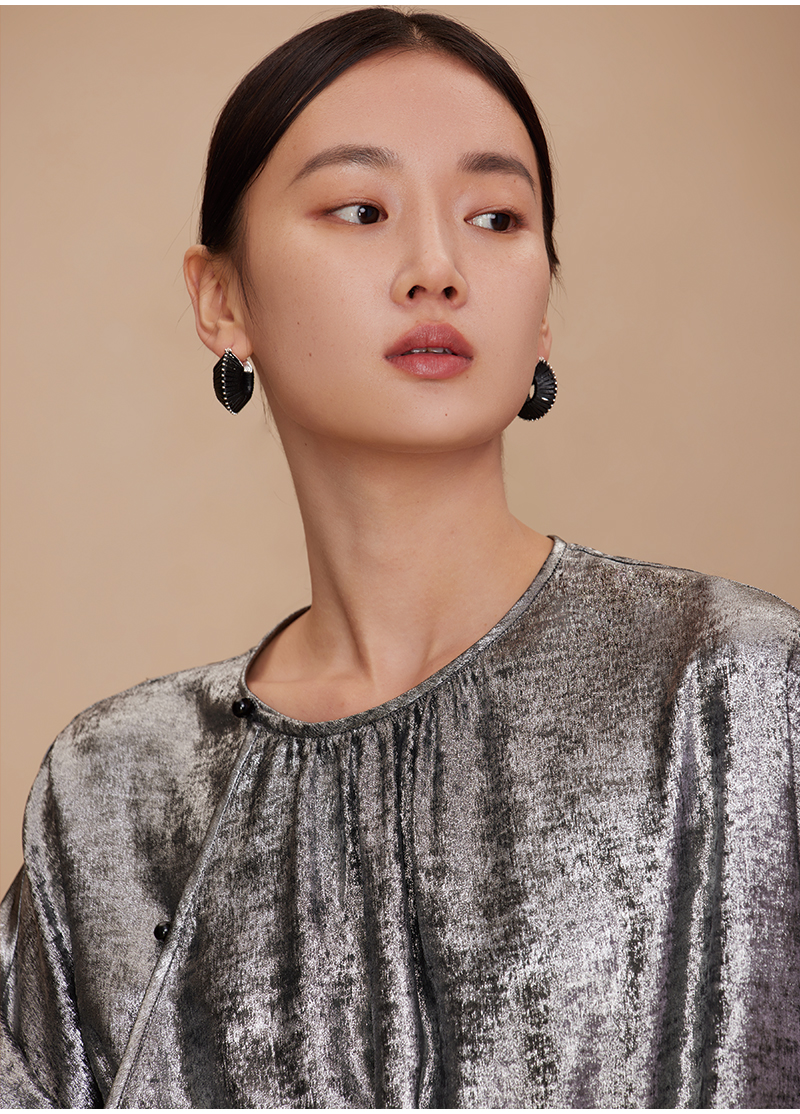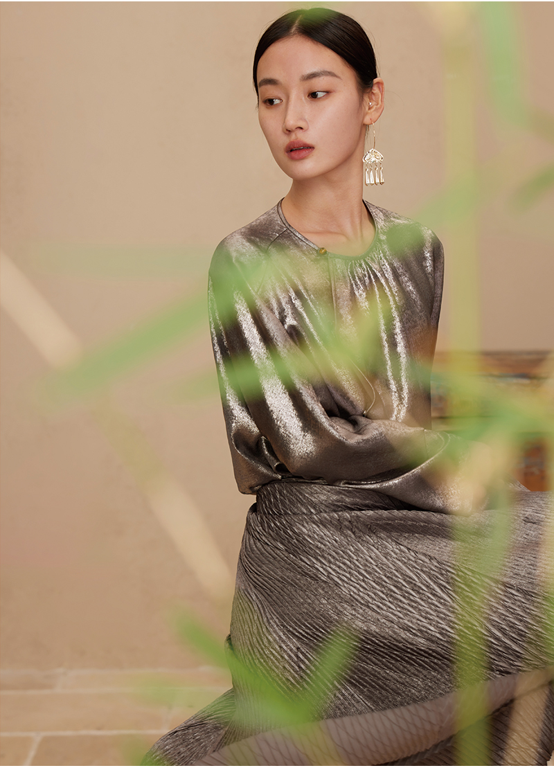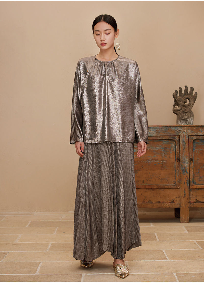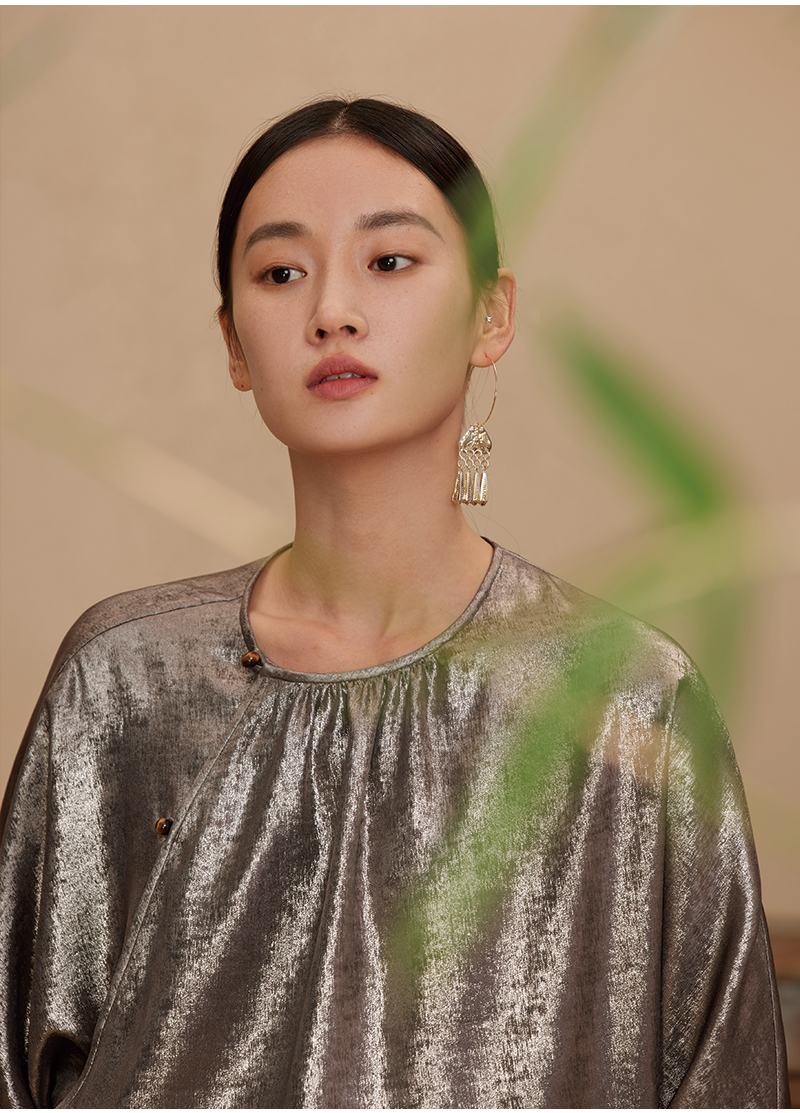 ASAYA2871 Ruyi Lianyun round neck oblique placket gilt shirt