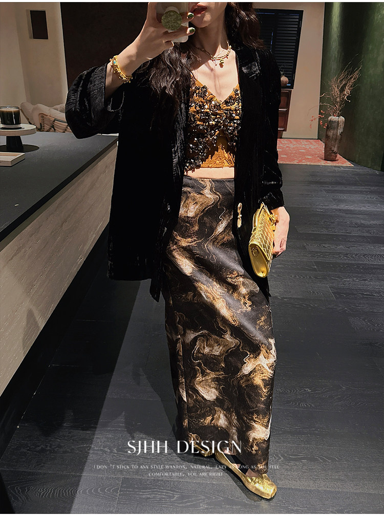 ASAYA5297 – Opulent Silk Brocade Maxi Skirt 🌙✨
