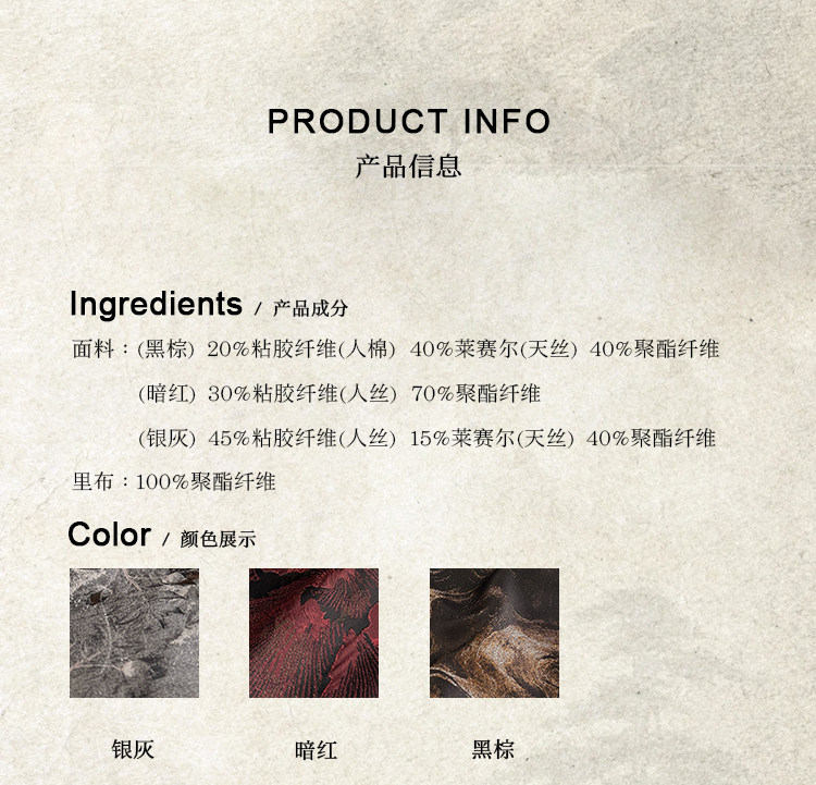 | Material composition | Lyocell fiber (Lyocell) 40% polyester fiber 40% viscose fiber (viscose fiber) 20% |