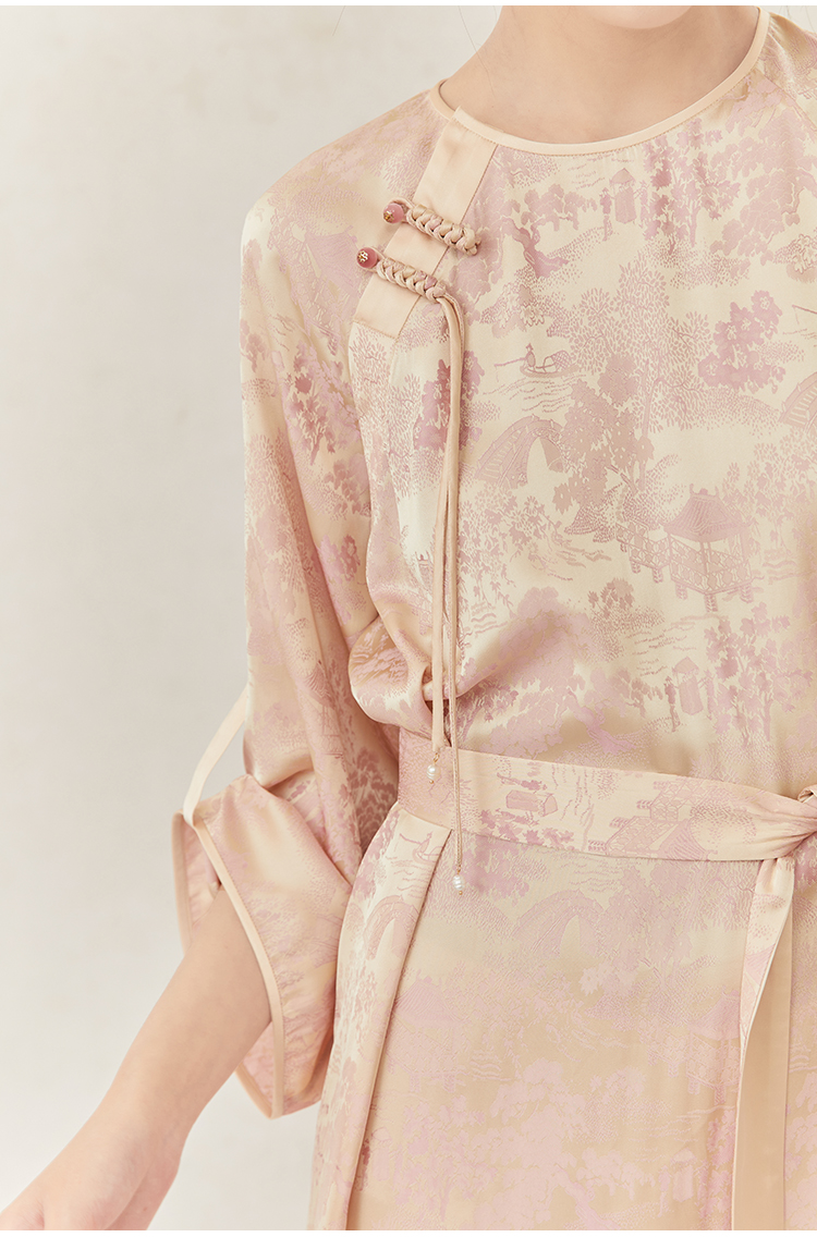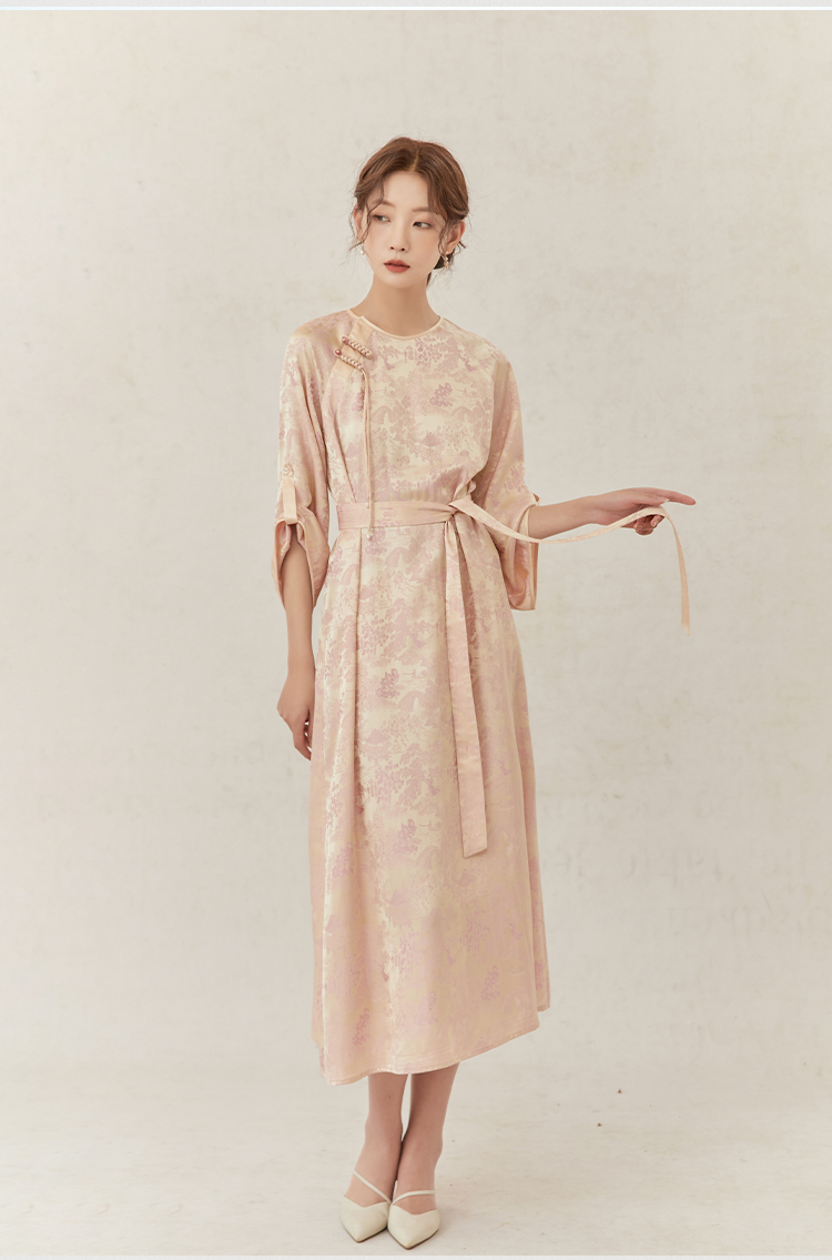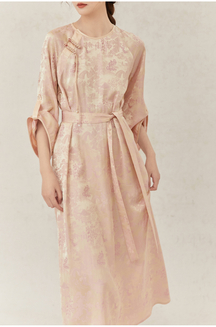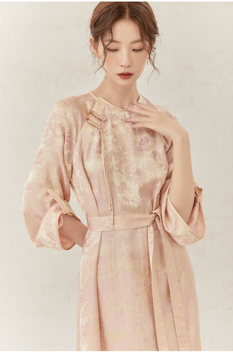 ASAYA2402 New Chinese Style Qingming River Scene National Style Jacquard Dress
