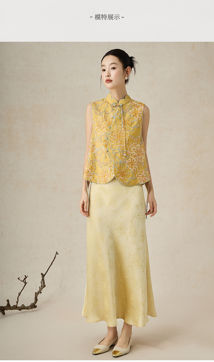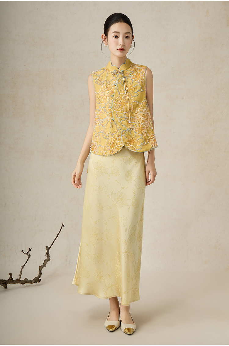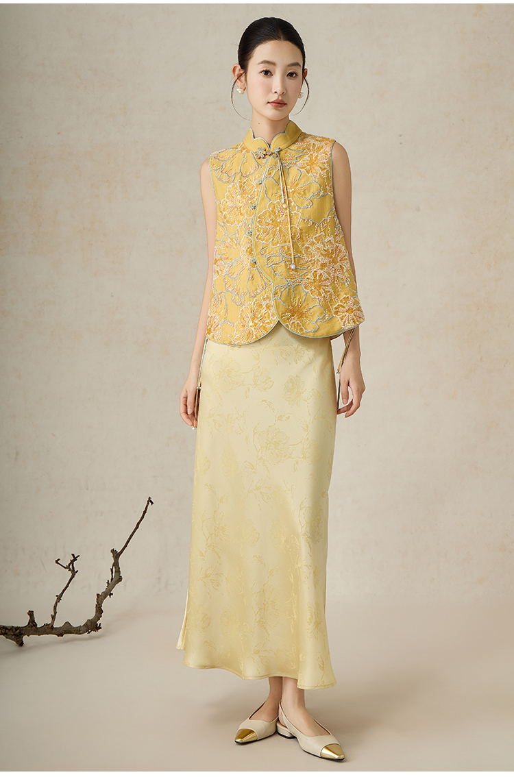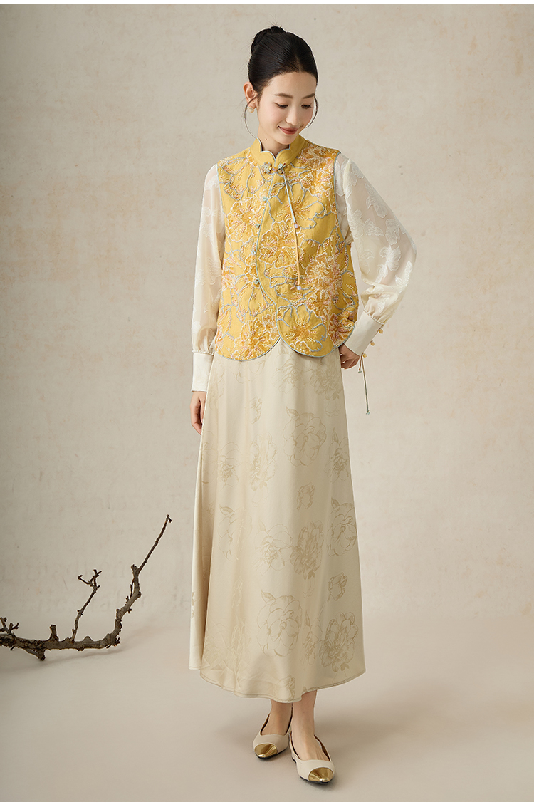 ASAYA4759 – Golden Blossom Vest & Silk Dress Set ✨🌼
