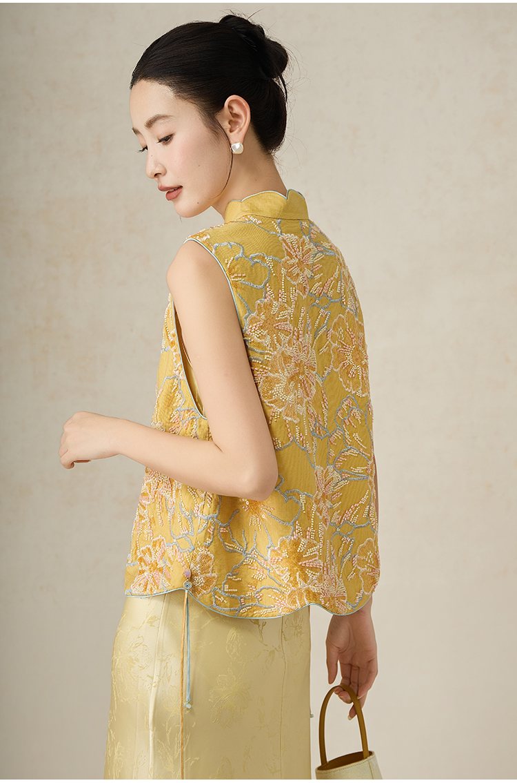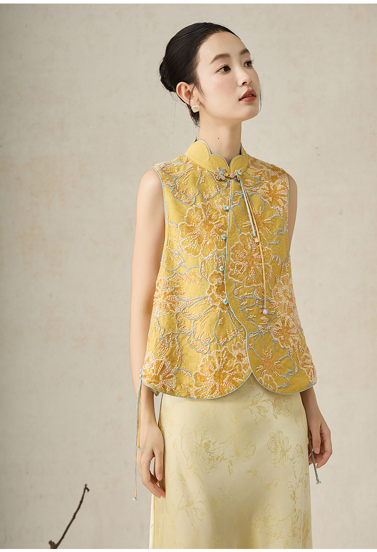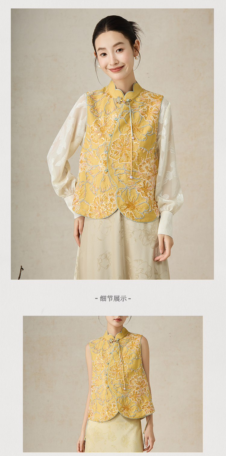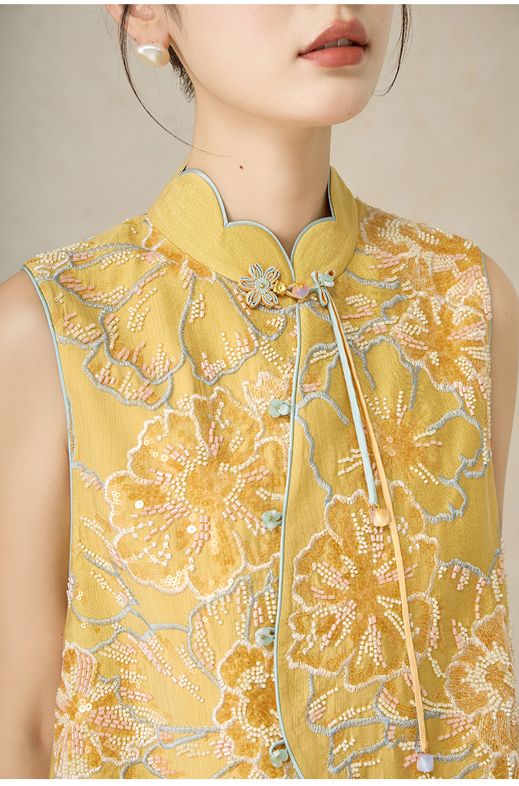 ASAYA4759 – Golden Blossom Vest & Silk Dress Set ✨🌼